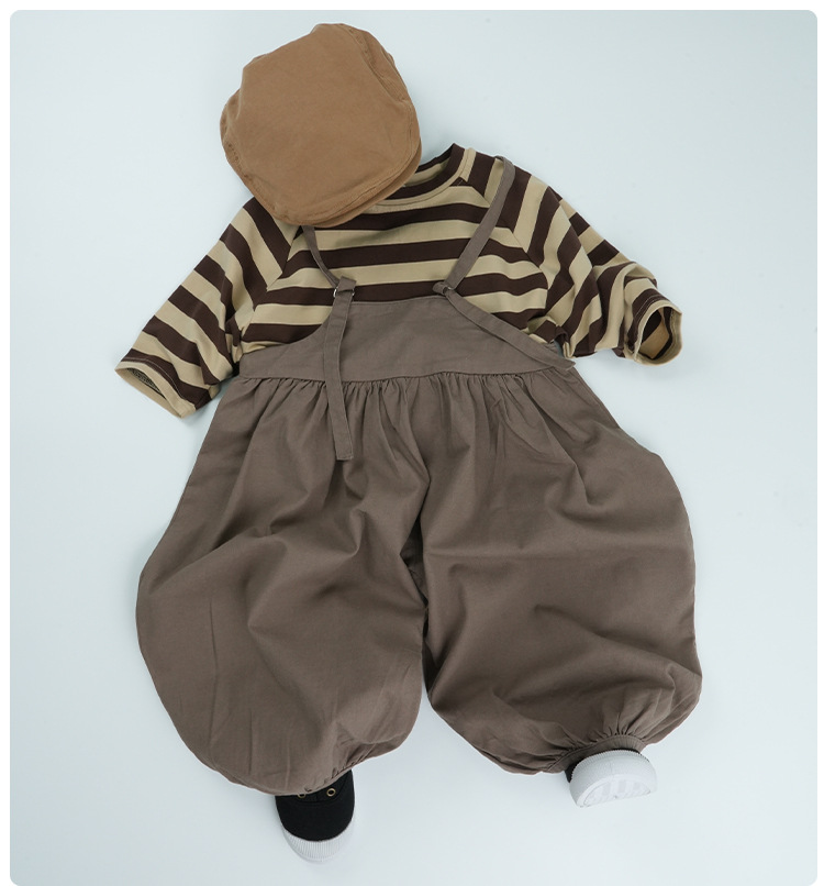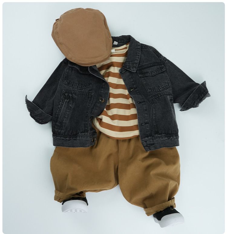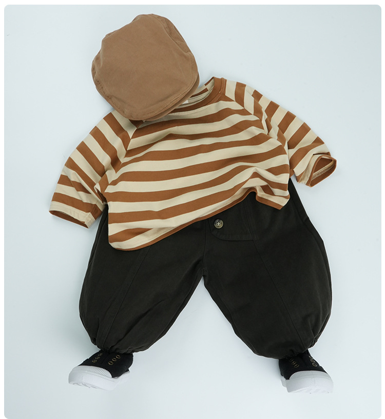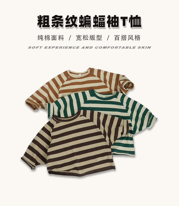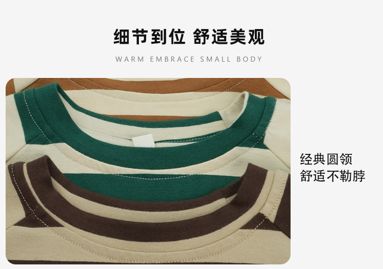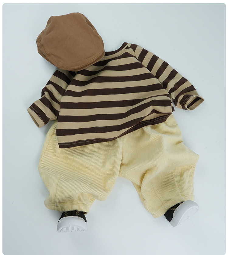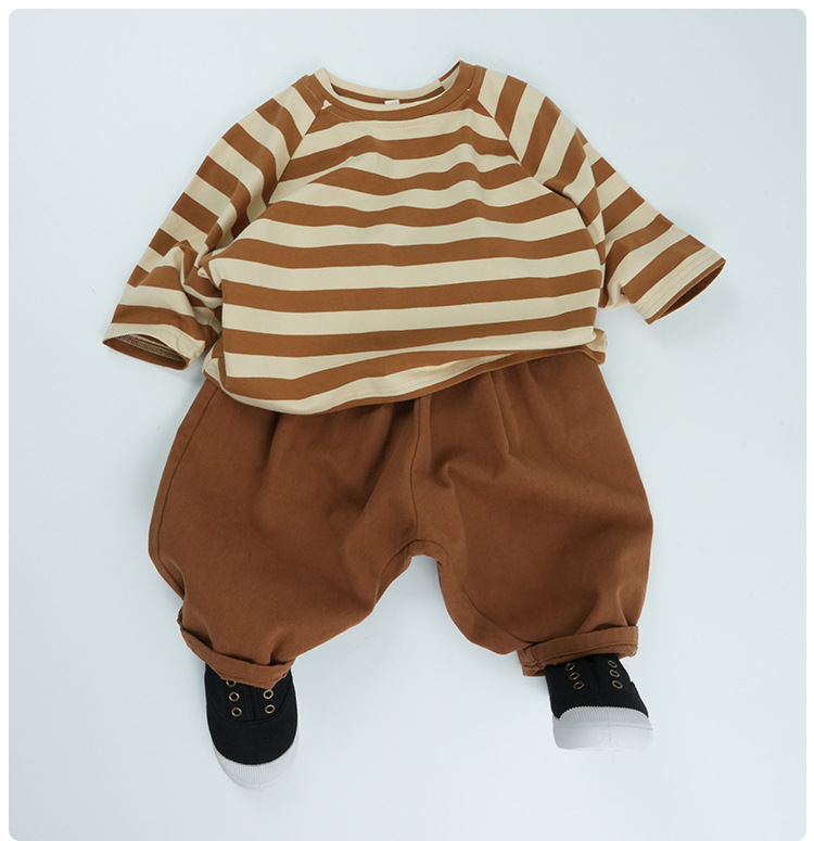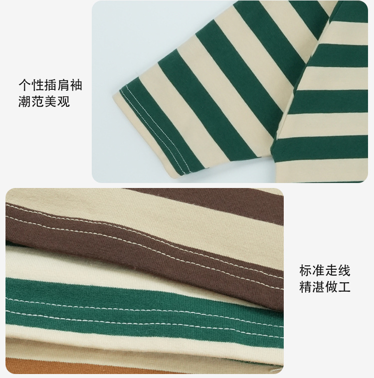 어린이 줄무늬 긴팔 티셔츠 한국식 일본식 봄과 가을 방망이 소매 라글란 소매 크루 넥베이스 셔츠 소년 소녀를위한 트렌디스토어 가기