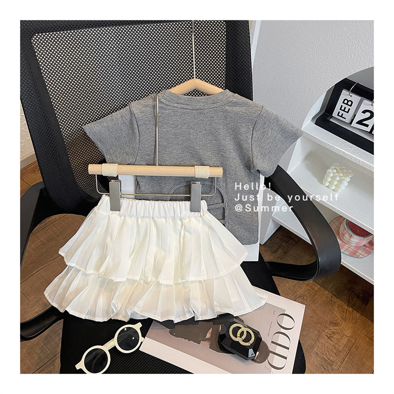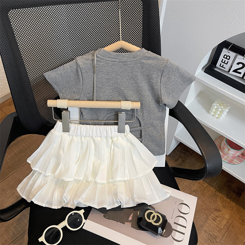 여자 여름 새로운 도착 한국 스타일 백리스 티셔츠 케이크 세트 여자 여름 반팔 스커트 바지스토어 가기