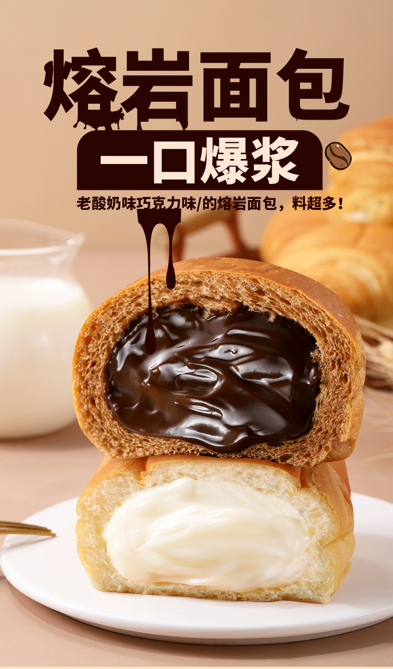 맛있는 간식 간식 라바 초콜릿 빵 통 상자 아침 식사 샌드위치 더티 팩
