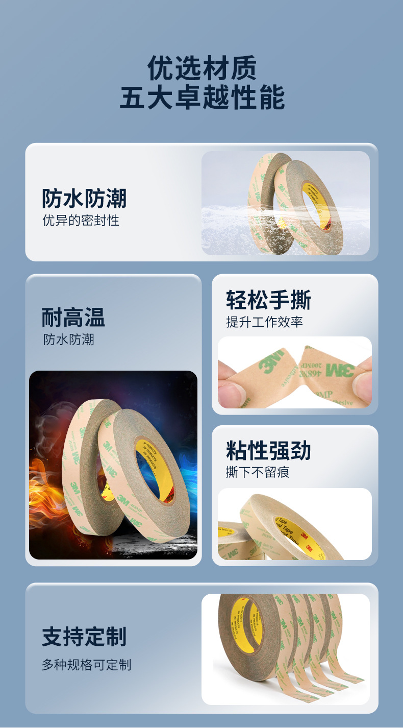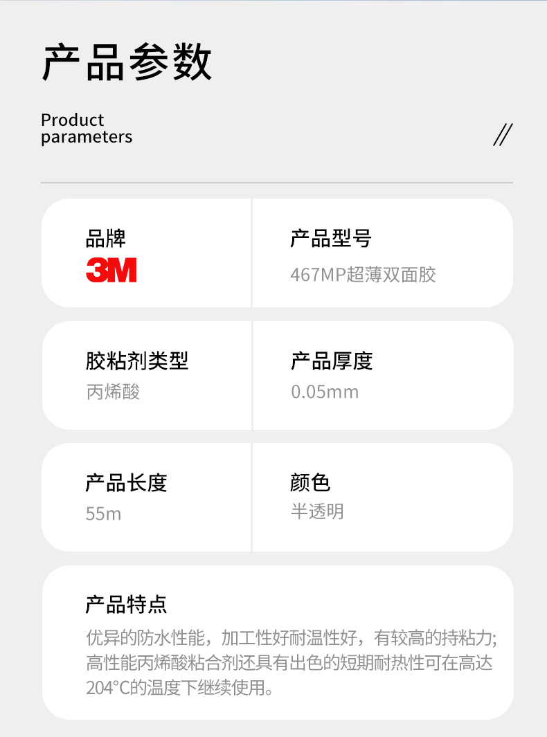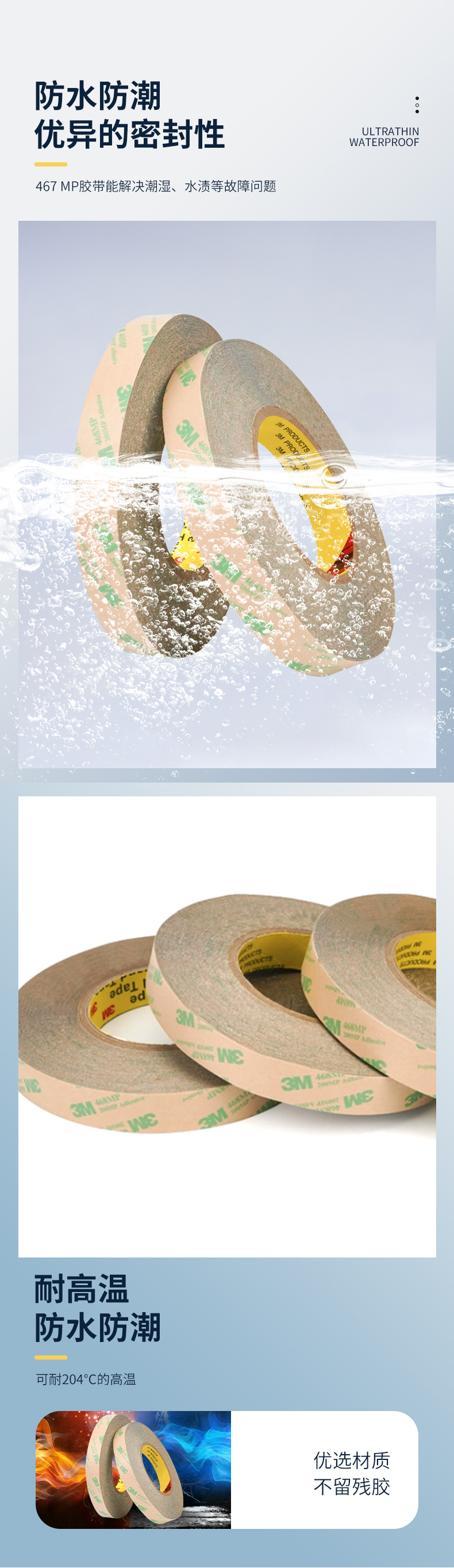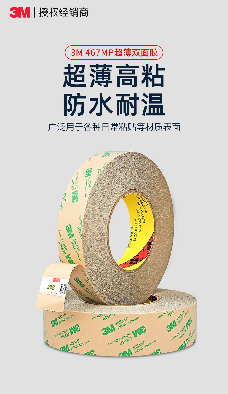 3m467mp双面胶 超薄透明防水无基材胶带200MP耐高温模切3m双面胶