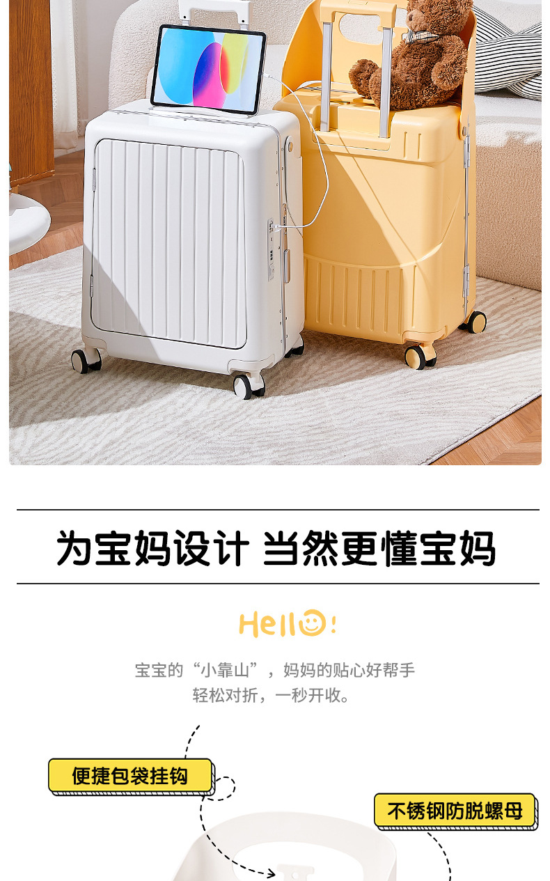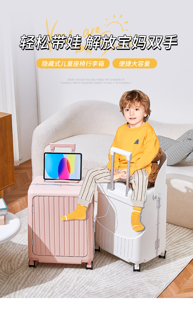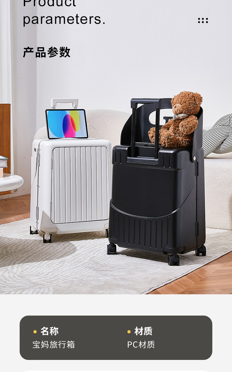 전면 개방 아기 엄마 상자 알루미늄 프레임 부모-자식 가방 아기 산책 가방 충전식 마운트 트롤리 케이스 24inch