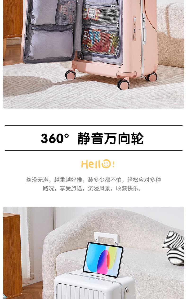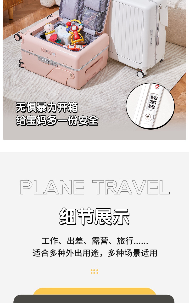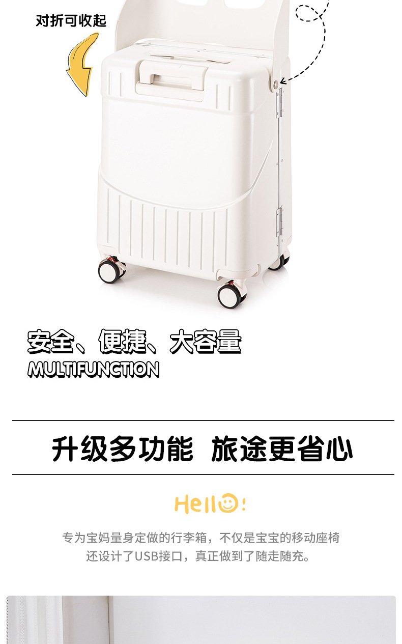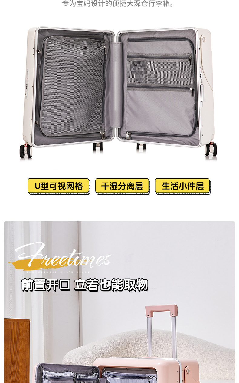 전면 개방 아기 엄마 상자 알루미늄 프레임 부모-자식 가방 아기 산책 가방 충전식 마운트 트롤리 케이스 24inch