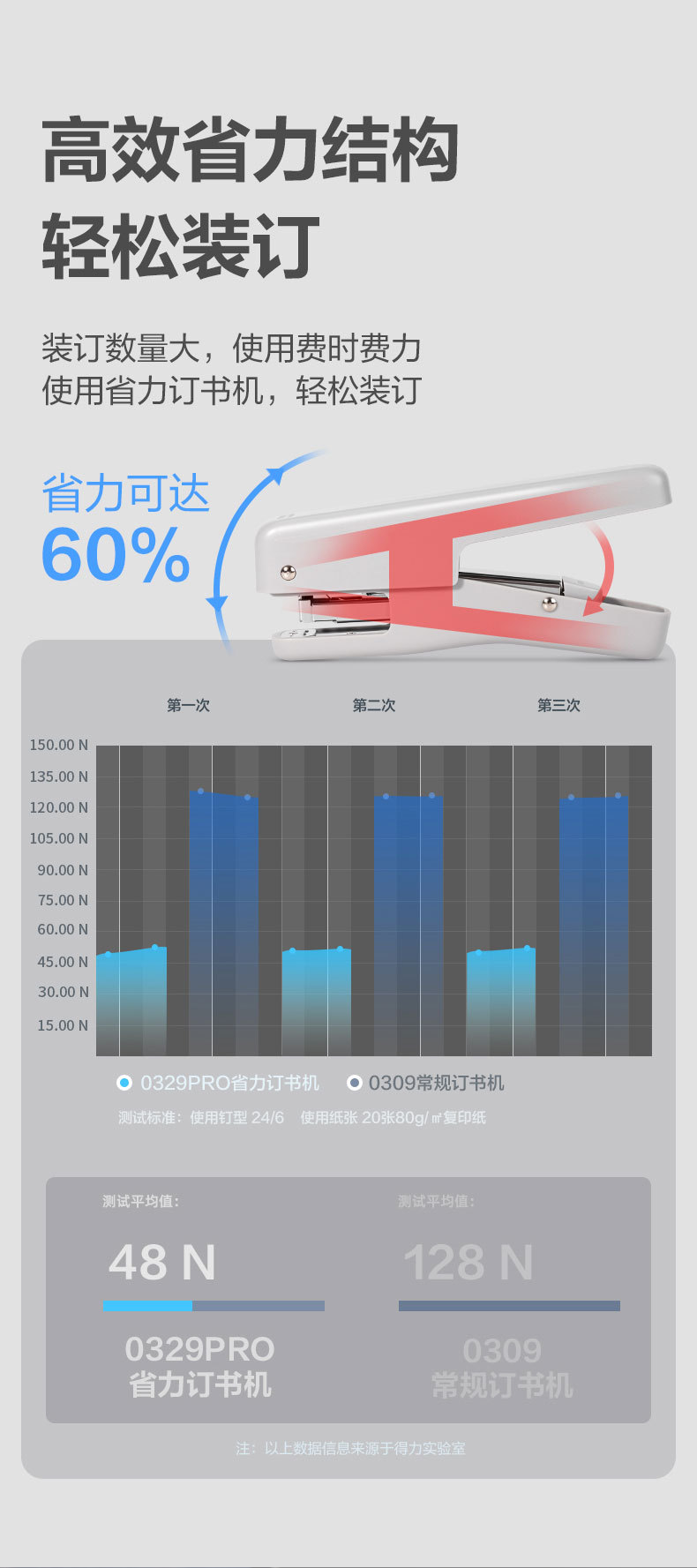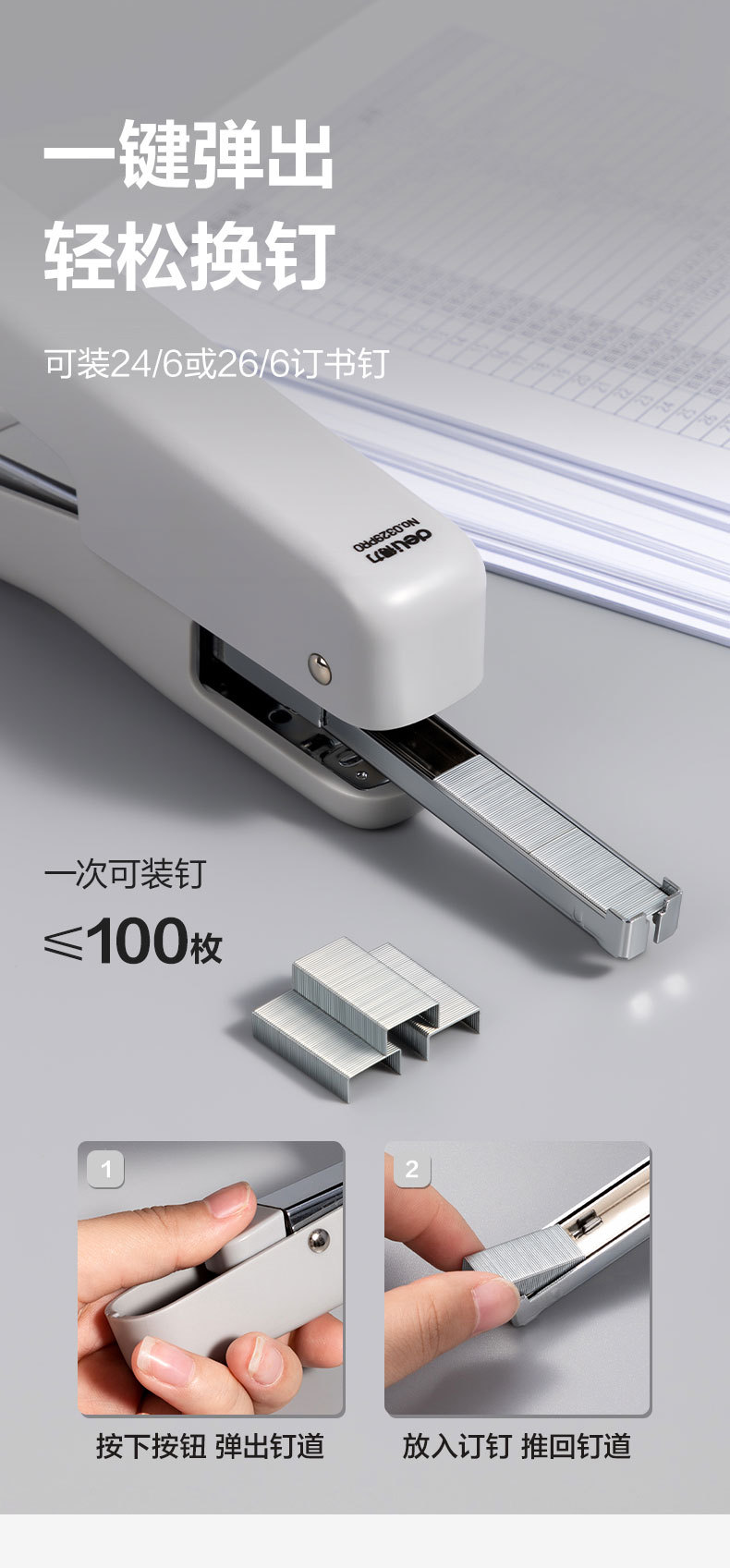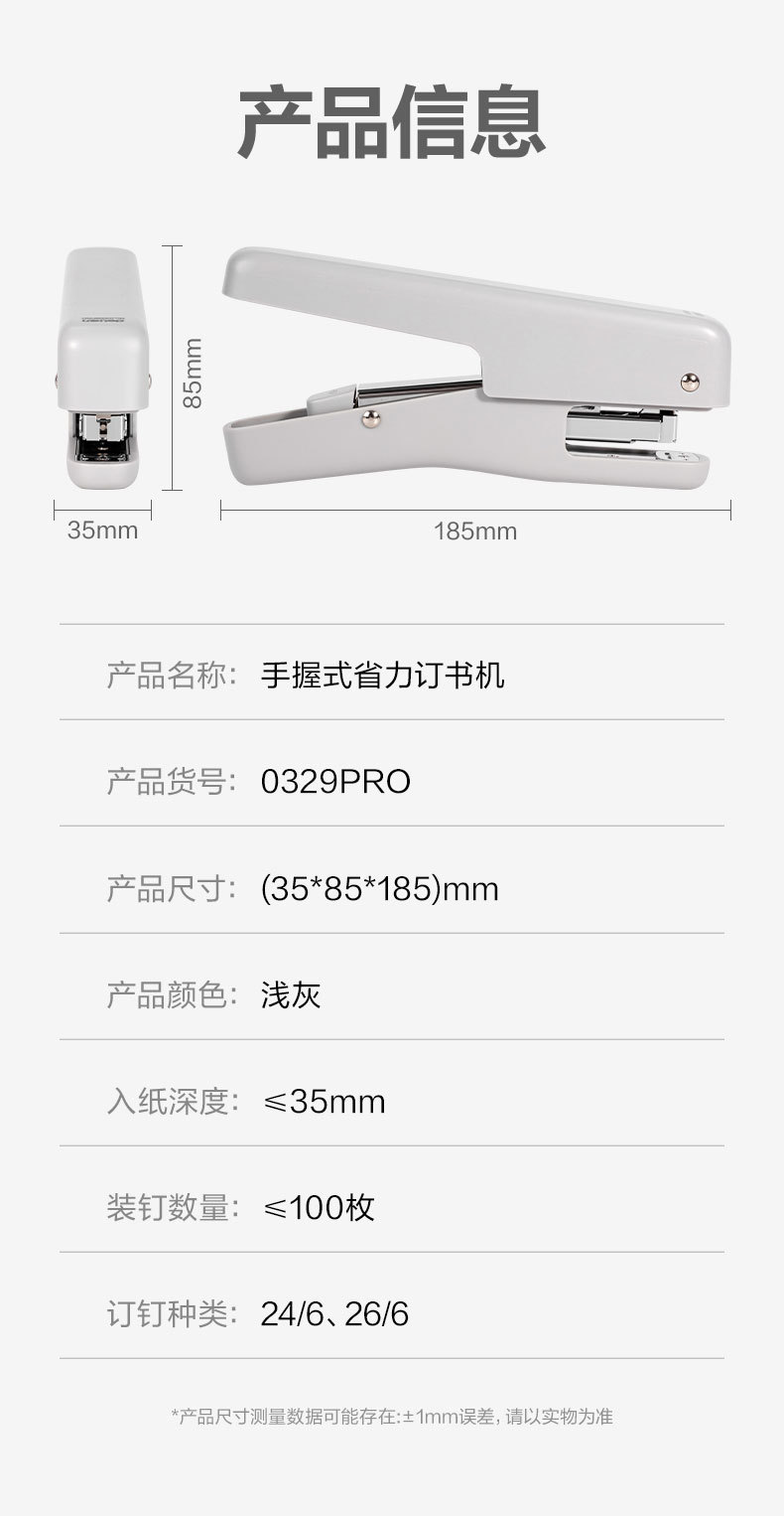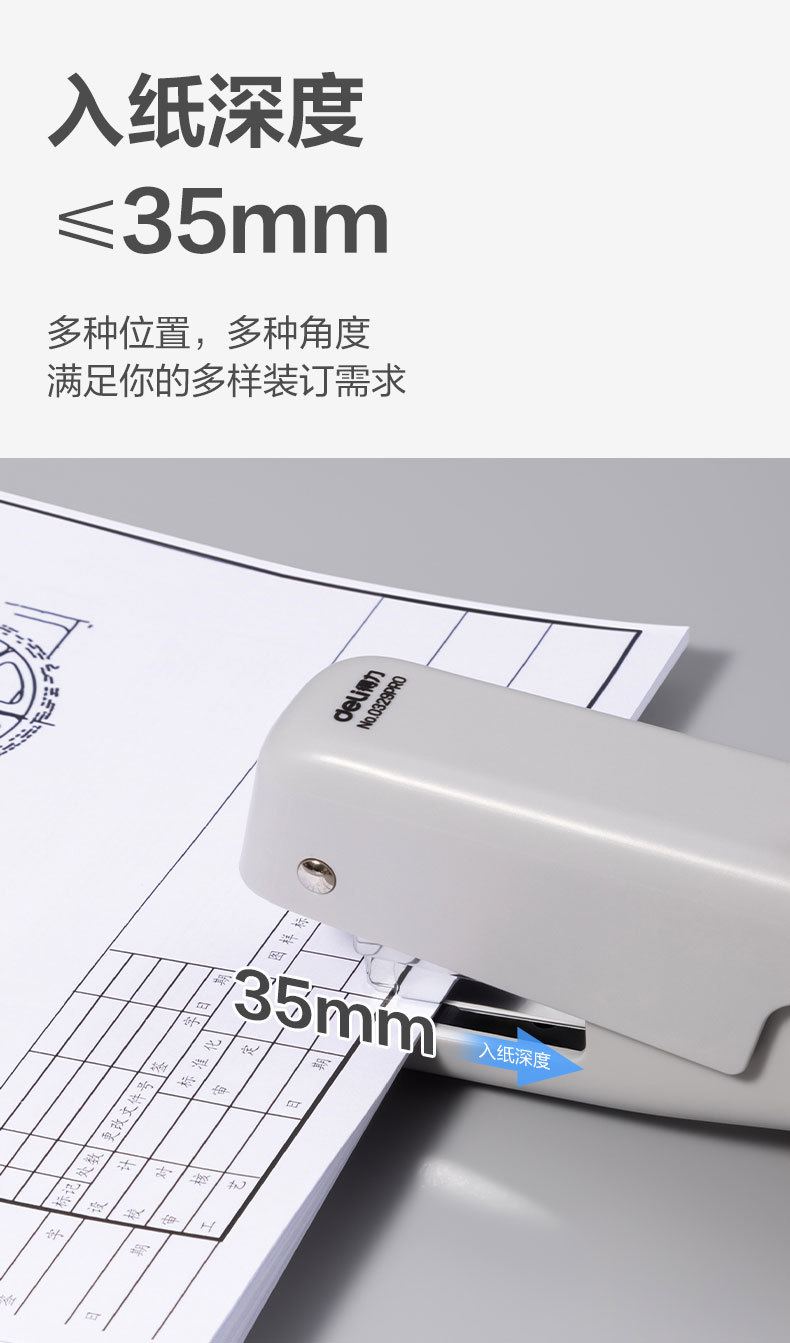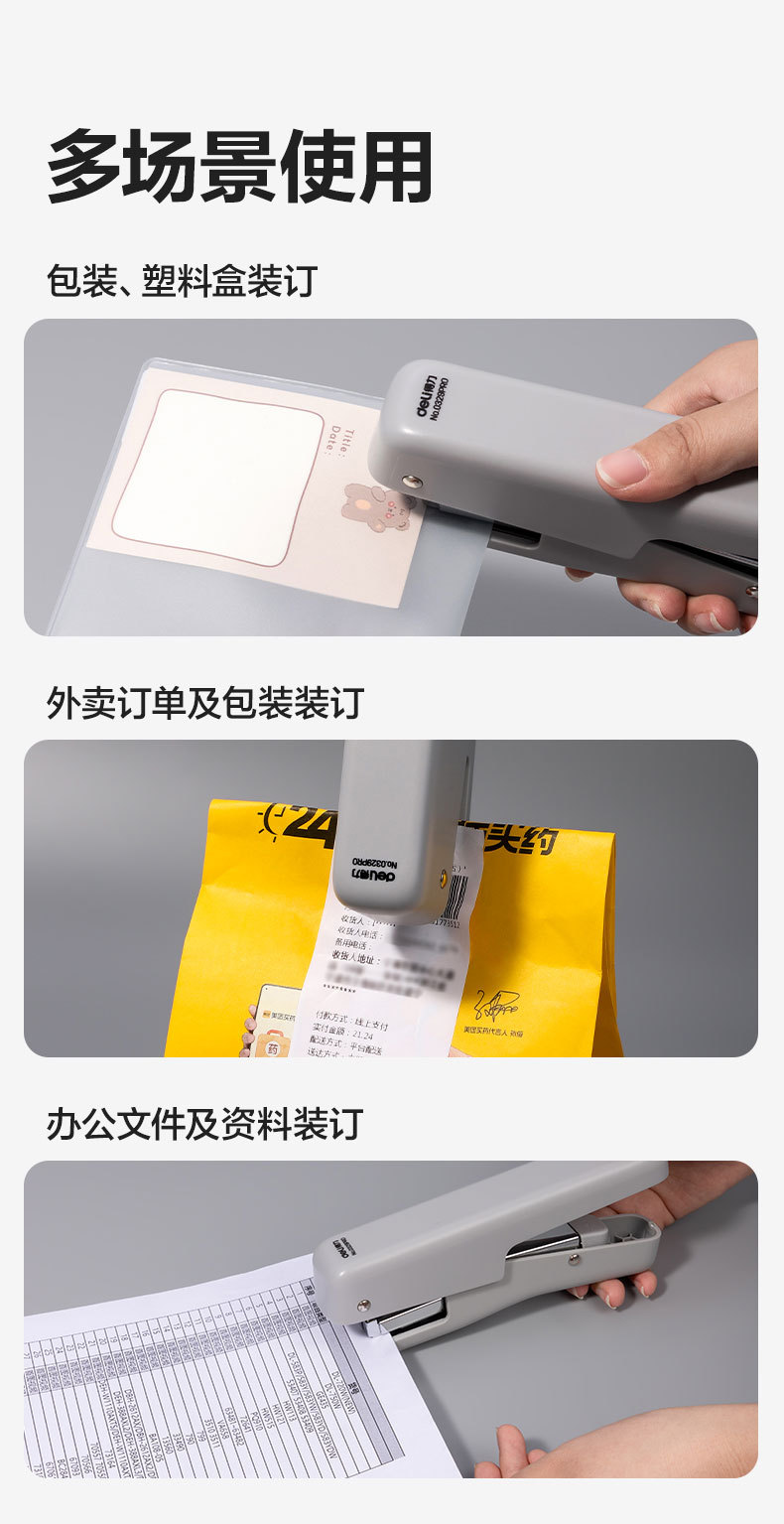 • 델리 0329PRO 휴대용 노동 절약 스테이플러 (회색)