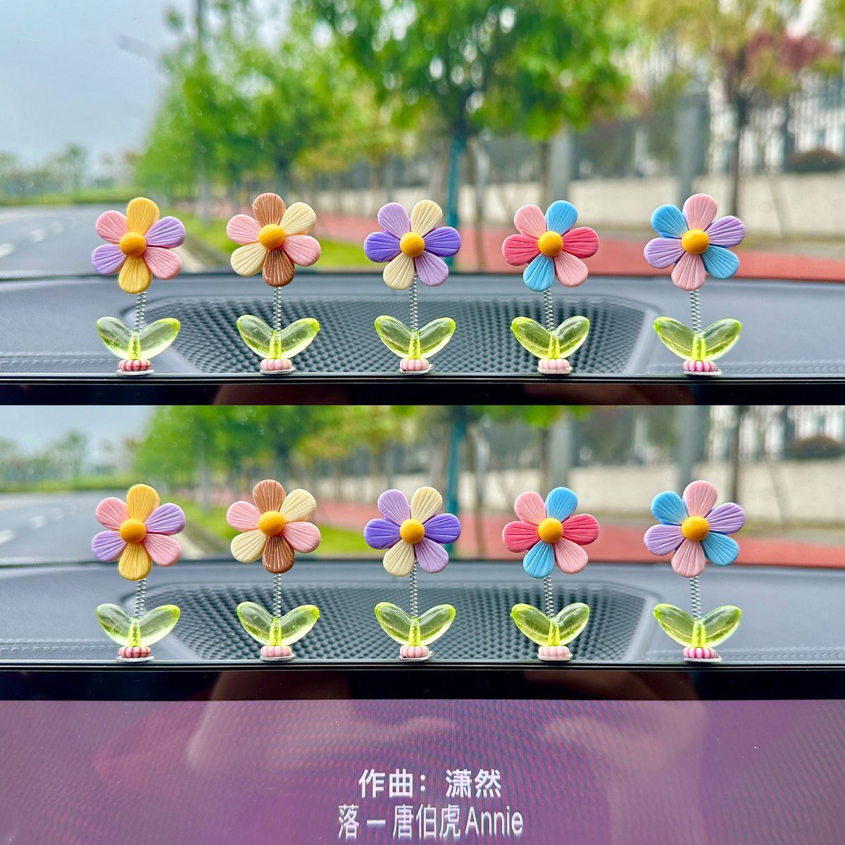 자동차 장식품 자동차 중앙 콘솔 해바라기 장식 새로운 인터넷 공급 귀여운 쉐이크 헤드 레인보우 꽃 장식품스토어 가기