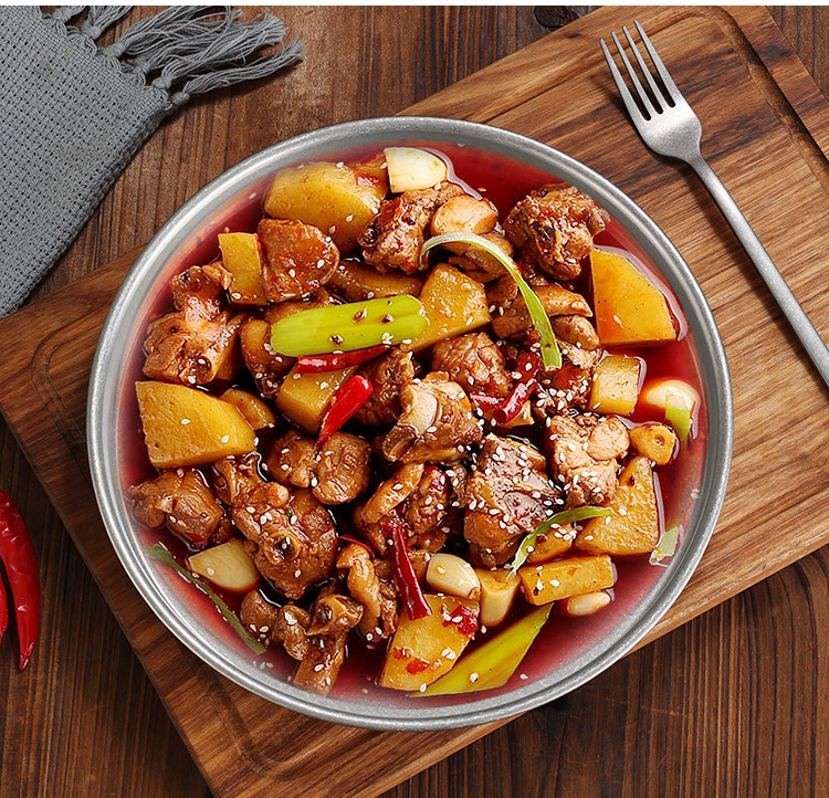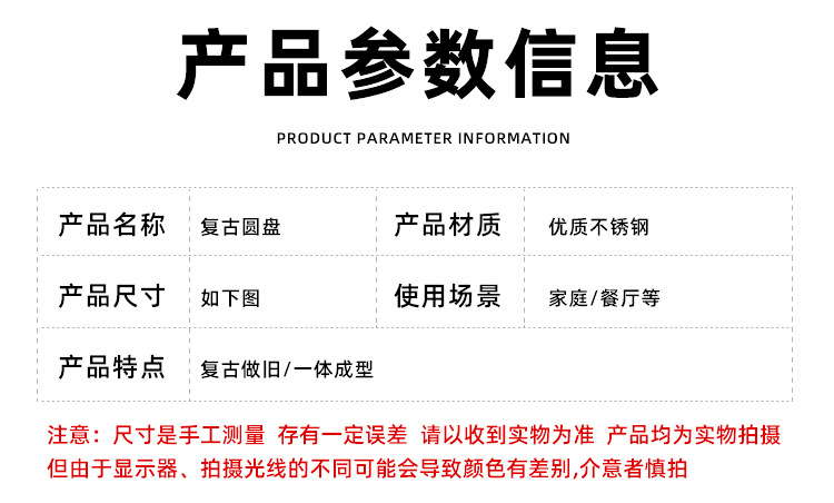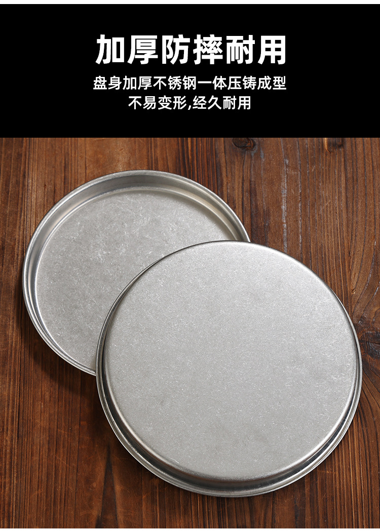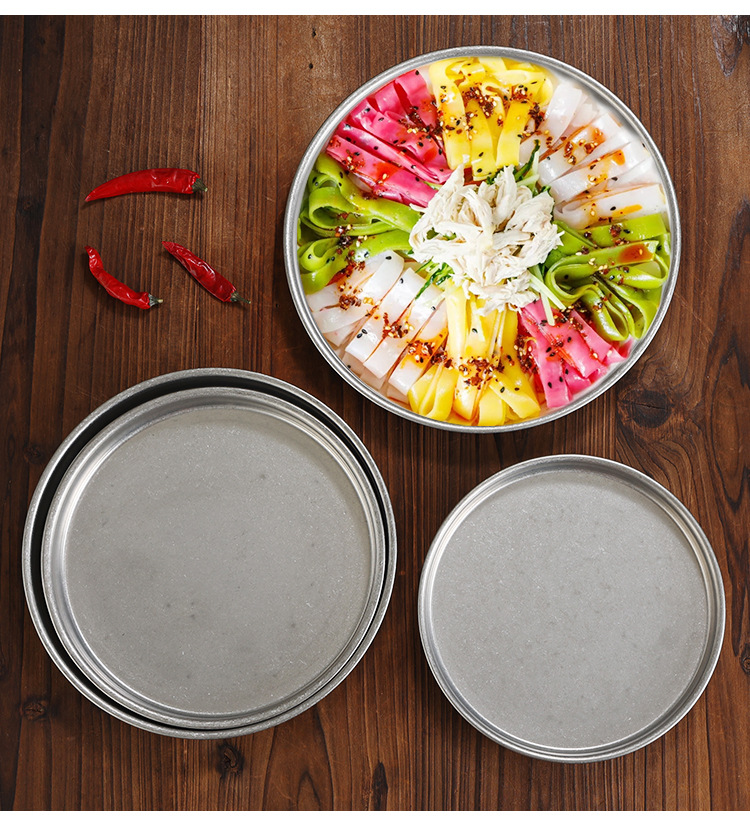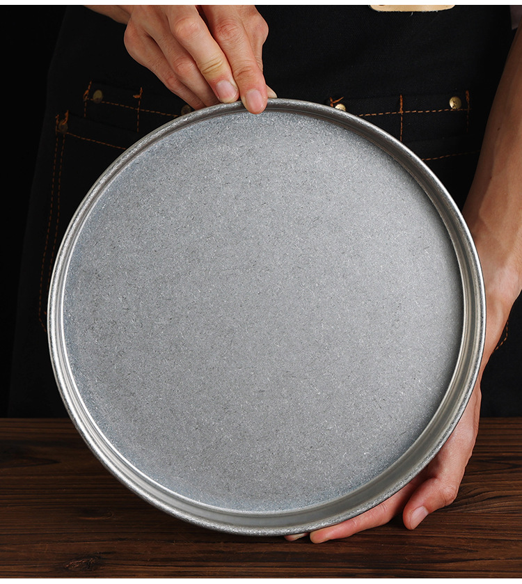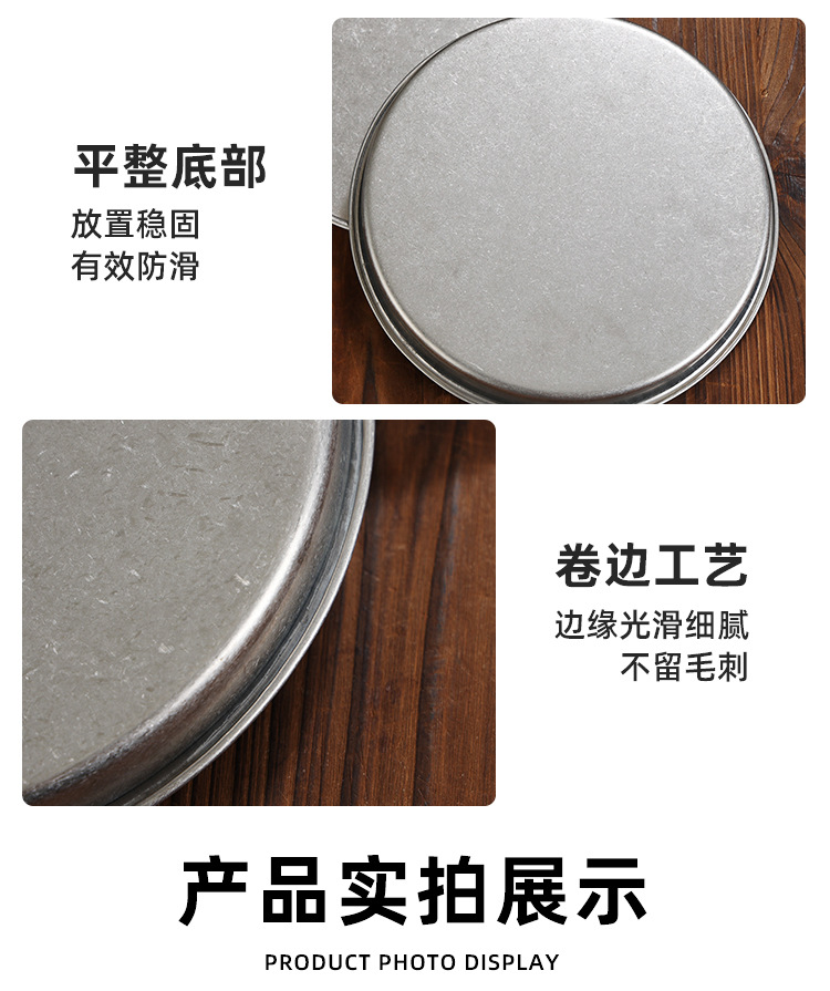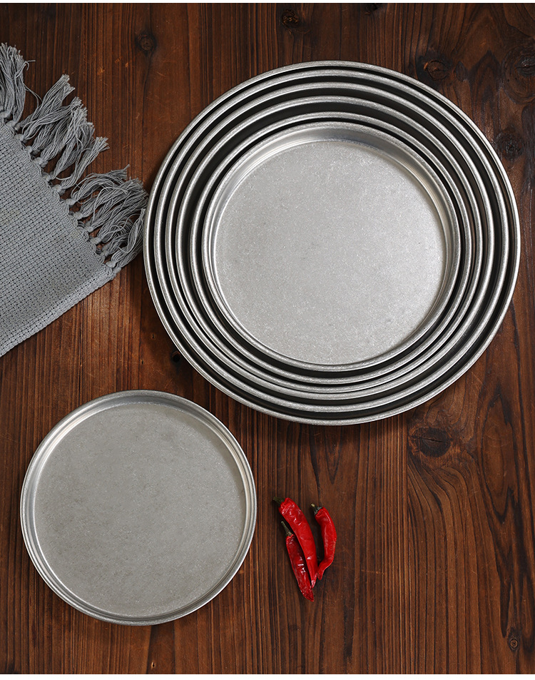빈티지 스테인레스 스틸 디스크 대형 트레이 플랫 하단 얕은 플레이트 딥 플레이트 베이킹 플레이트 핫 팟 접시 접시 케이크 플레이트 카페 과일 플레이트