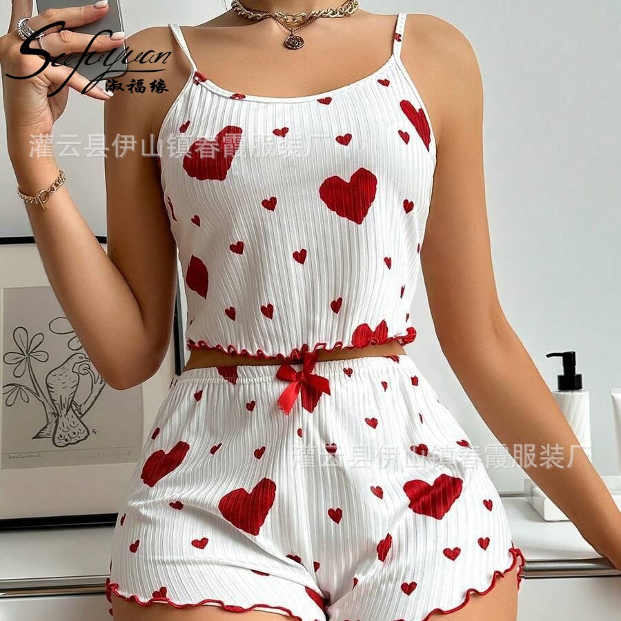 2025년 여름 여성용 반팔 반바지 잠옷 유럽풍 슬립 잠옷 얇은 스타일 도매스토어 가기