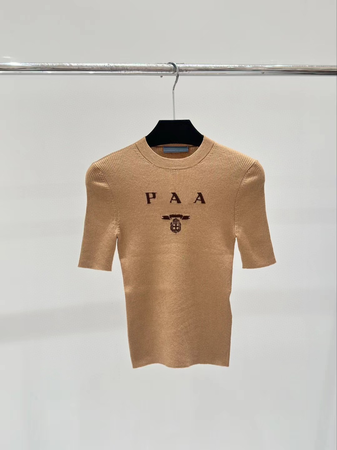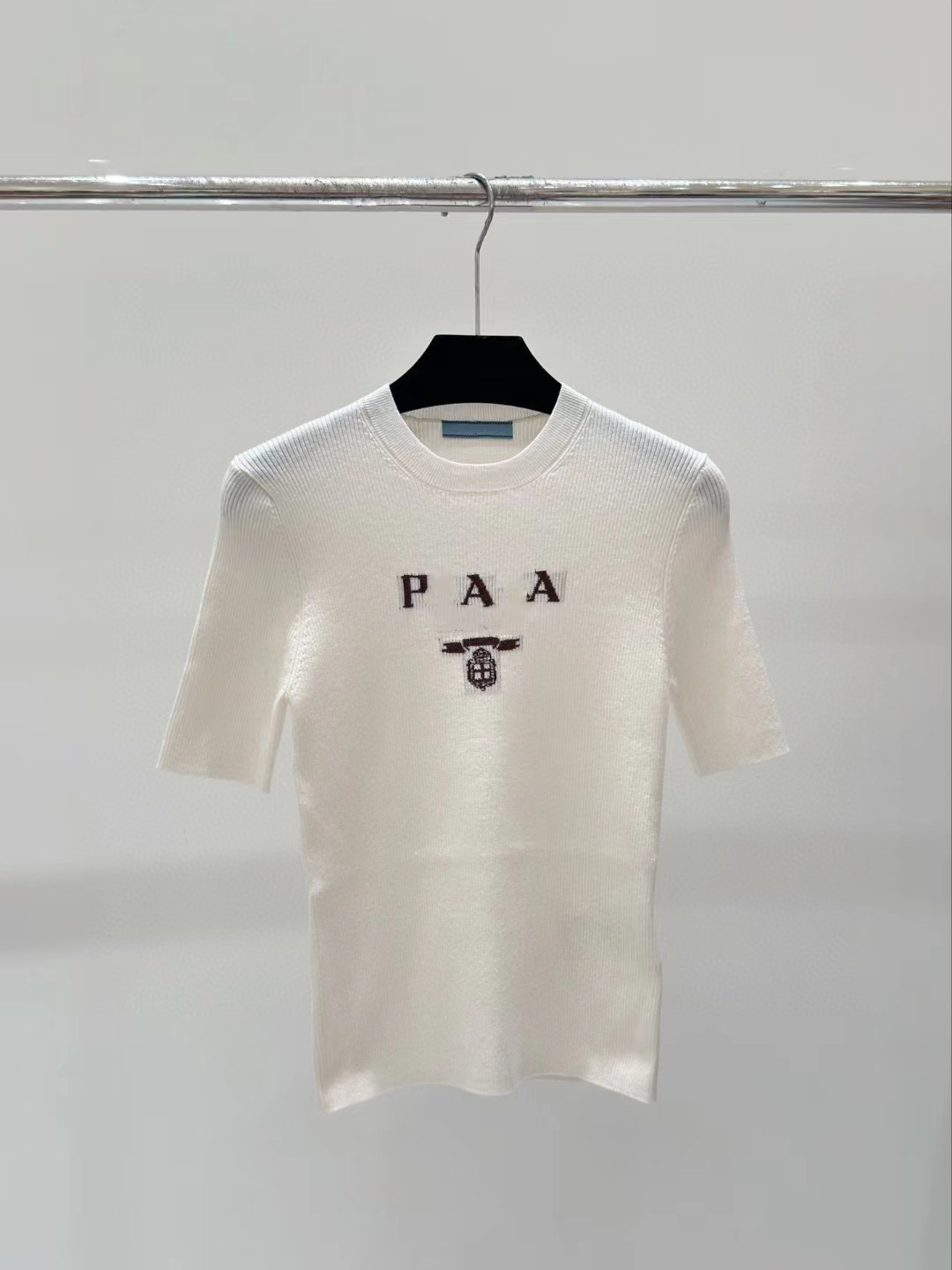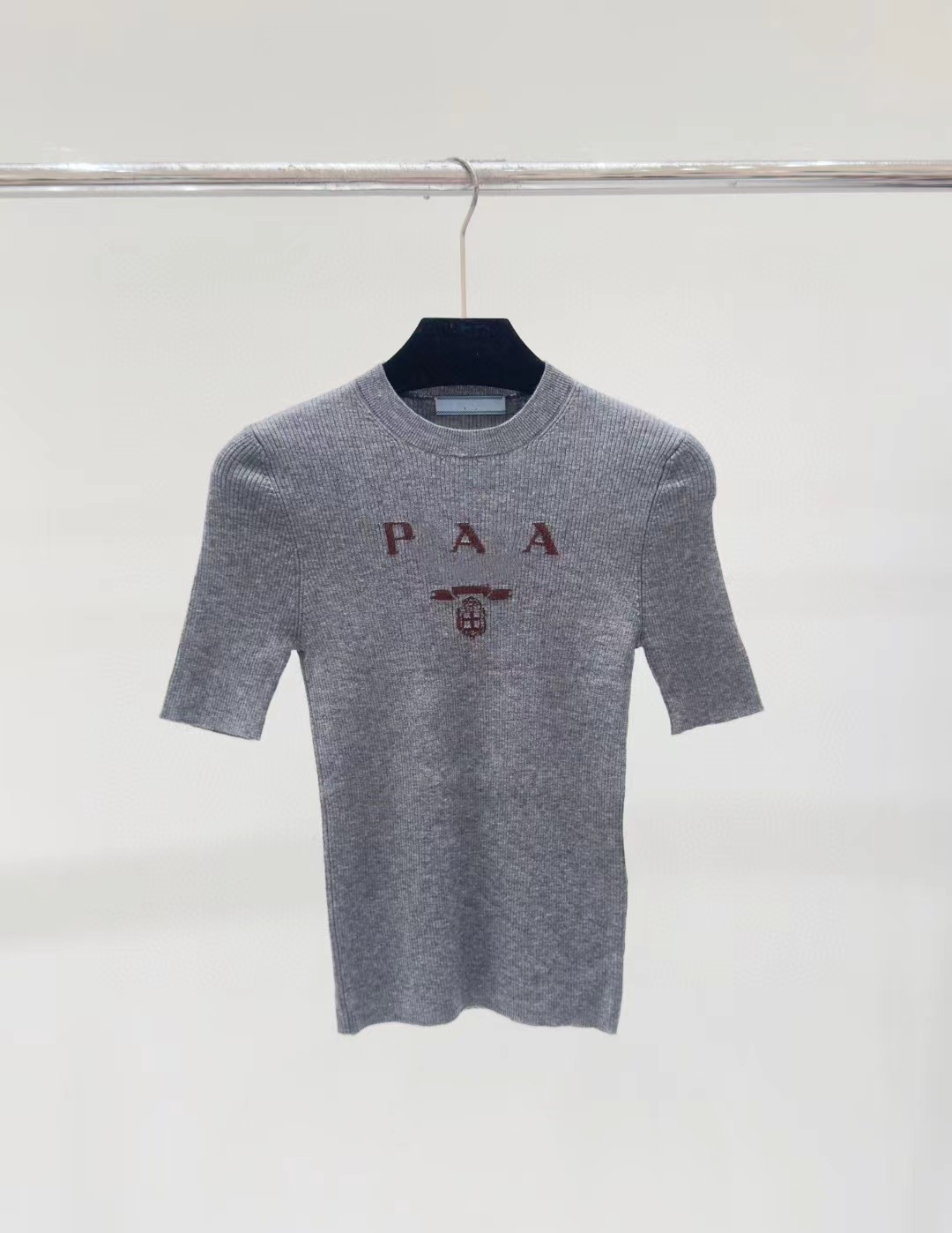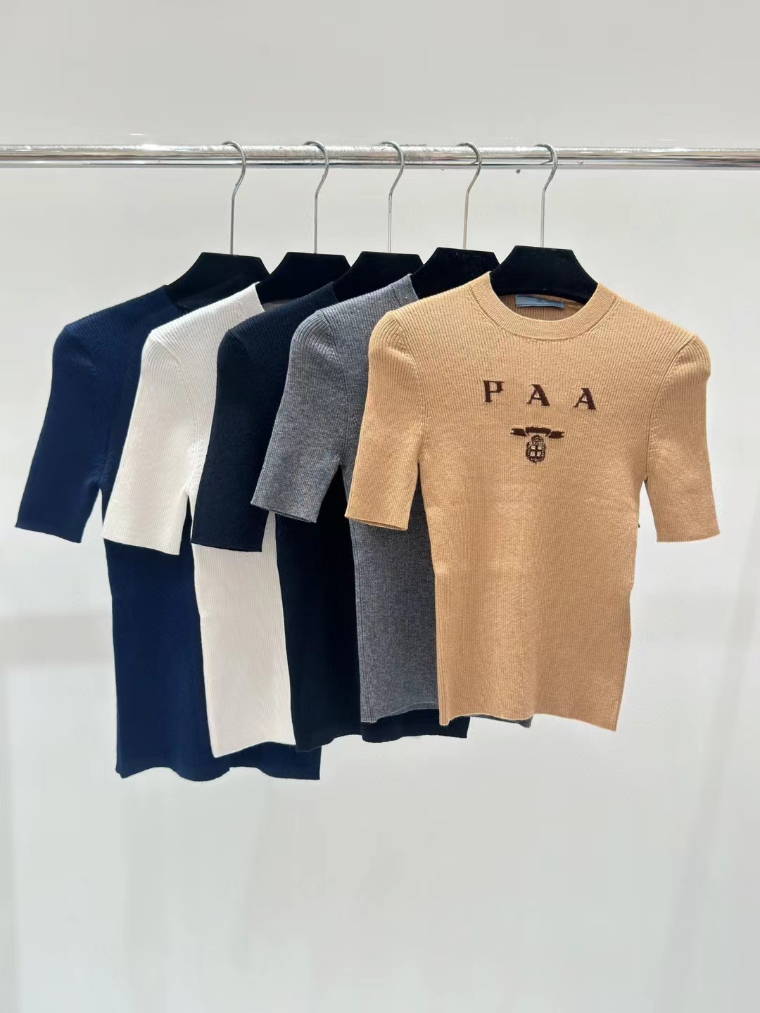 하이 세트 프렌치 슬림 핏 슬리밍 반팔 티셔츠 빈티지 레터 자수 스트레치 니트 여성용 심플 얇은 탑스토어 가기