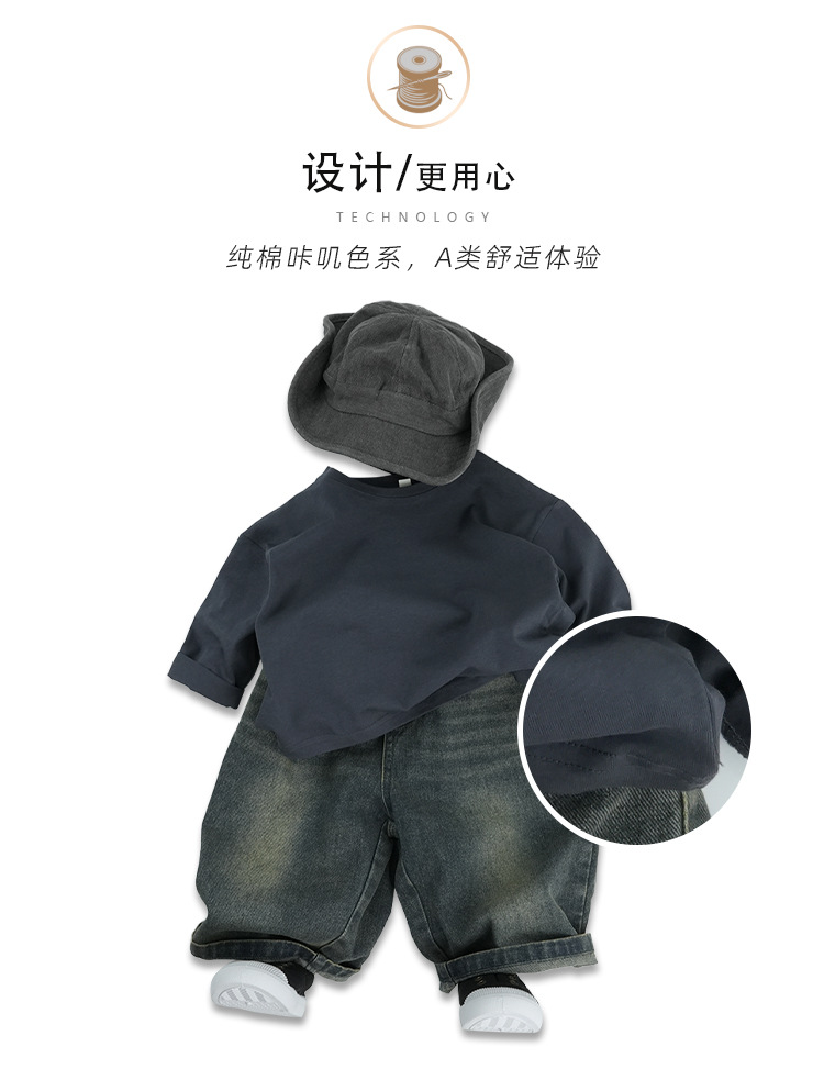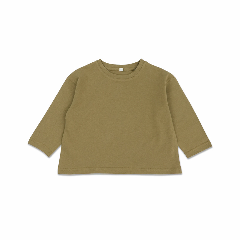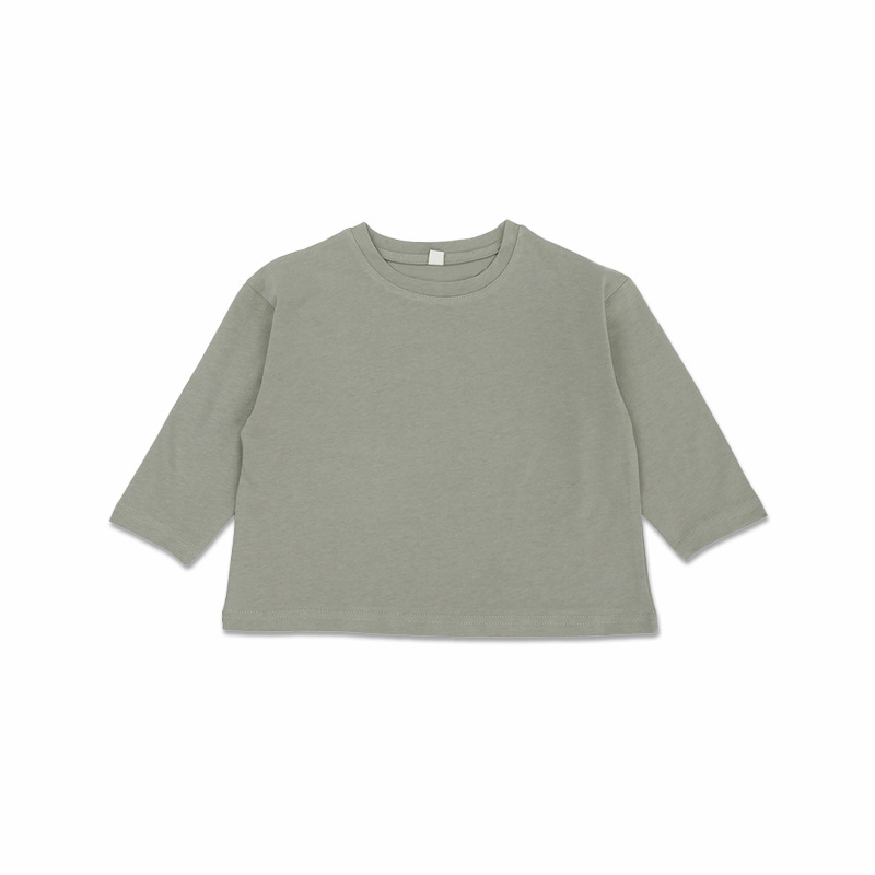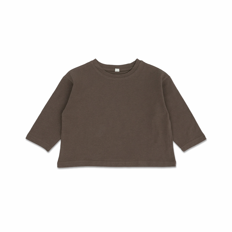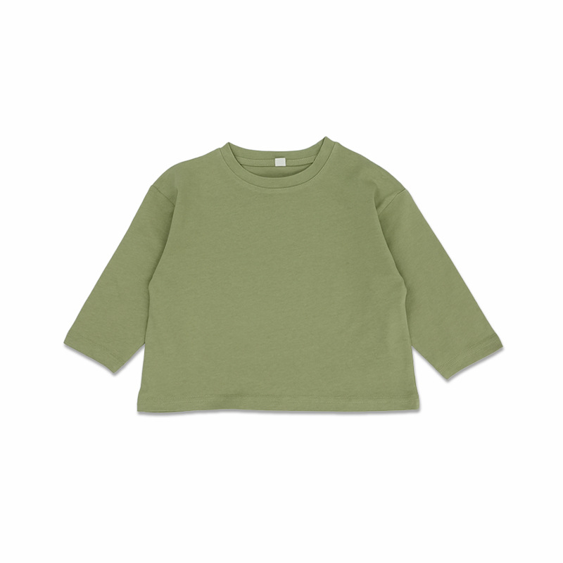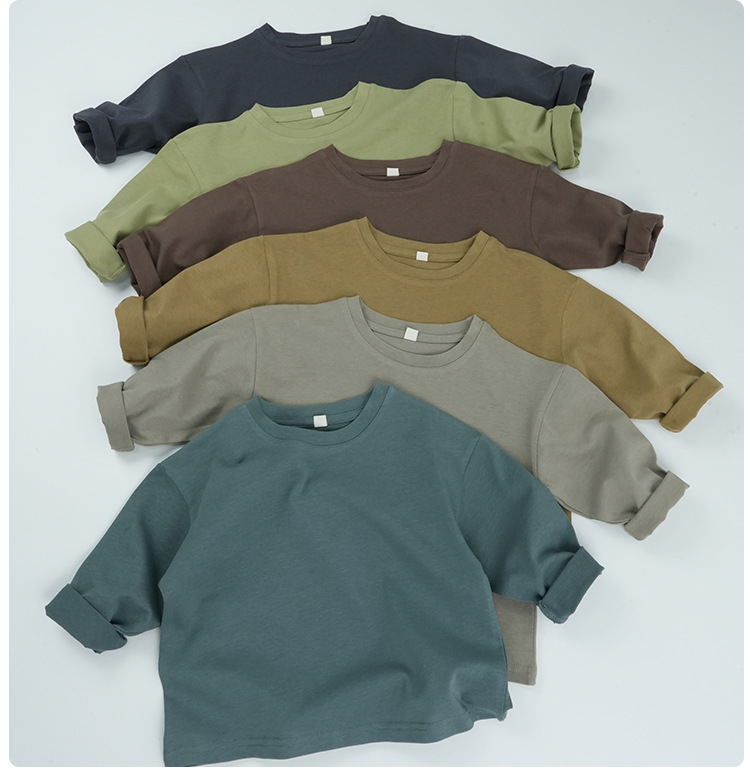 기본형 한국 스타일 어린이용 부드러운 순면 티셔츠 2024 가을 신상 남녀공용 세련된 긴팔 티셔츠스토어 가기
