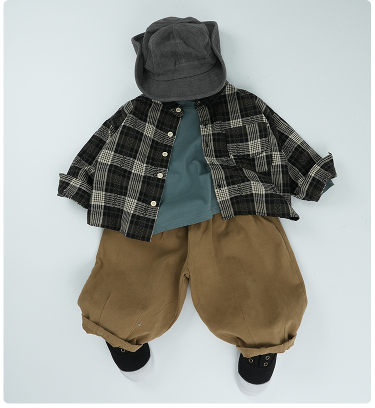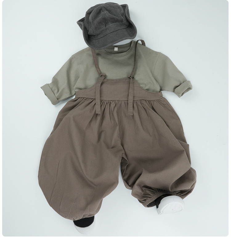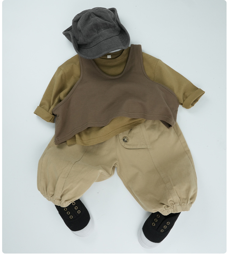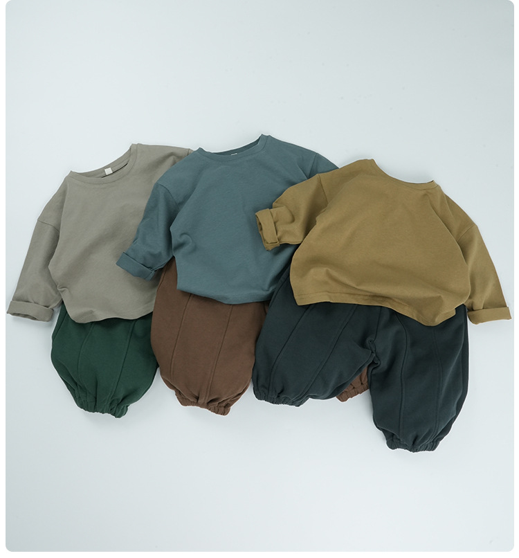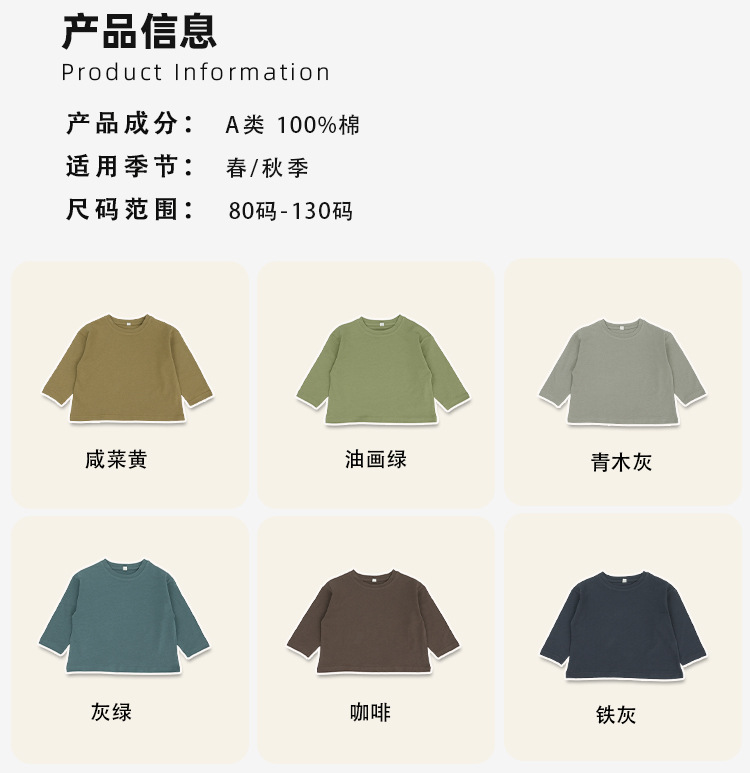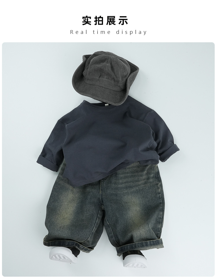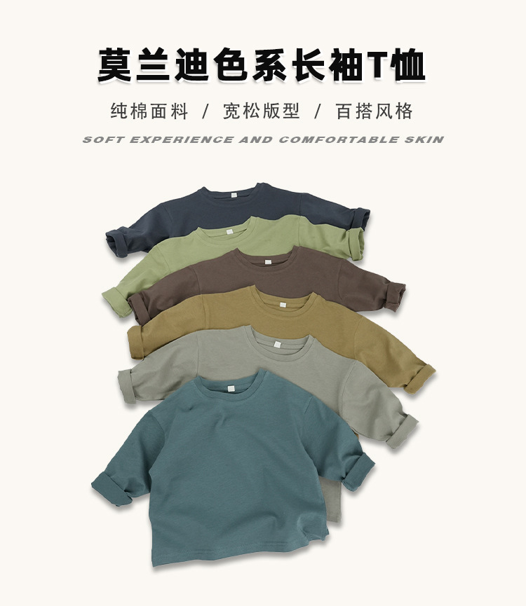 기본형 한국 스타일 어린이용 부드러운 순면 티셔츠 2024 가을 신상 남녀공용 세련된 긴팔 티셔츠스토어 가기