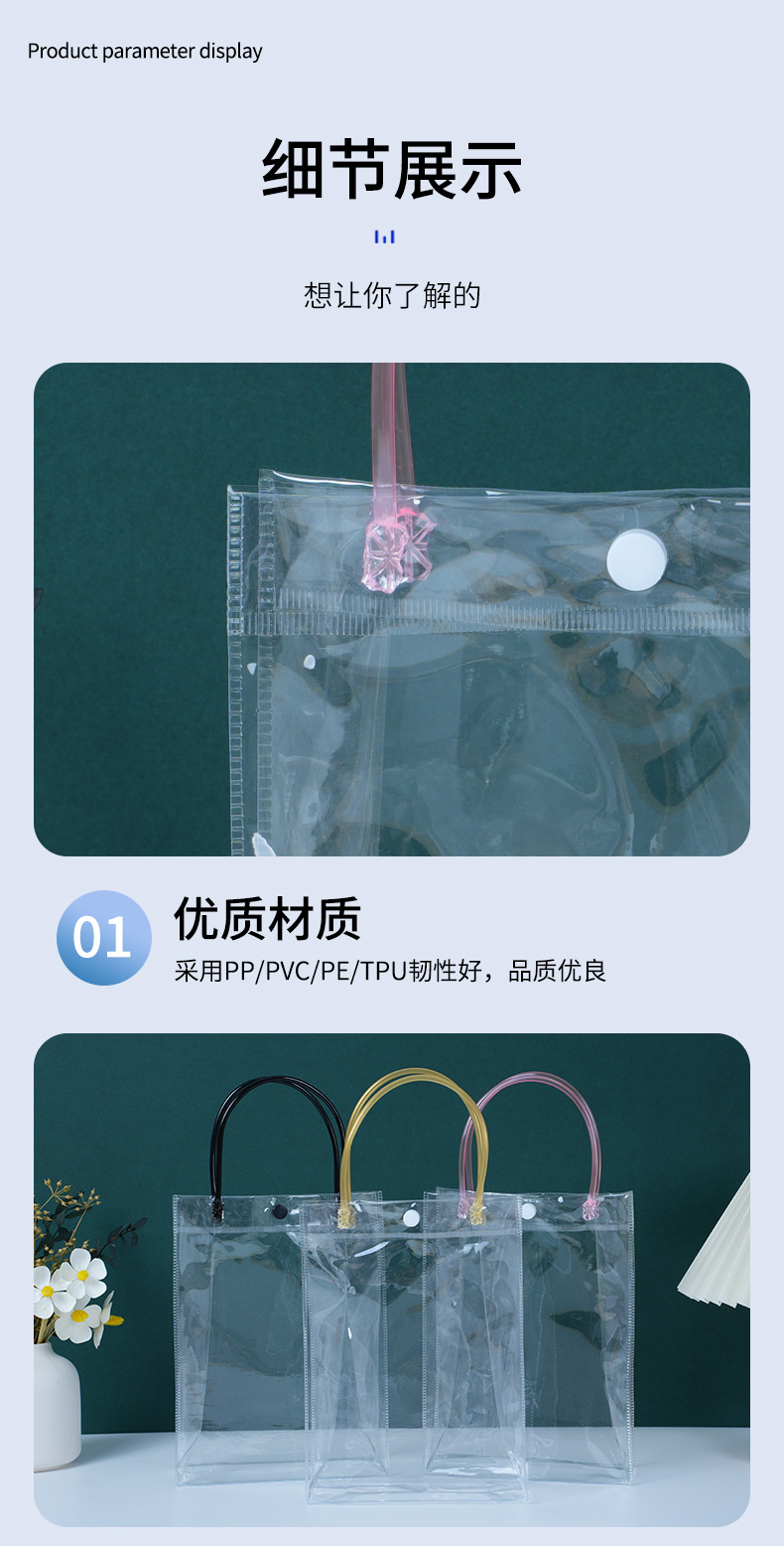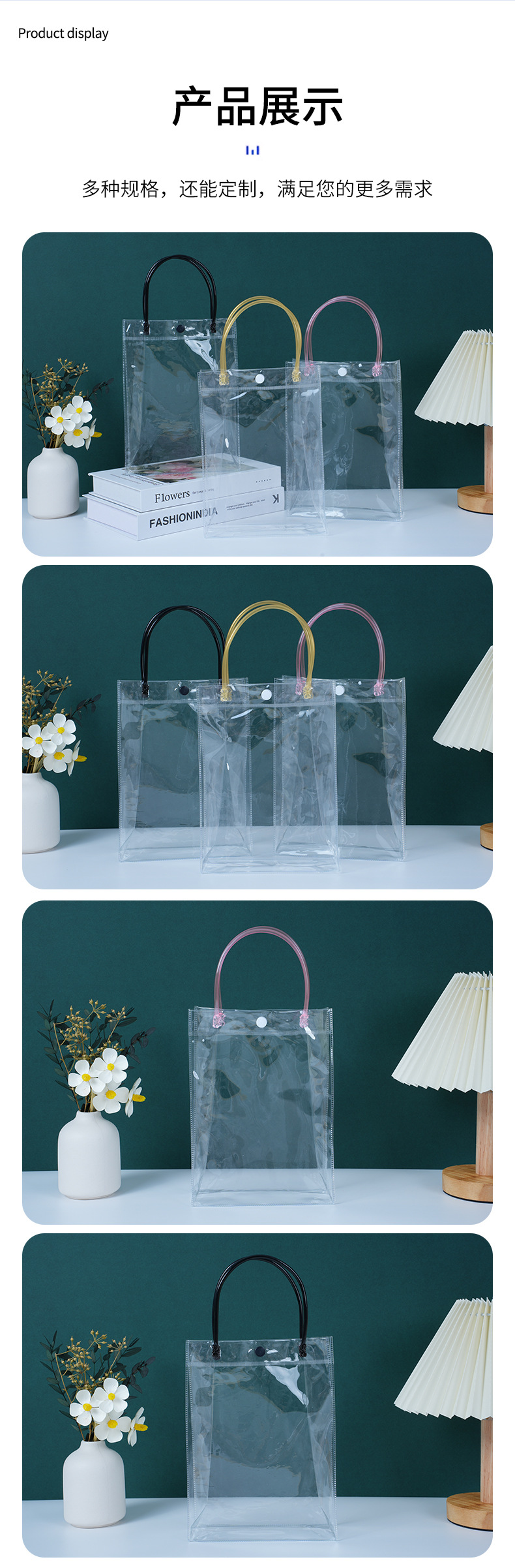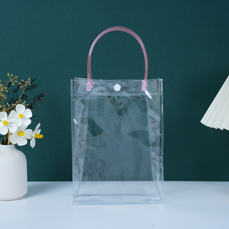 투명 핸드백 PVC 선물 가방 선물 선물 가방 재고 플라스틱 포장 가방 사용자 정의스토어 가기