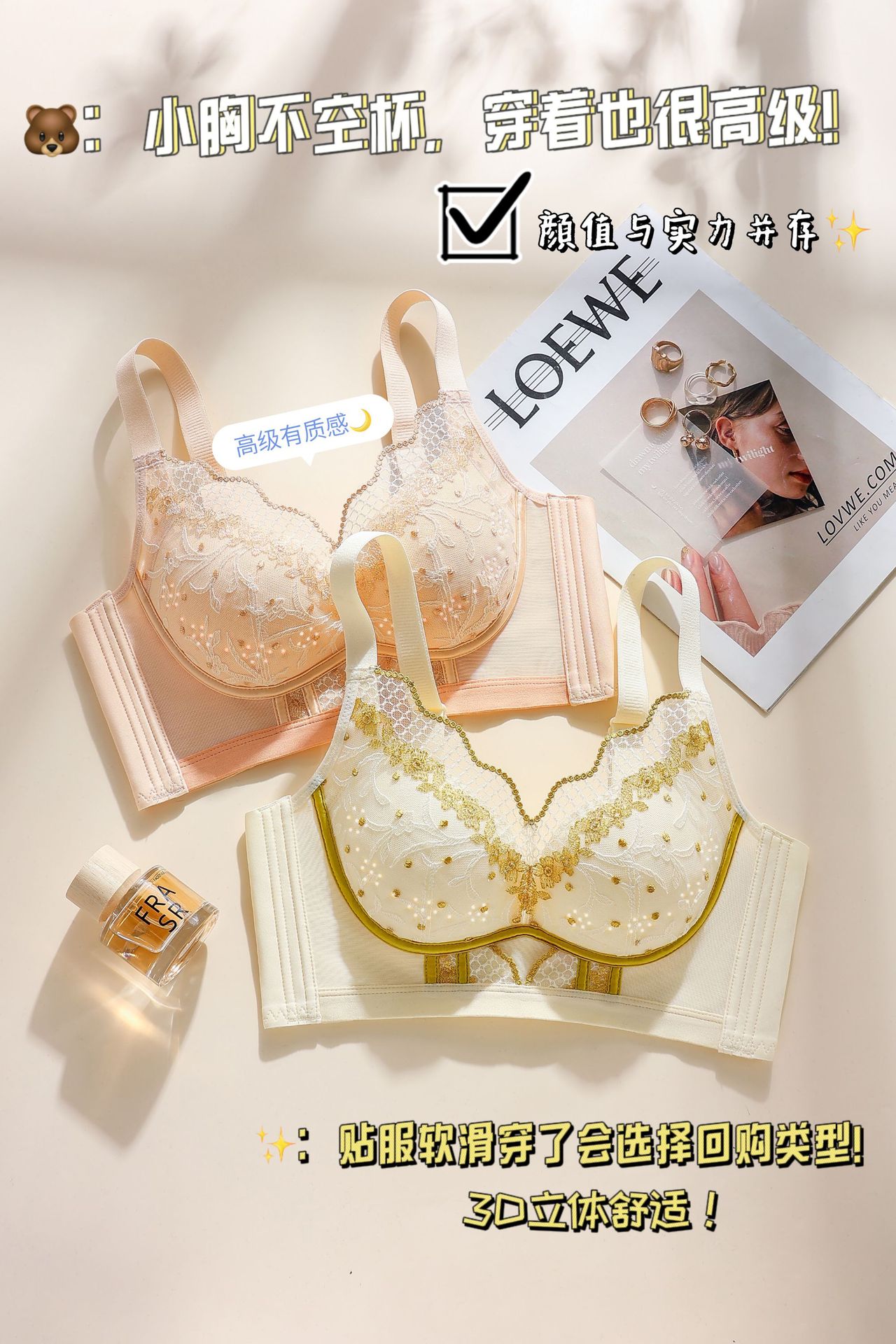 Yuzi 나비 원래 디자인 속옷 여름 초박형 여성은 강철 반지 조절 브래지어없이 빈 컵이 아닌 작은 가슴을 모았습니다.스토어 가기