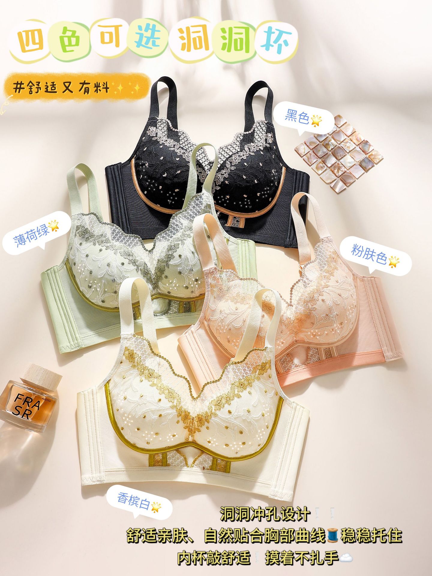 Yuzi 나비 원래 디자인 속옷 여름 초박형 여성은 강철 반지 조절 브래지어없이 빈 컵이 아닌 작은 가슴을 모았습니다.