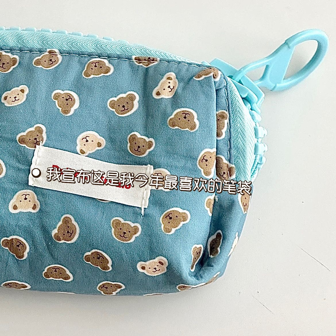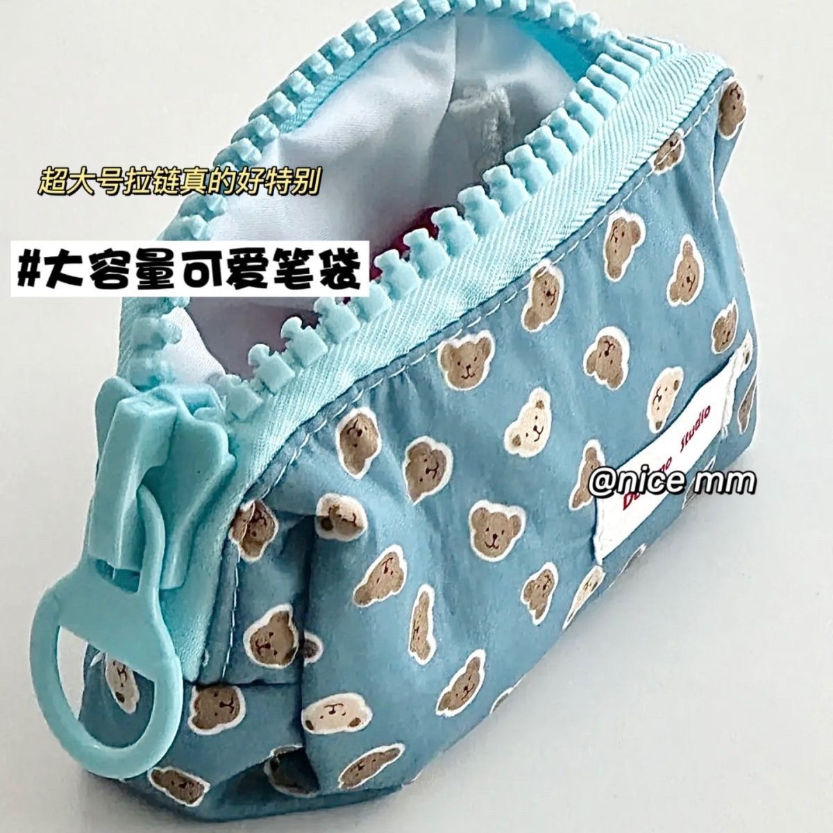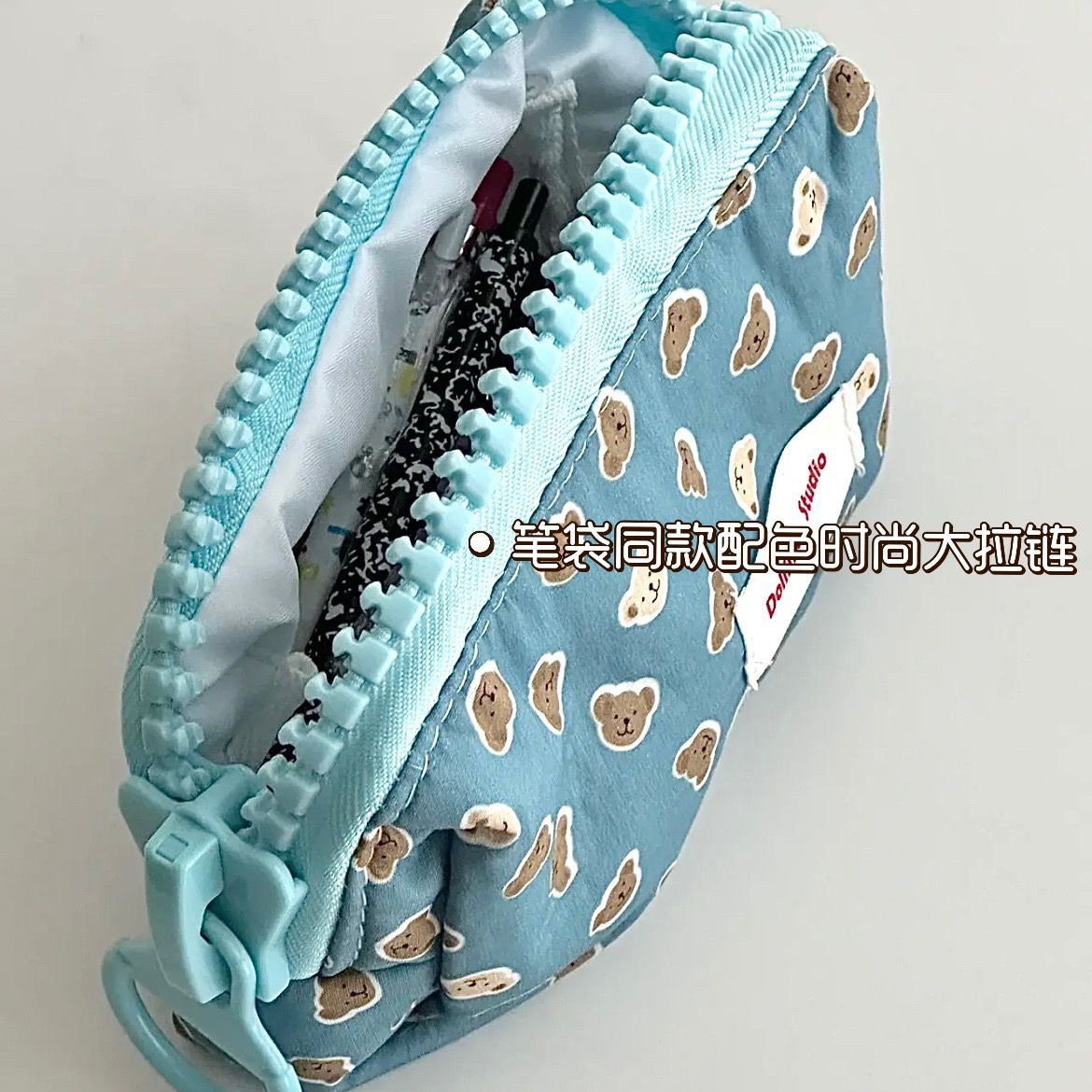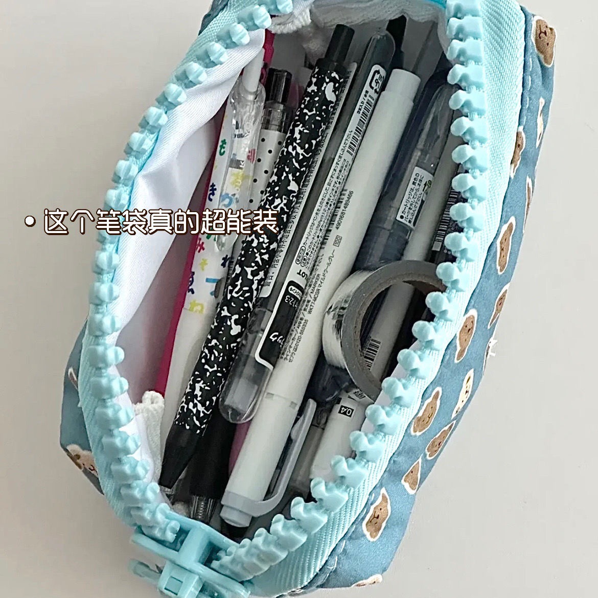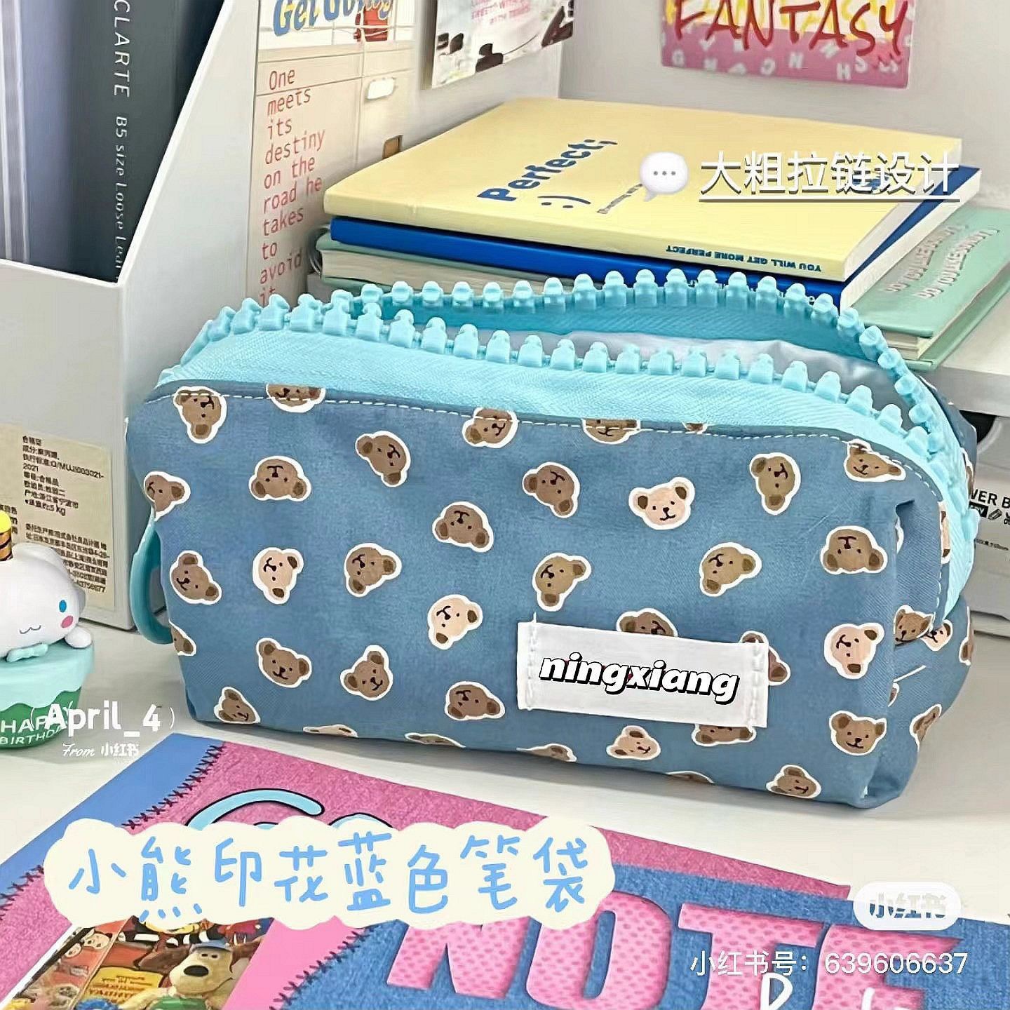 블루 베어 프린트 대형 지퍼 필통, 고급스러운 디자인, 대용량, 독특한 만화 문구 상자, 오염 방지스토어 가기