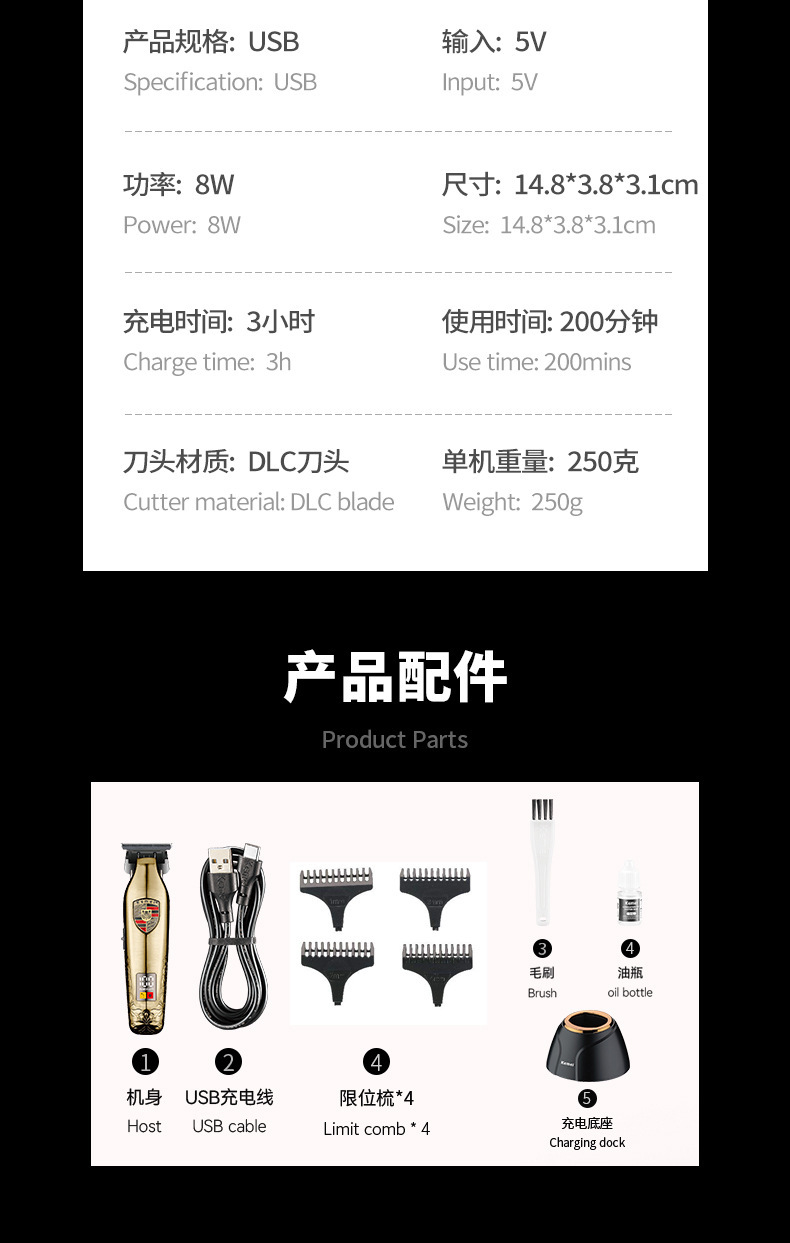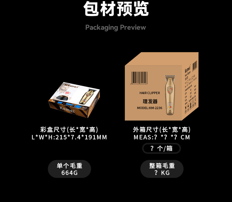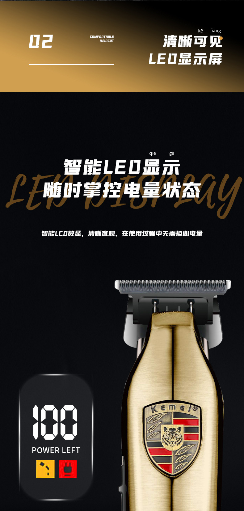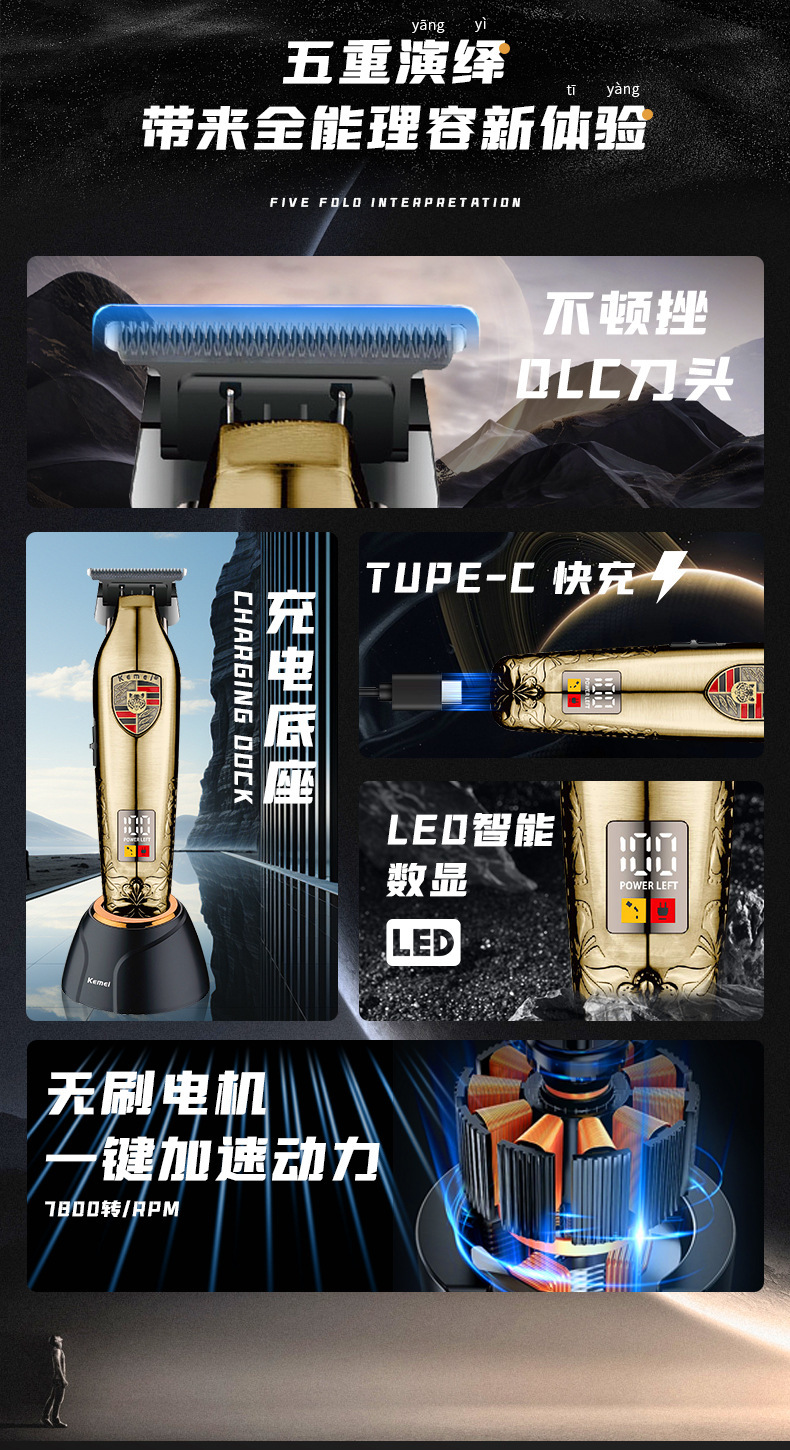 科美/KEMEI新款发廊雕刻剪专业理发套装数显理发器电推剪剃头推子