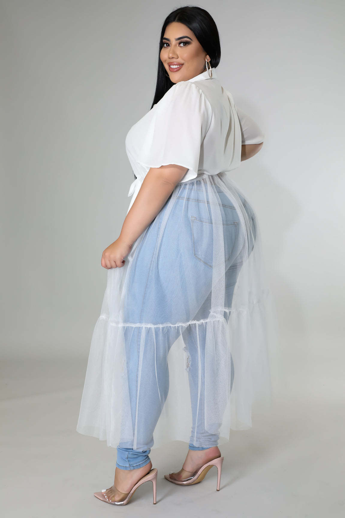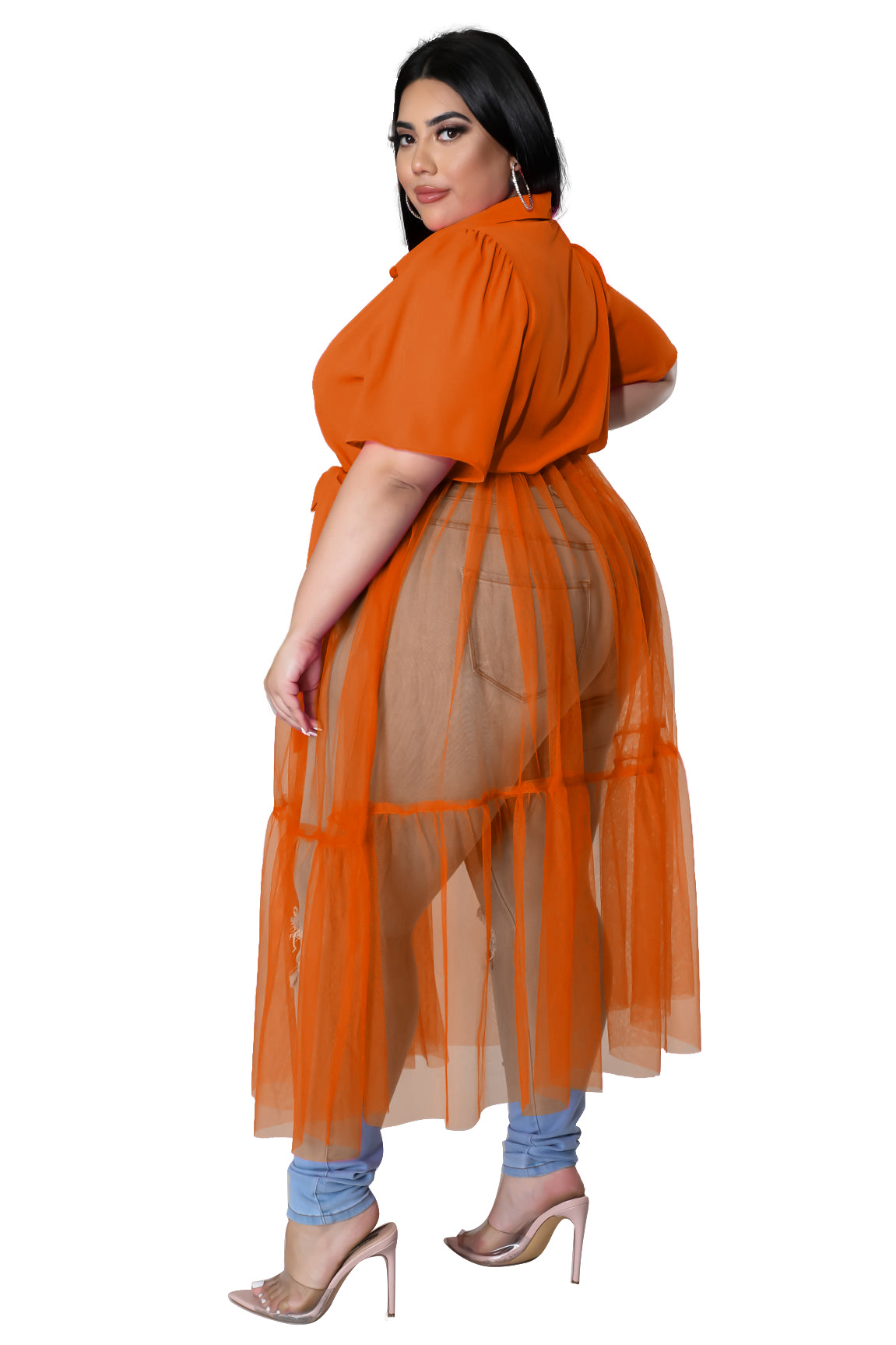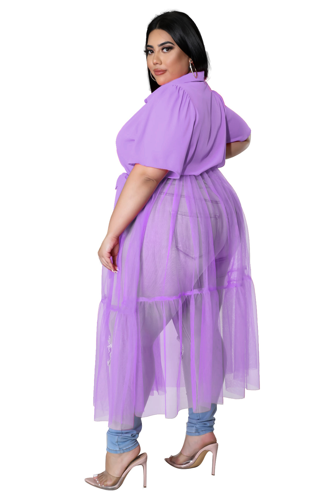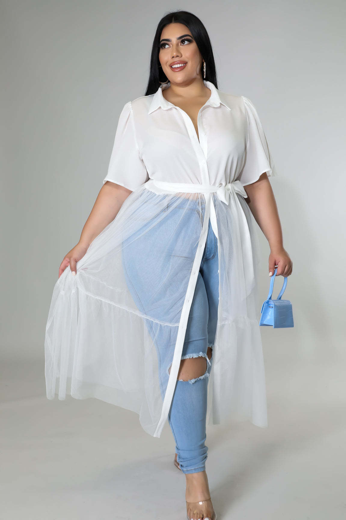 QJ5298 유럽과 미국의 국경 간 뚱뚱한 여성 플러스 사이즈 여성 쉬폰 메쉬 주름 탑 캐주얼 원피스스토어 가기