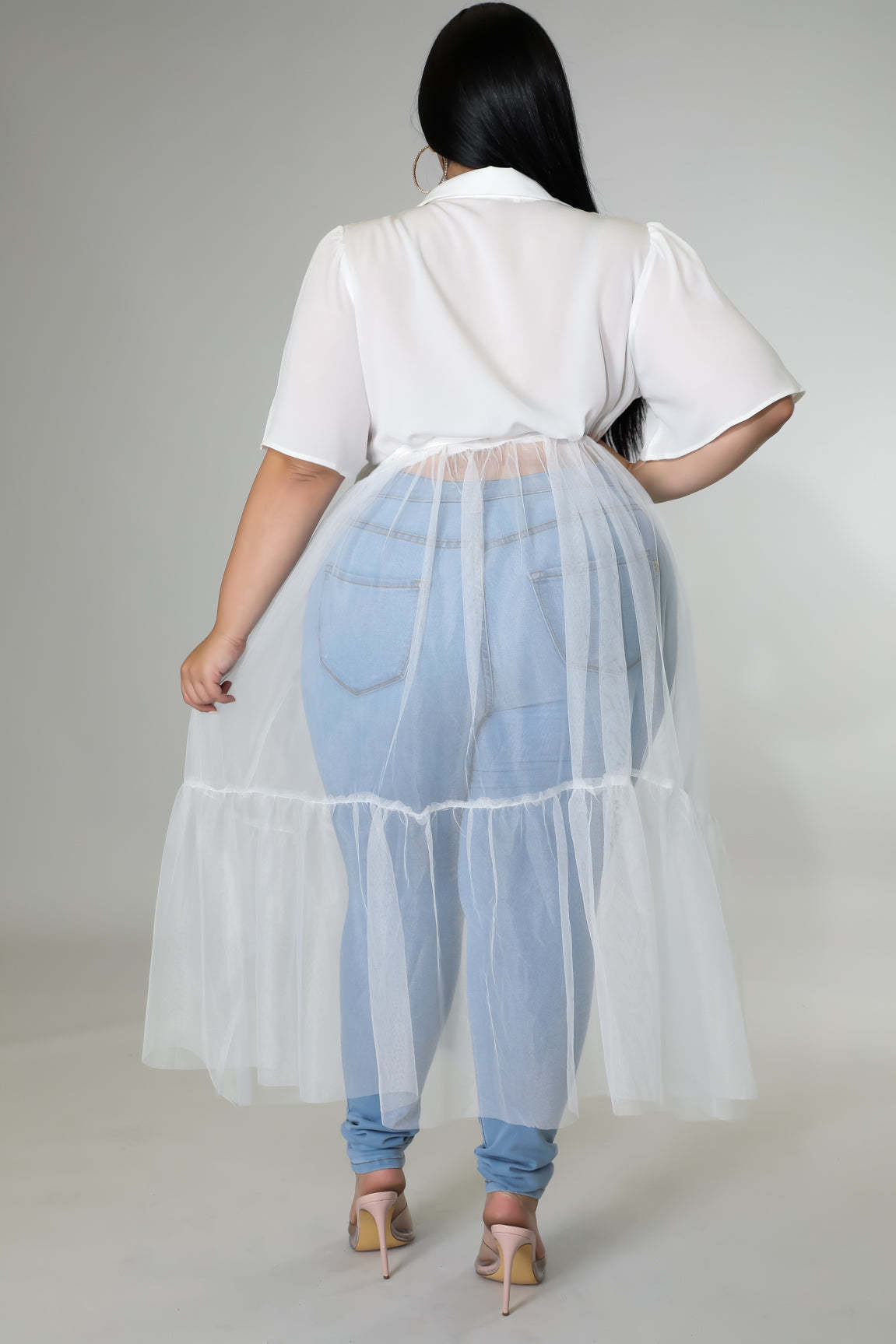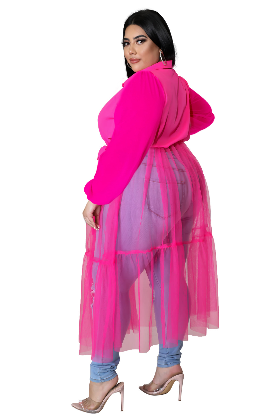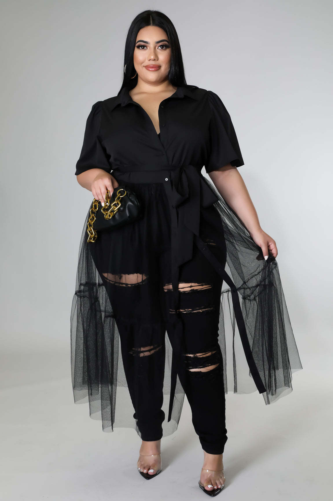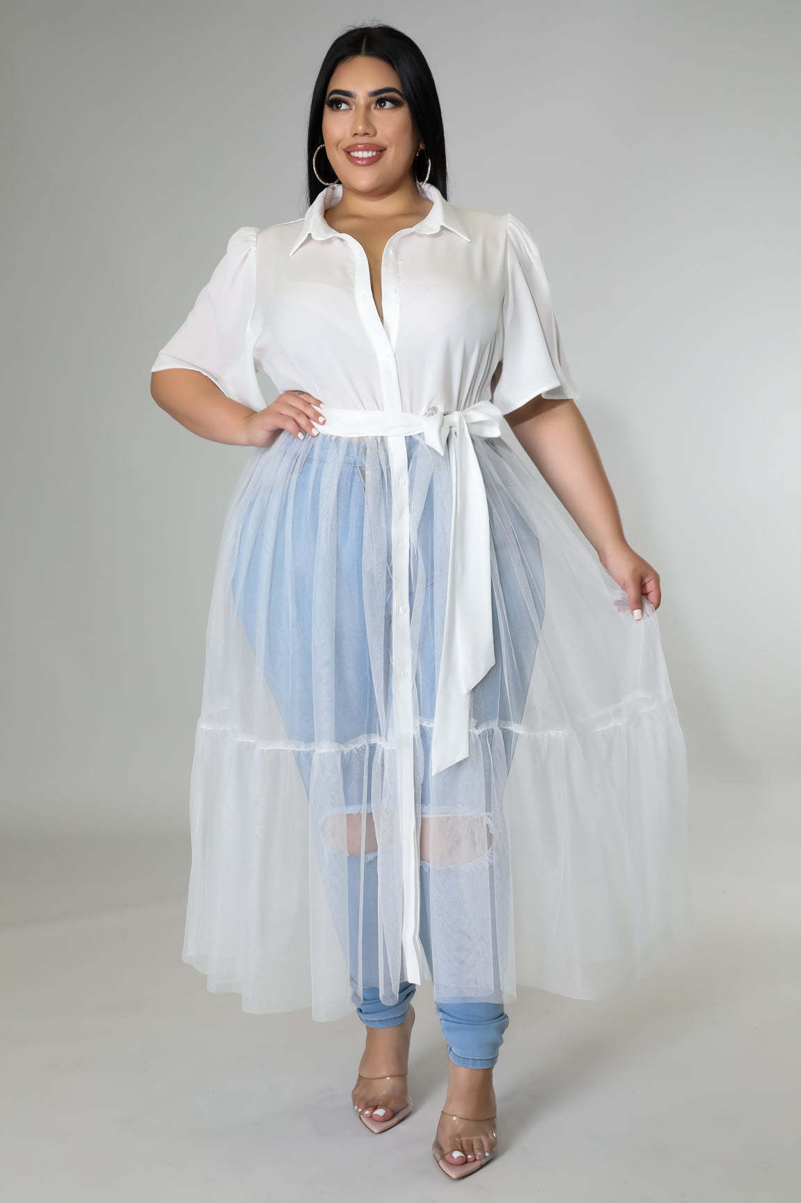 QJ5298 유럽과 미국의 국경 간 뚱뚱한 여성 플러스 사이즈 여성 쉬폰 메쉬 주름 탑 캐주얼 원피스스토어 가기