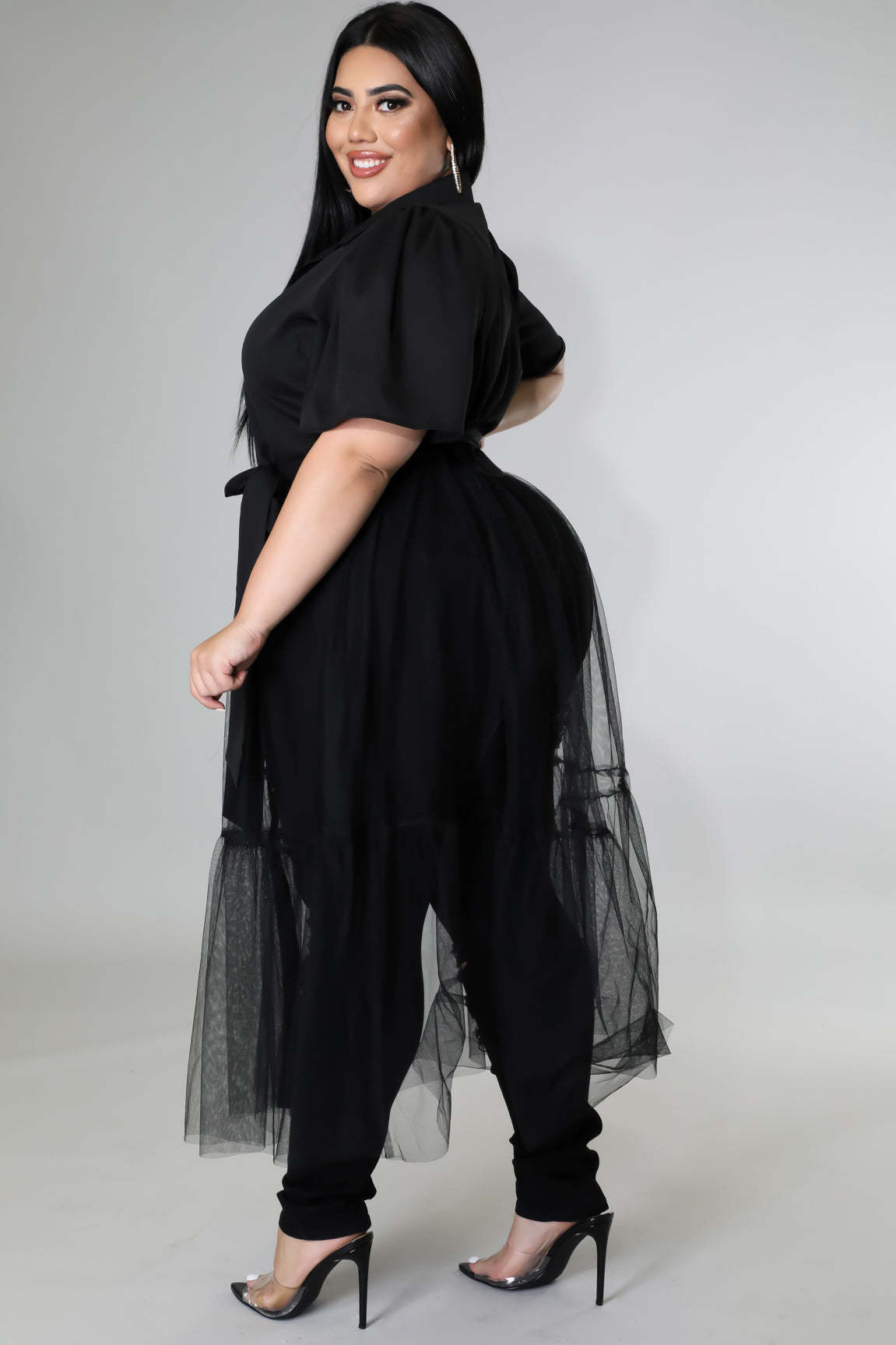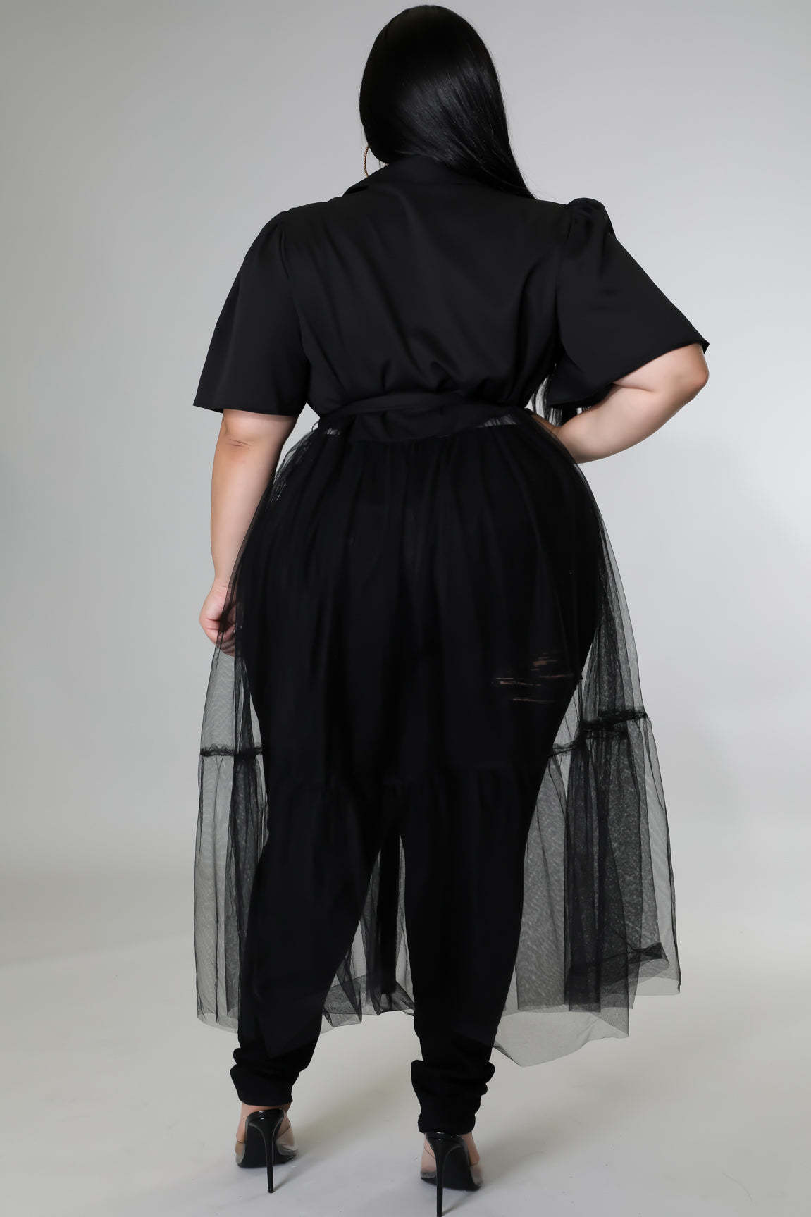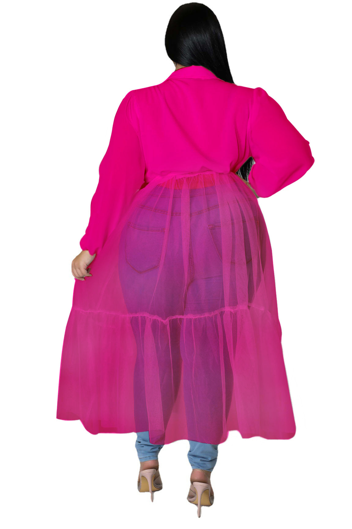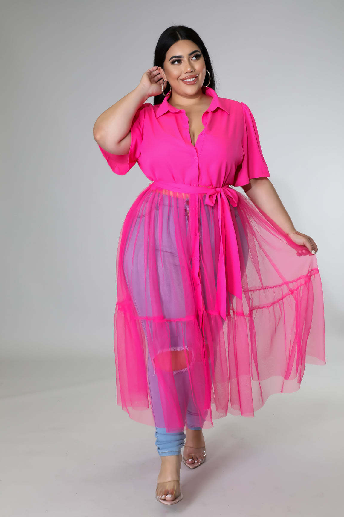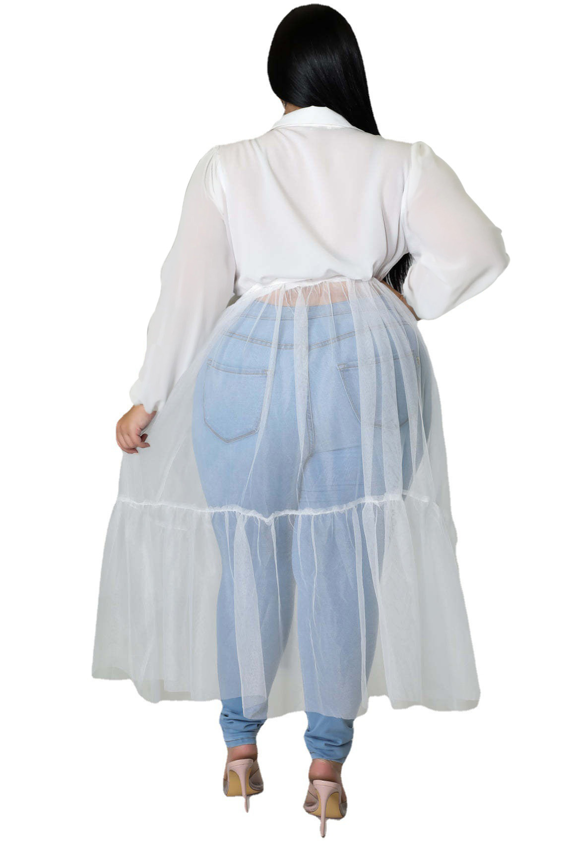 QJ5298 유럽과 미국의 국경 간 뚱뚱한 여성 플러스 사이즈 여성 쉬폰 메쉬 주름 탑 캐주얼 원피스
