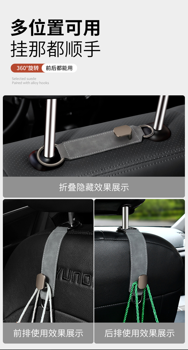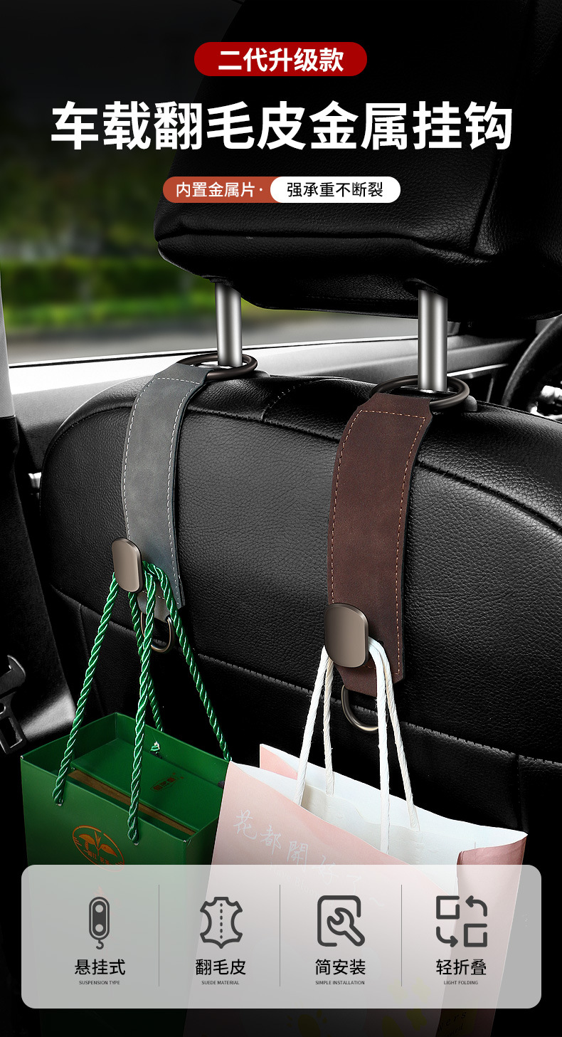 자동차 시트 백 후크 전면 및 후면 스웨이드 금속 보관 후크 저장 작은 후크 숨겨진 자동차 걸이