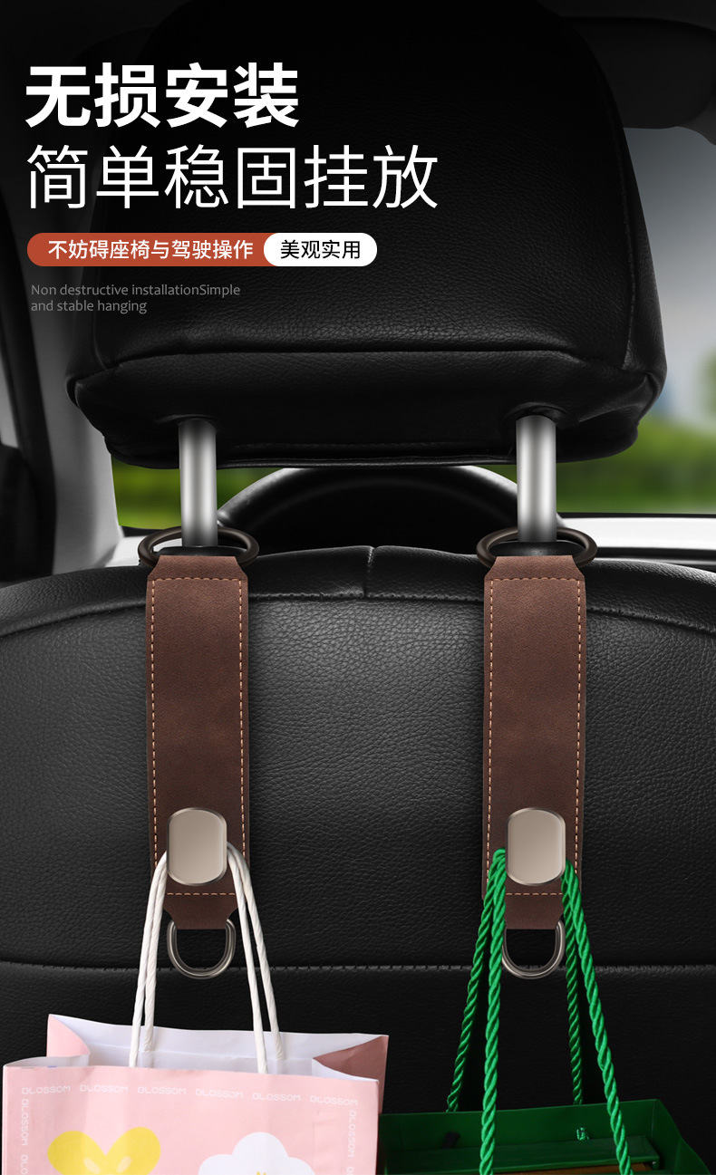 자동차 시트 백 후크 전면 및 후면 스웨이드 금속 보관 후크 저장 작은 후크 숨겨진 자동차 걸이스토어 가기