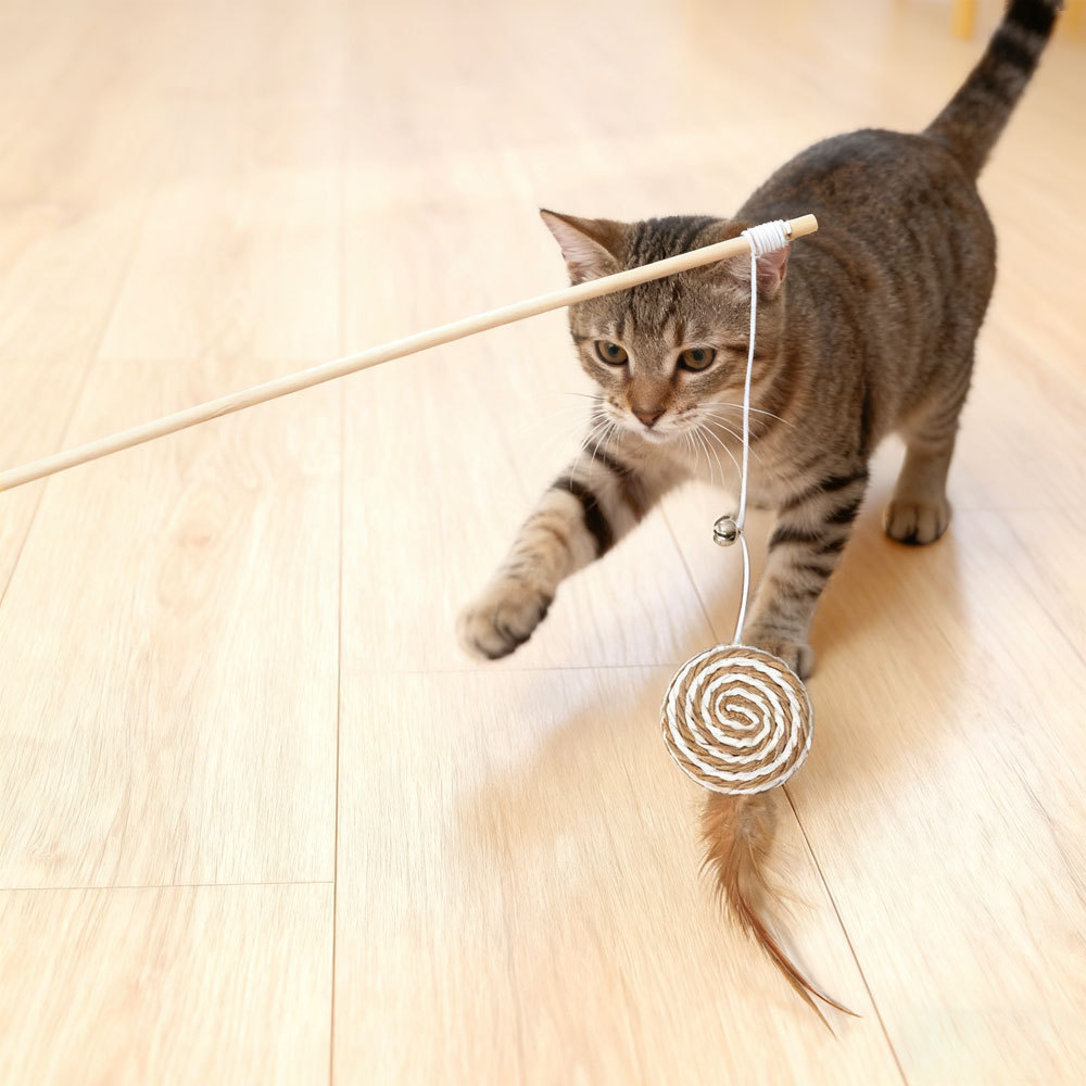 고양이 장난감 통나무 손잡이 고양이 꼬리 밧줄면과 대마 깃털 벨 대화 형 고양이 장난감 고양이 장난감스토어 가기