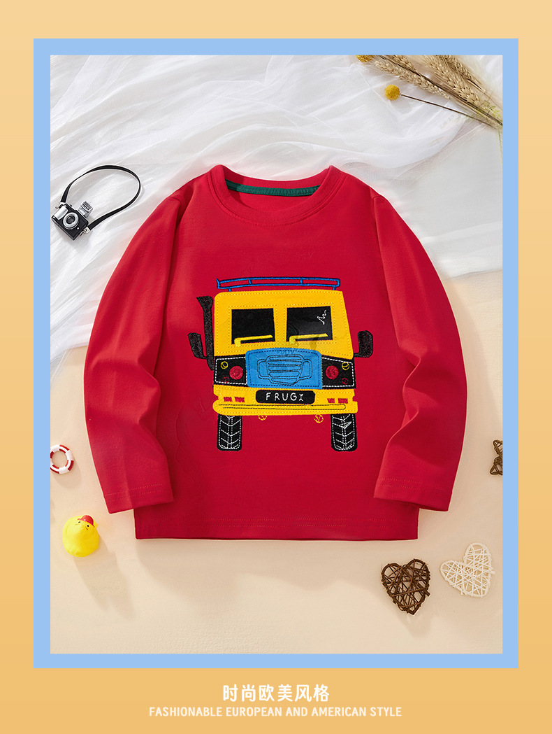 2025년 신상 만화풍 유럽풍 긴팔 면 티셔츠 아동복 남아용 중소형 아동 긴팔 티셔츠 어린이 상의스토어 가기