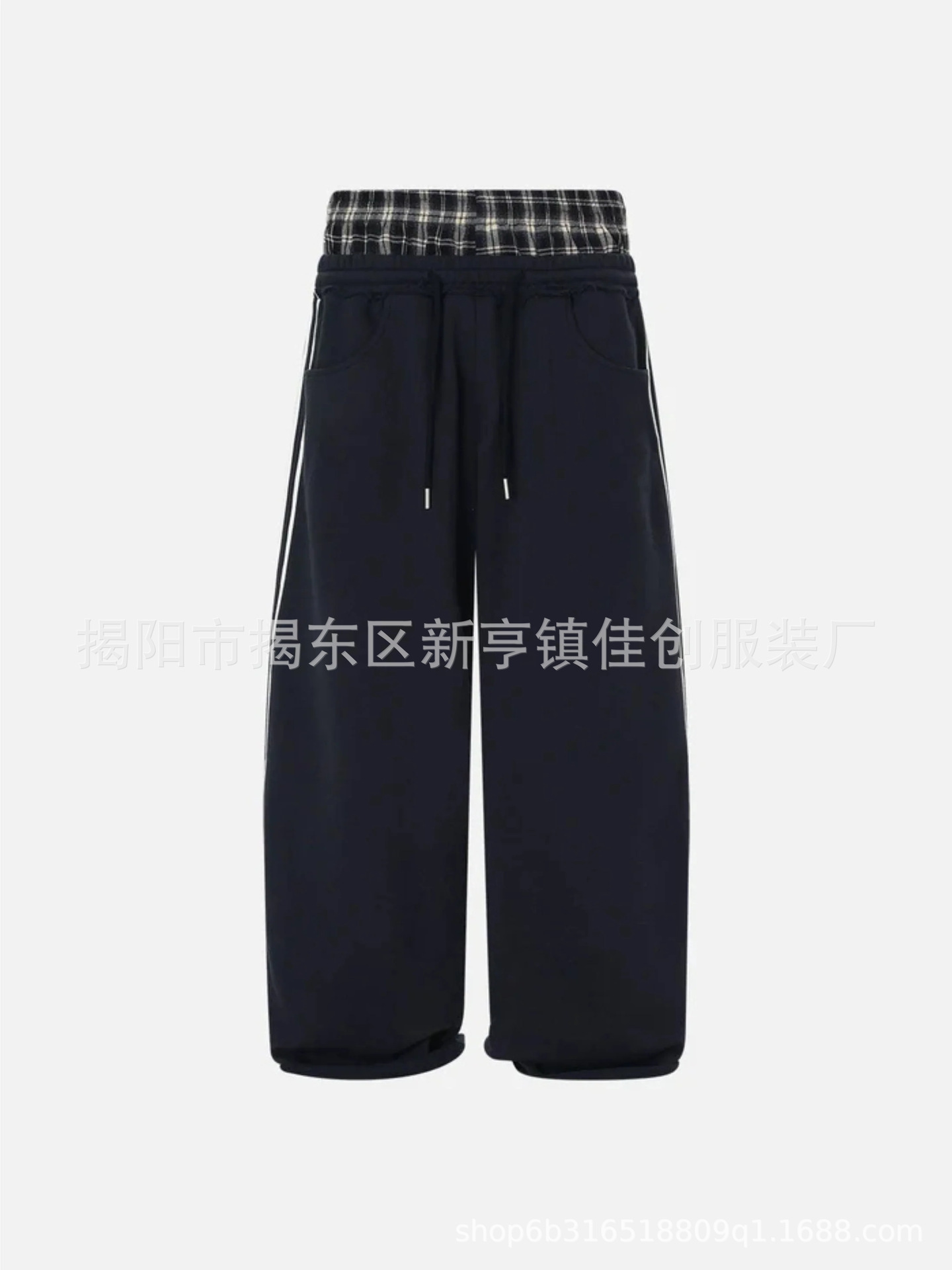 국경 공장 직접 2024 여름 새로운 미국 복고풍 더블 허리 스티칭 디자인 감각 스포츠 캐주얼 바지 조수스토어 가기