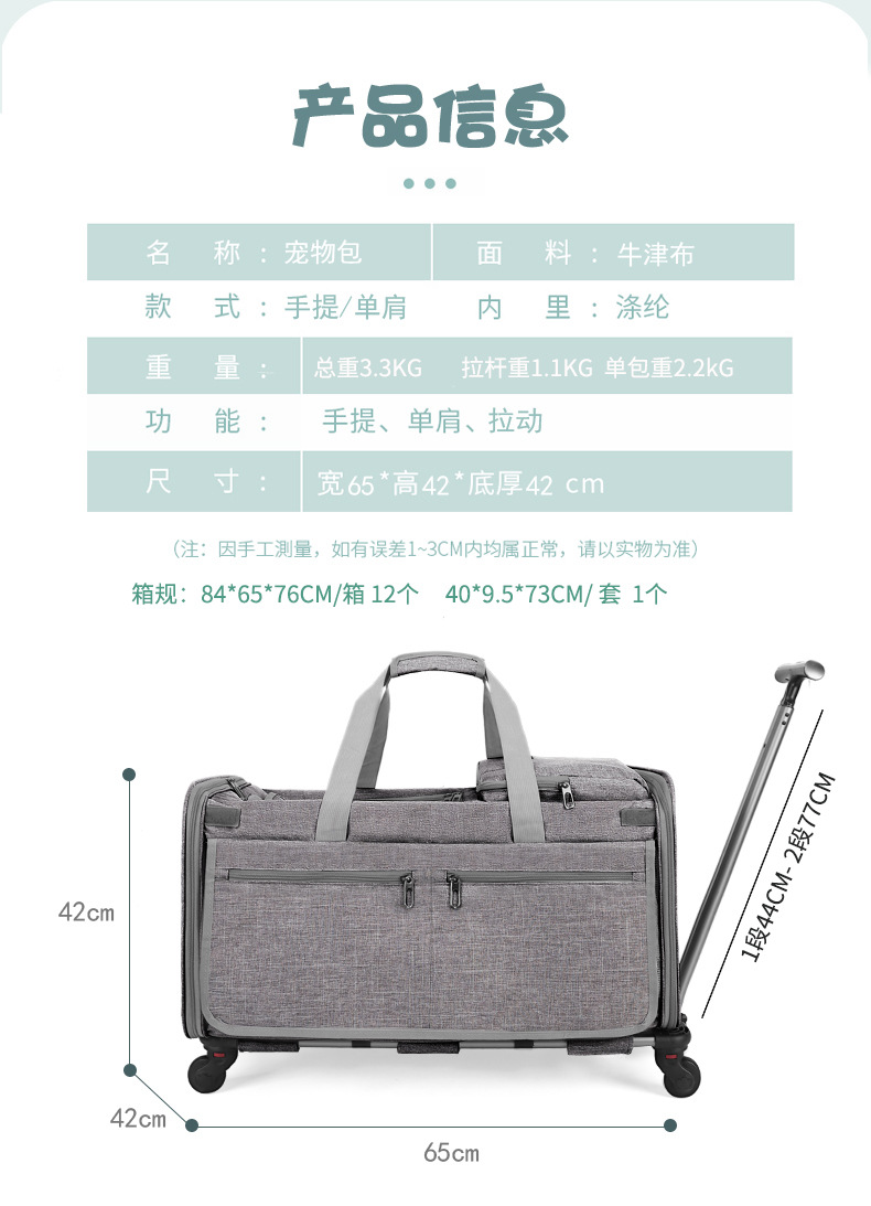 고양이 가방 나들이 휴대용 단일 어깨 트롤리 가방 대형 공간 통기성 접이식 분리형 다목적 애완 동물 가방스토어 가기