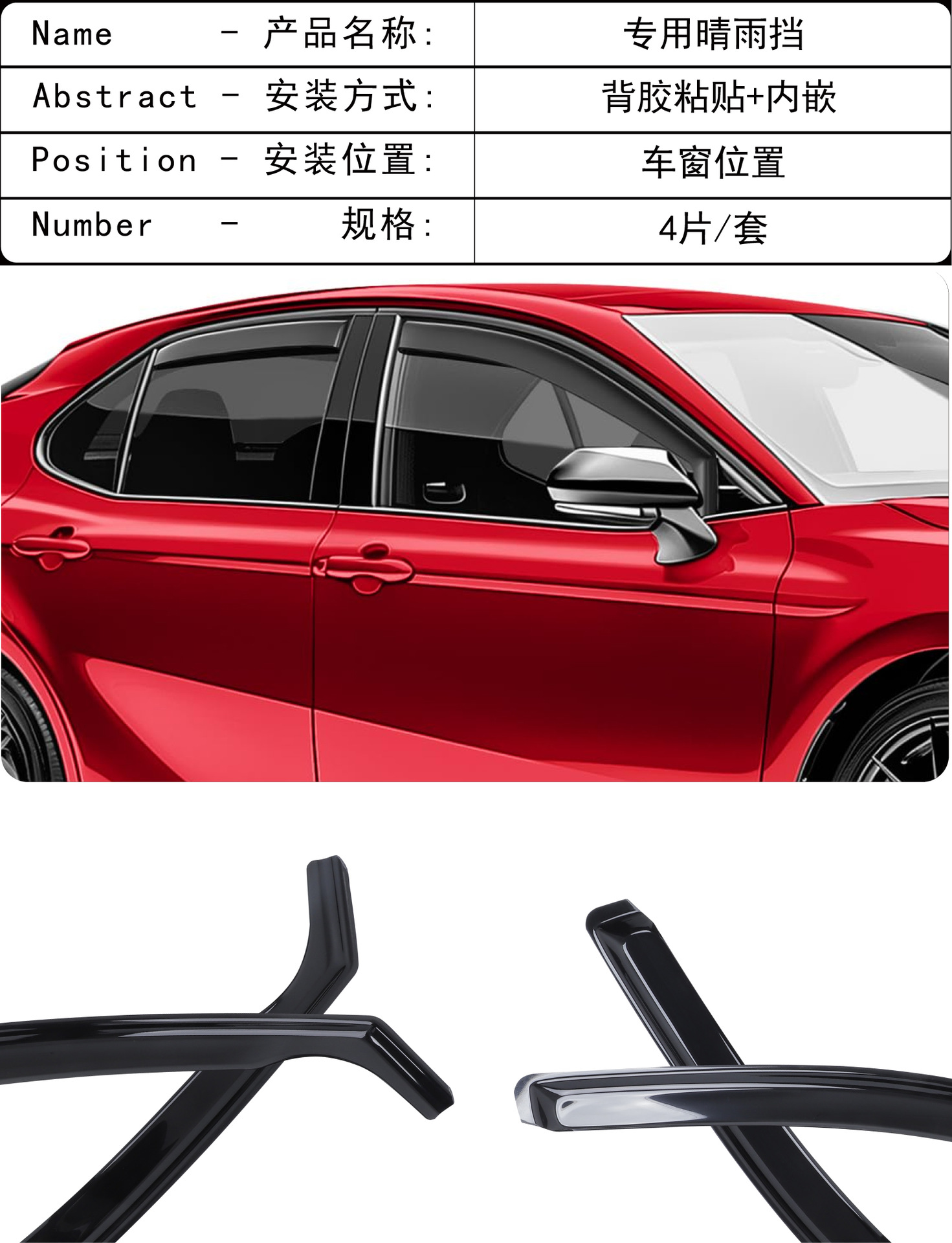 대외 무역용 신형 토요타 캠리 차량용 블랙 내장형 자동차 윈도우 레인 가드(비가림막)스토어 가기