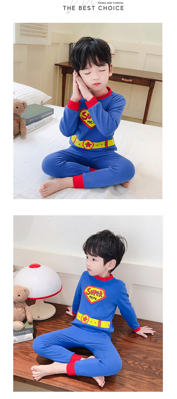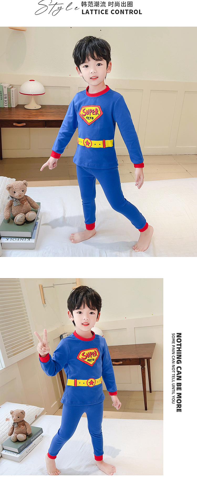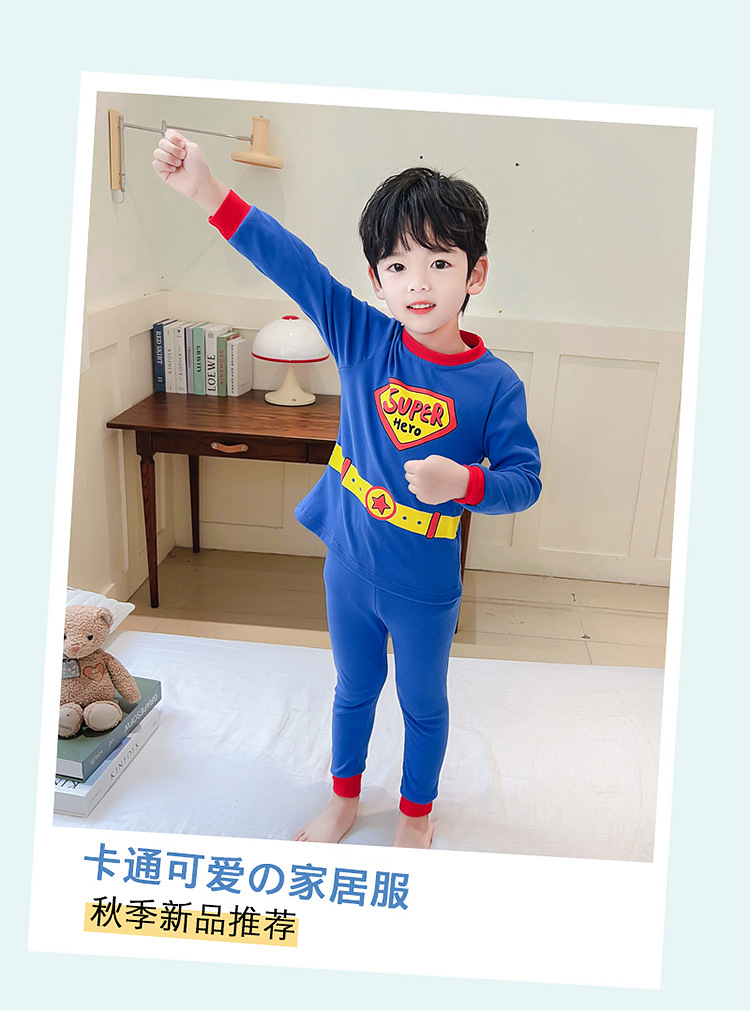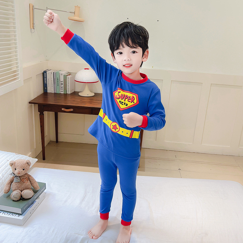 새로운 어린이 귀여운 잠옷 슈퍼맨 세트 소년 드 롱 홈 옷 패션 2 피스 세트 맞춤형 소년 트렌디스토어 가기