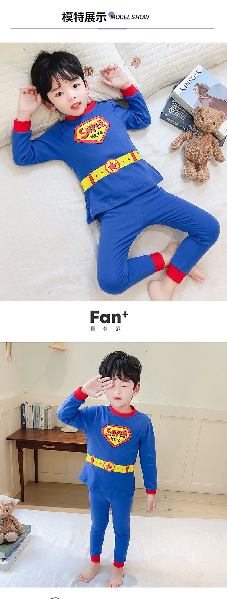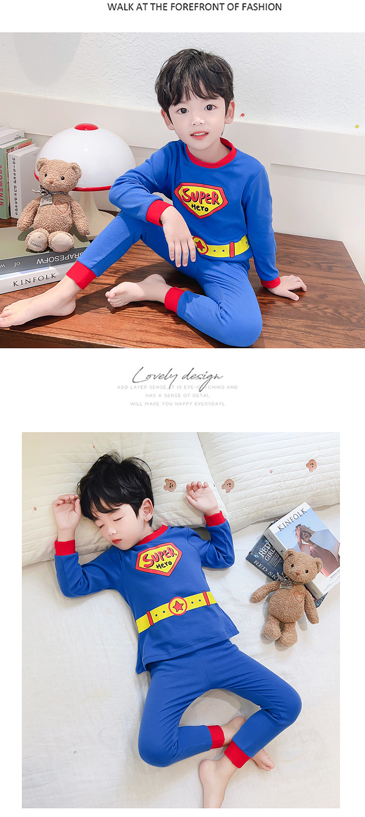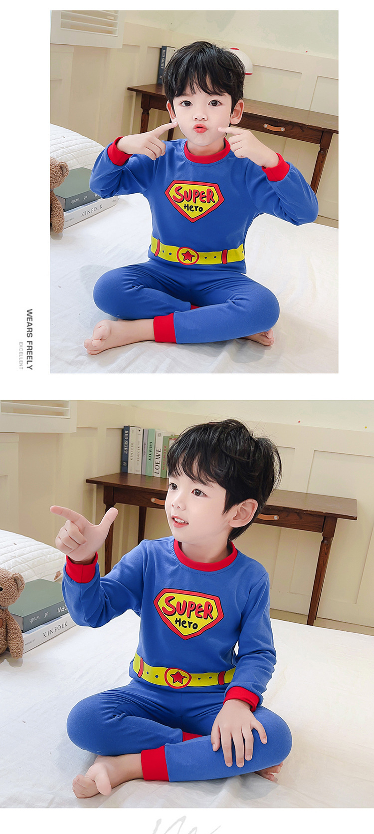새로운 어린이 귀여운 잠옷 슈퍼맨 세트 소년 드 롱 홈 옷 패션 2 피스 세트 맞춤형 소년 트렌디스토어 가기