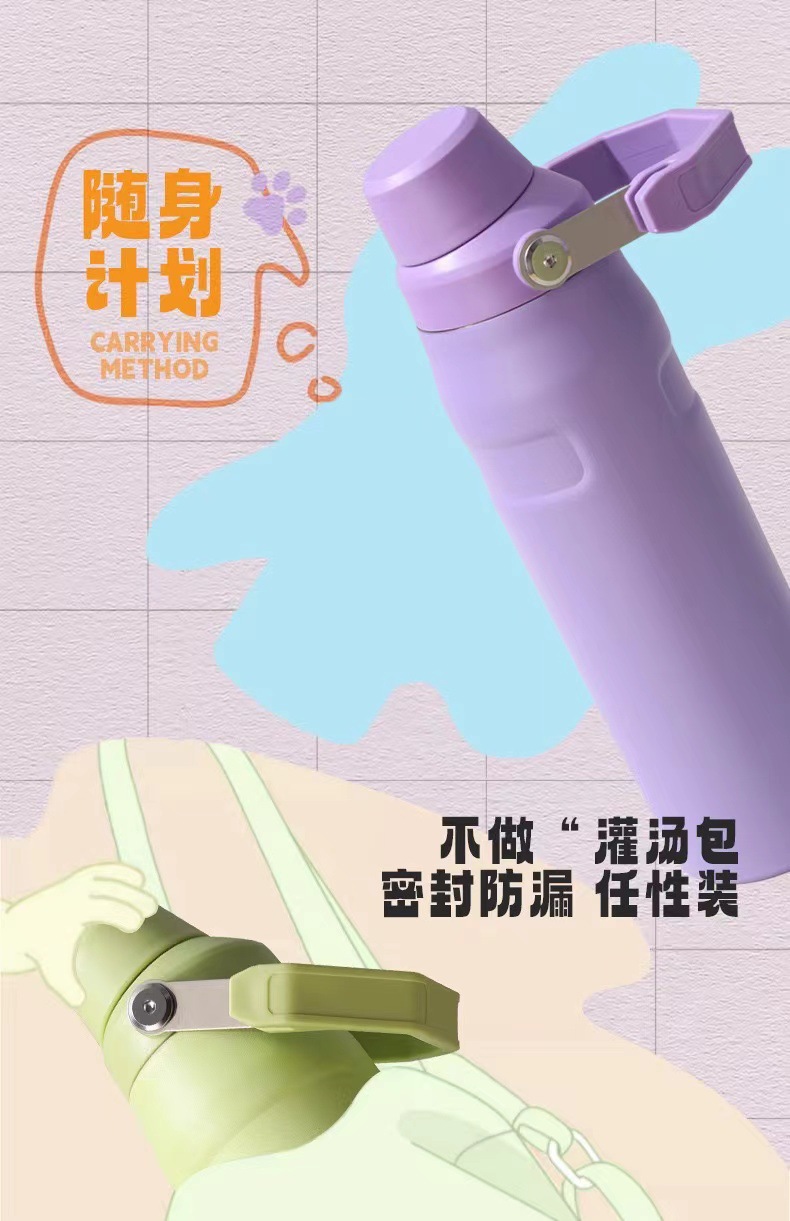 국경 304 스테인레스 스틸 비뚤어진 입 손잡이 스포츠 주전자 야외 휴대용 자동차 등산 여행 주전자 열 냄비