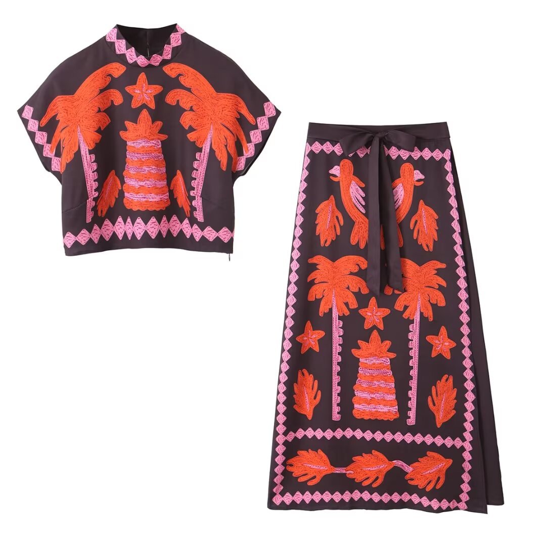 2026년 해외 무역 유럽 및 미국 여성복 신상품 반팔 포지셔닝 프린트 세트 5189