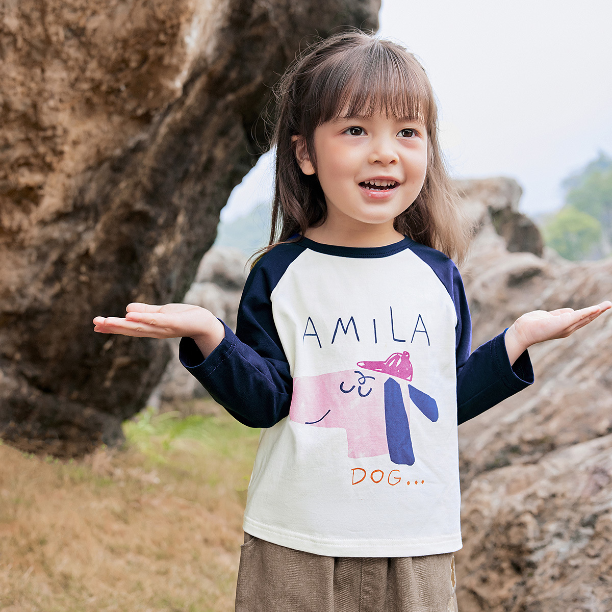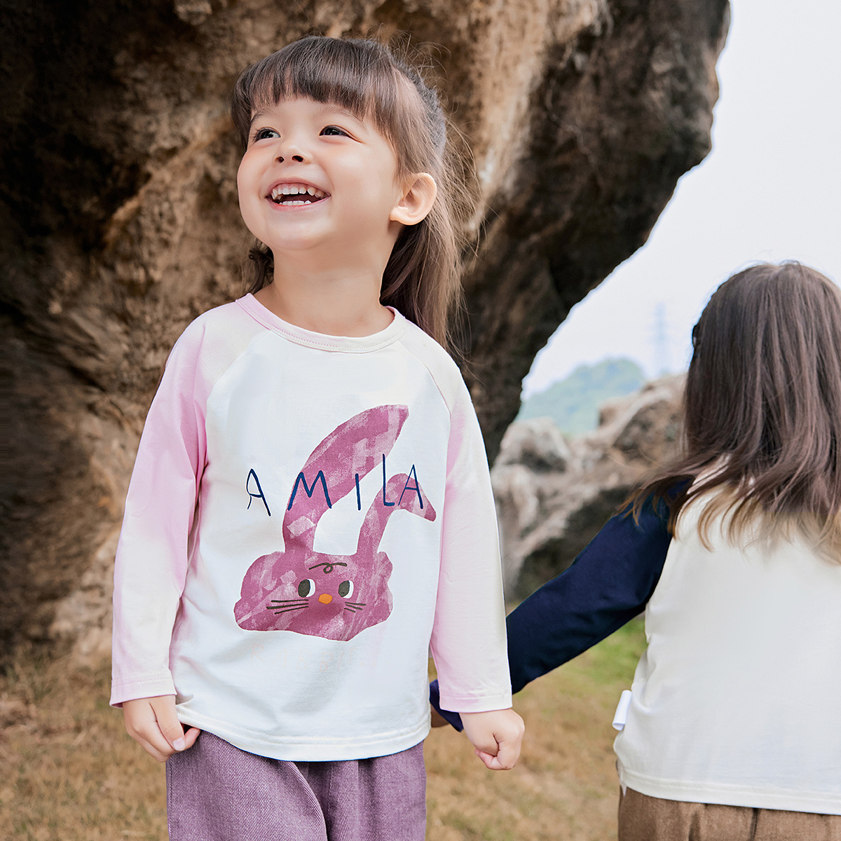 어린이 만화 티셔츠 Tongbei 아동복 2026년 봄 신상 남아 여아 라운드넥 캐주얼 배색 긴팔 상의스토어 가기