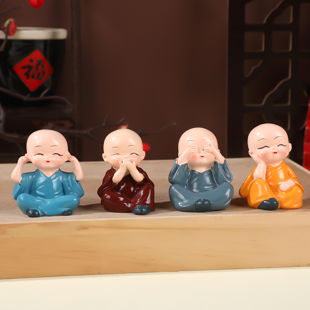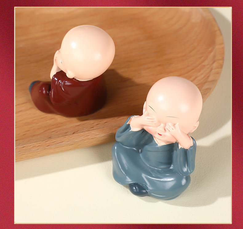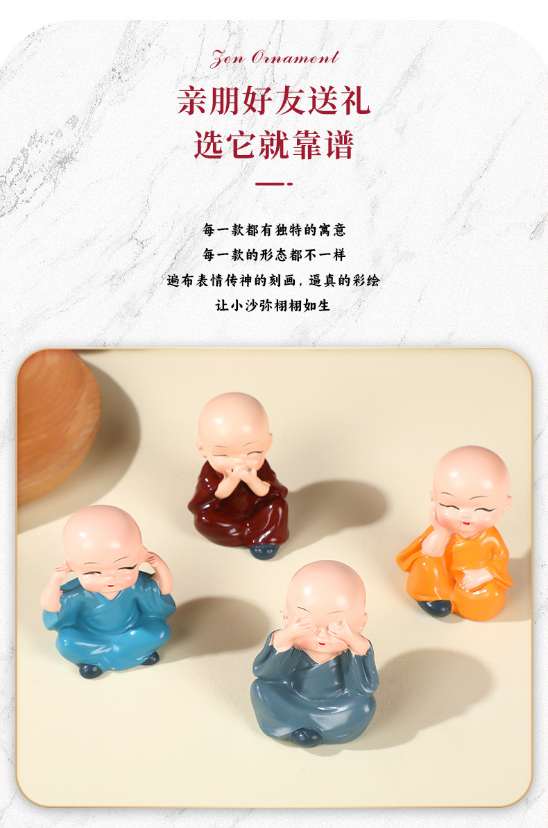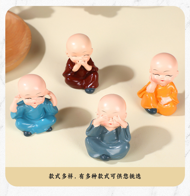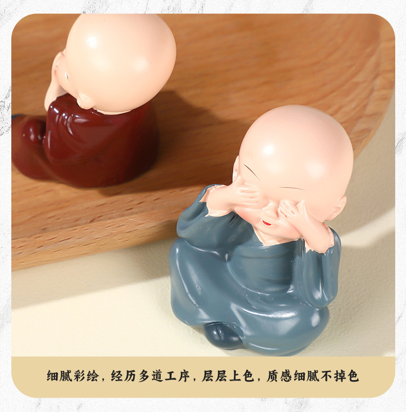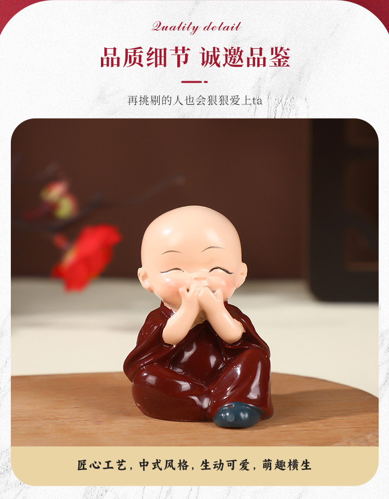 작은 스님 장식품 자동차 및 가정 장식 공예품 창의적인 선(禪) 스타일 액세서리 탁상용 차 테이블 장식품 차 수지
