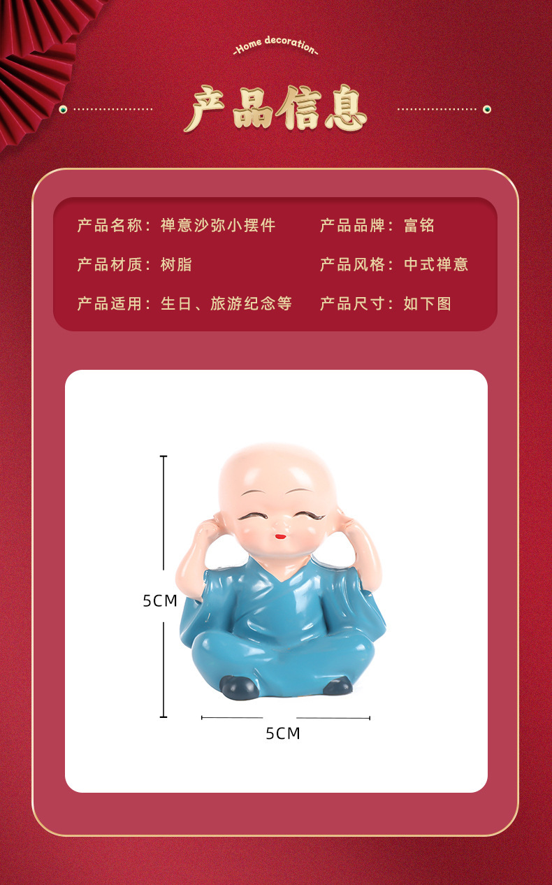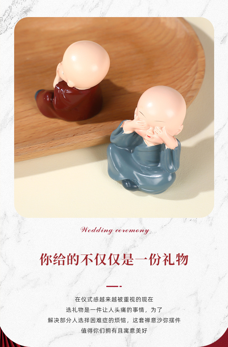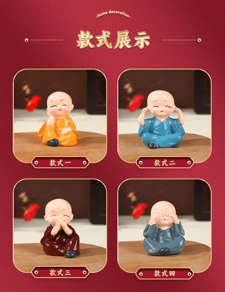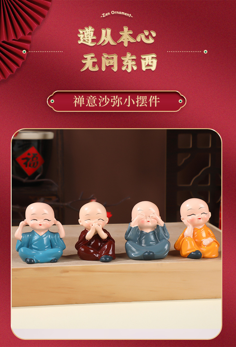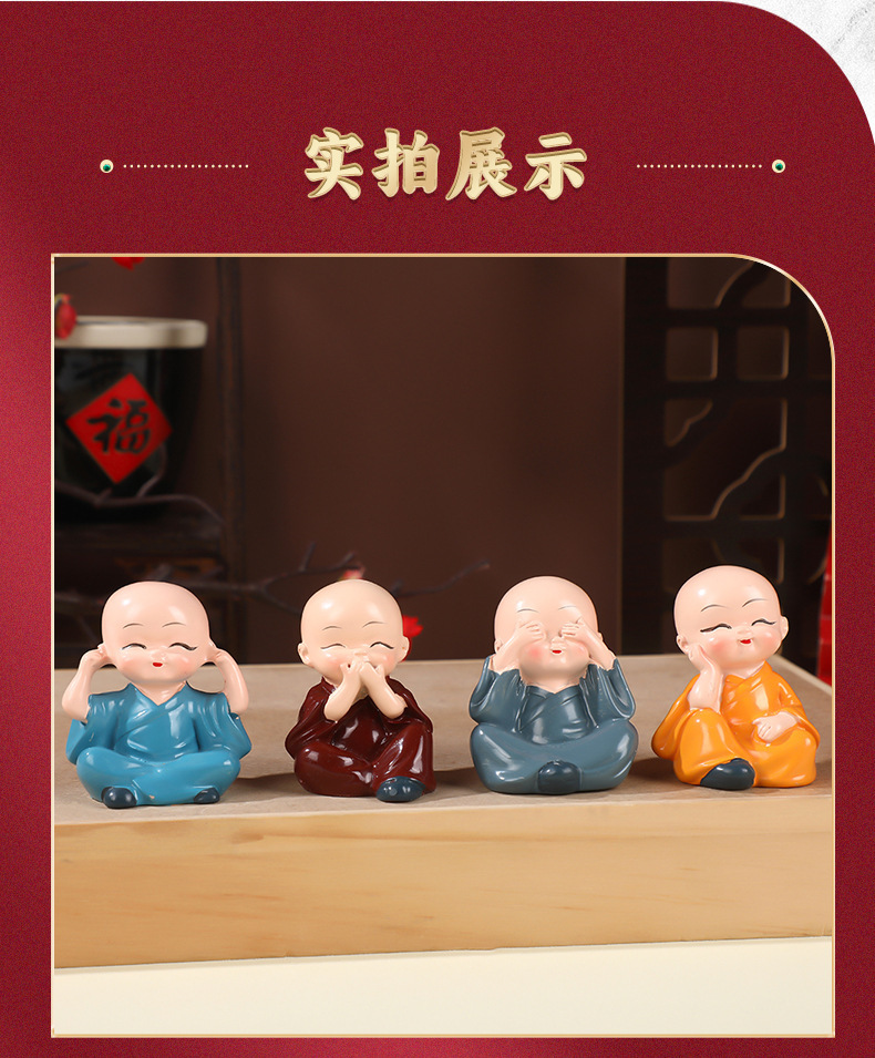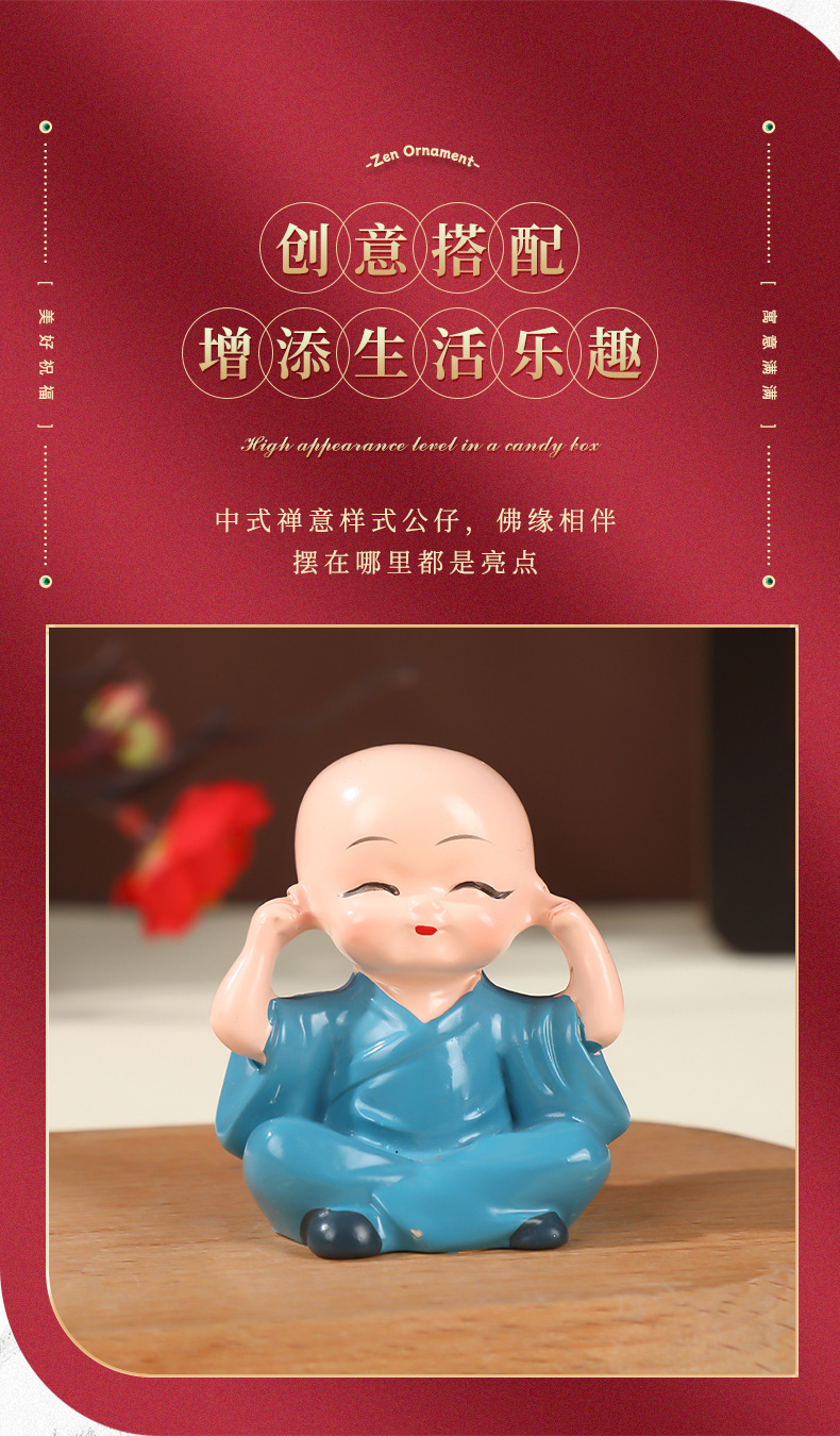 작은 스님 장식품 자동차 및 가정 장식 공예품 창의적인 선(禪) 스타일 액세서리 탁상용 차 테이블 장식품 차 수지