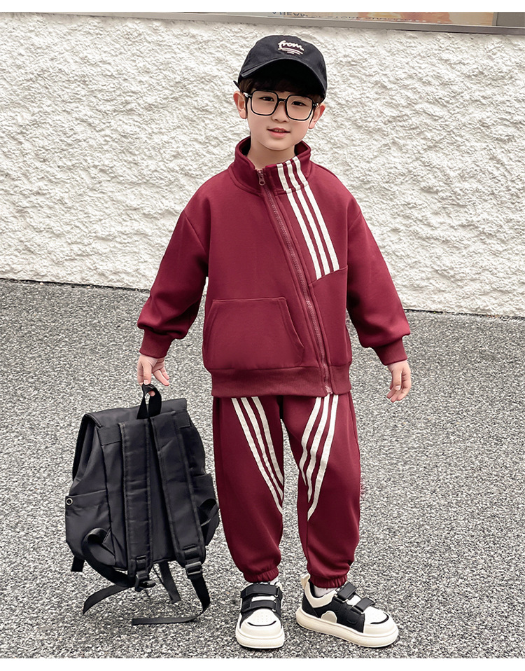 2024 년 봄과 가을 세트 소년 3 개 바 새로운 아이들의 잘 생긴 스포츠 대외 무역 아동복 멋지다