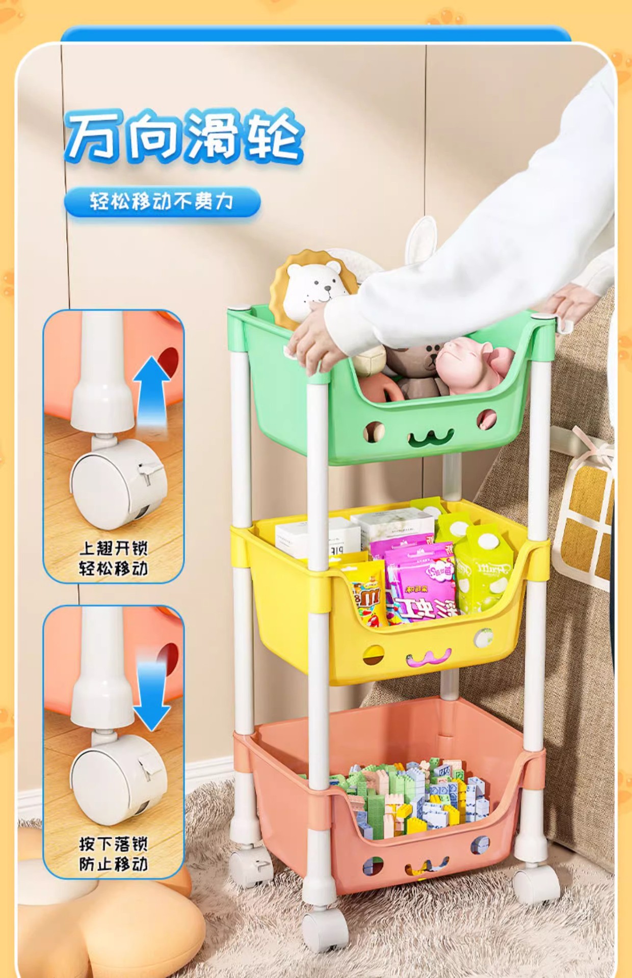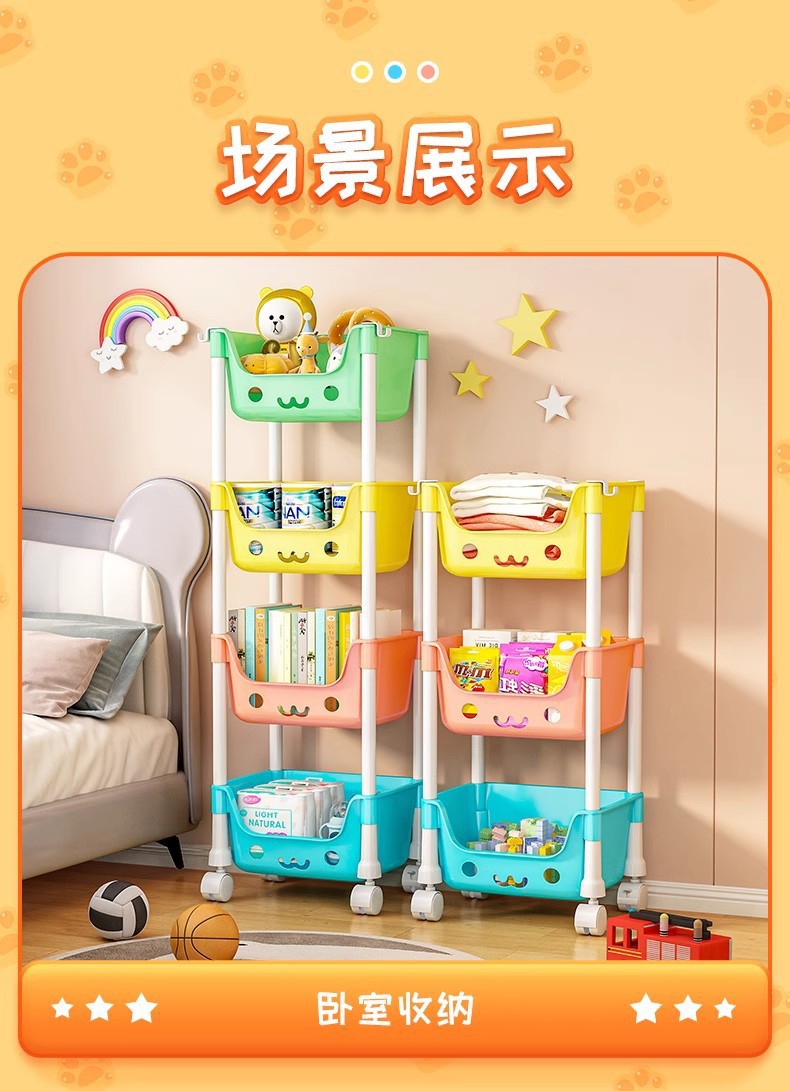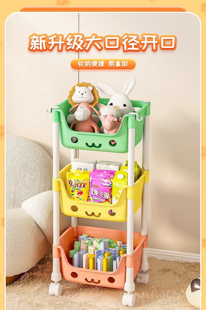 어린이 스낵 장난감 보관 랙 모바일 책꽂이 휠 스토리지 랙 가정용 다층 거실 주방 침실 마무리