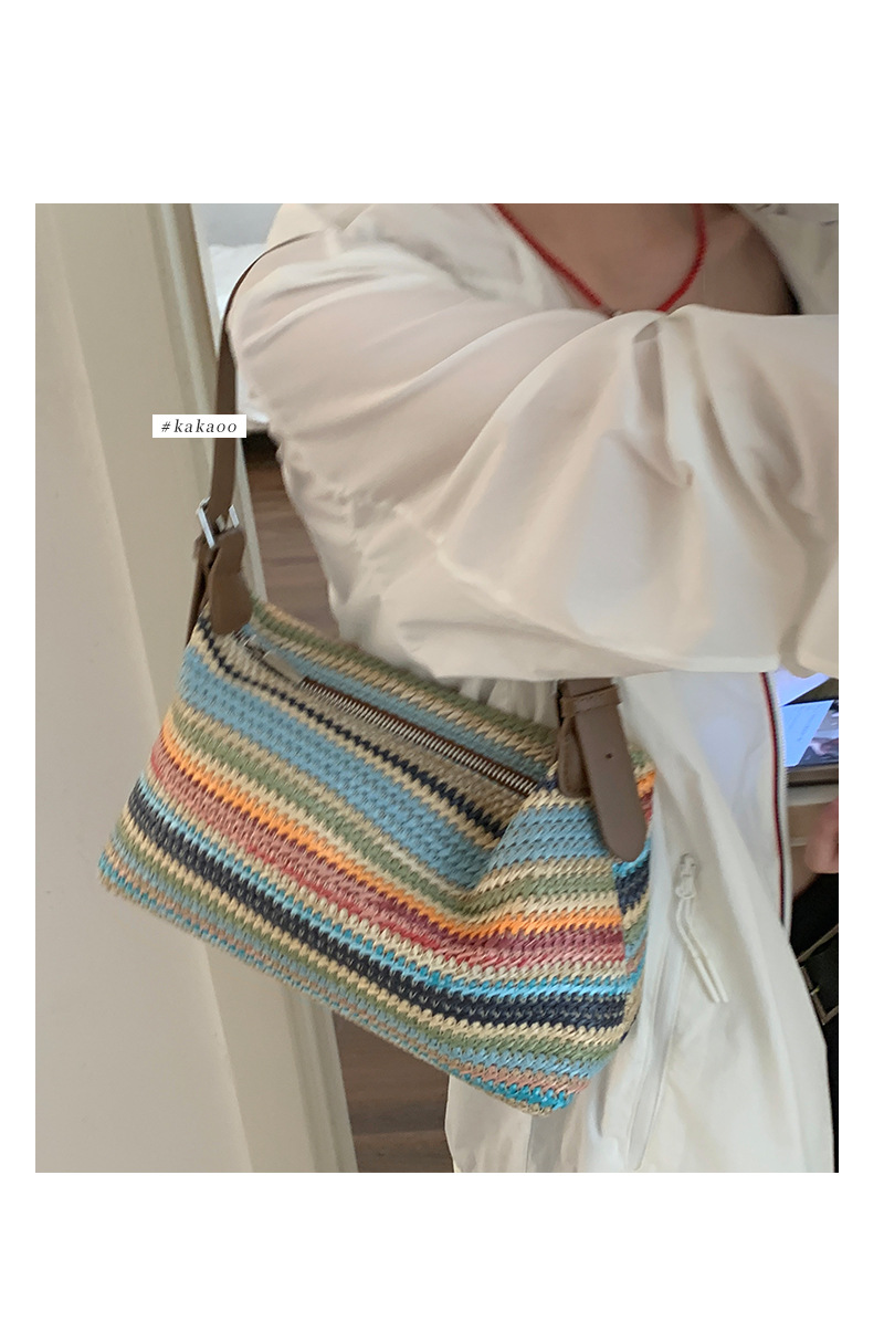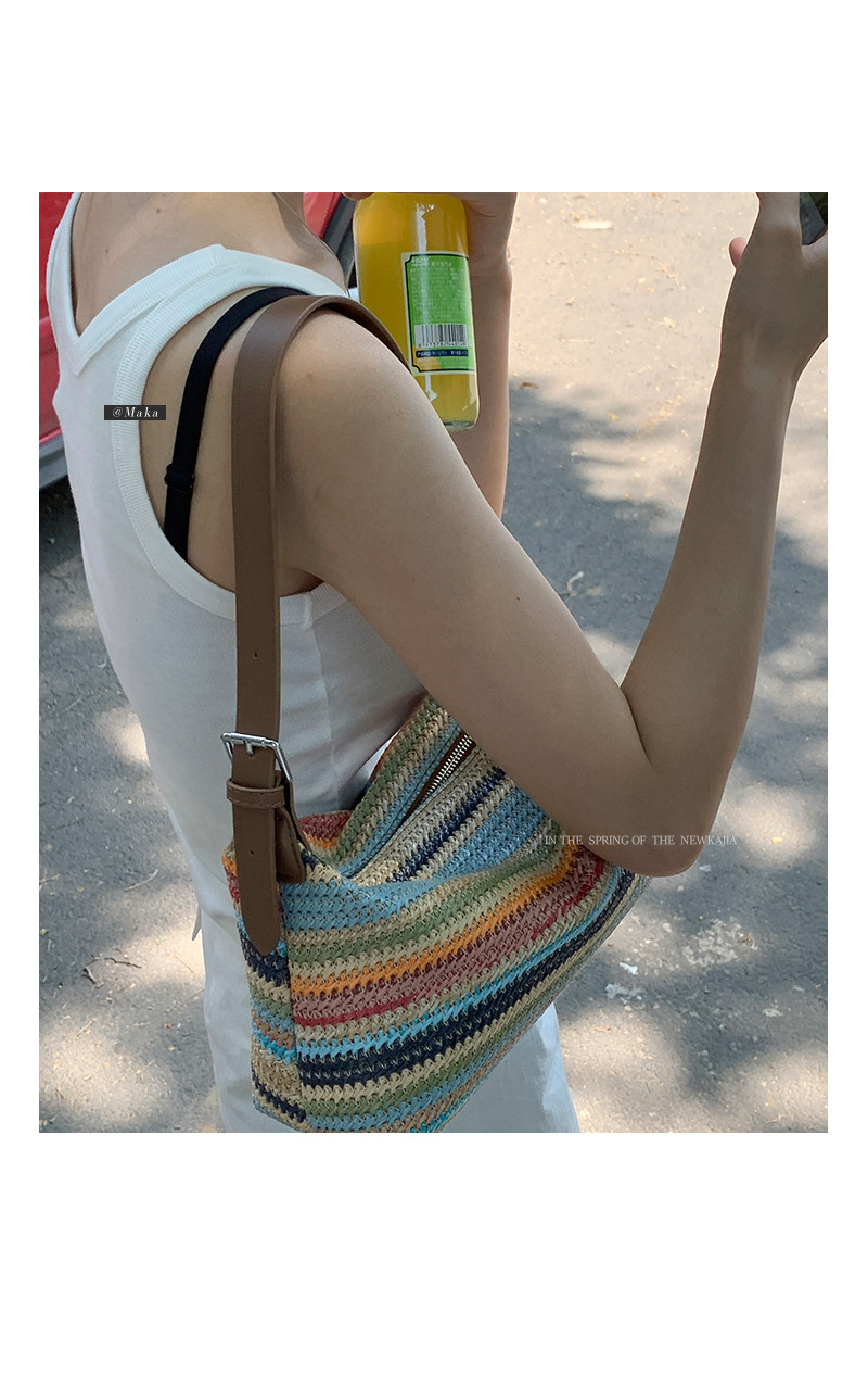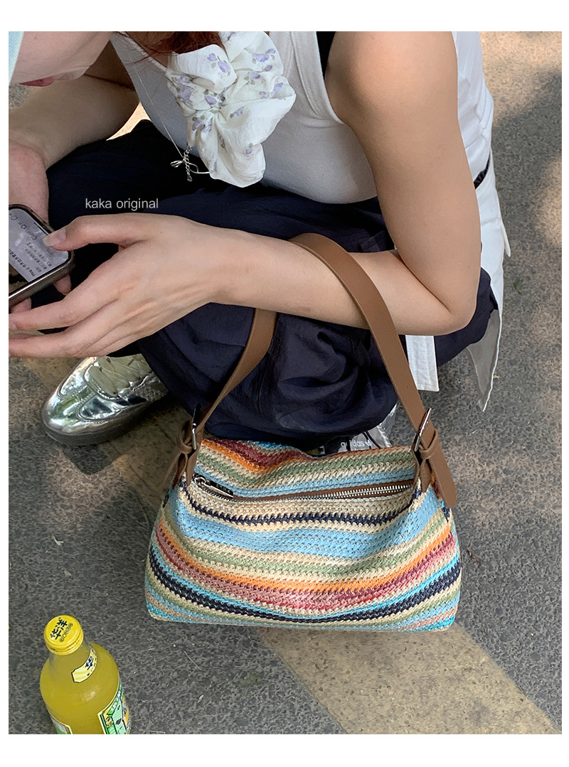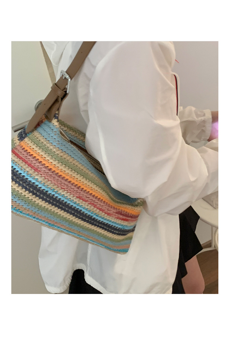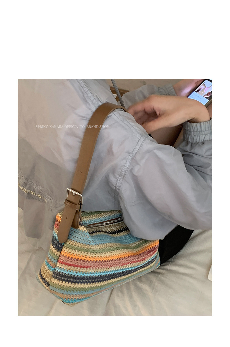밀짚 대용량 가방 2024 새로운 패션 캐주얼 비치 토트 통근 짠 모든 경기 어깨