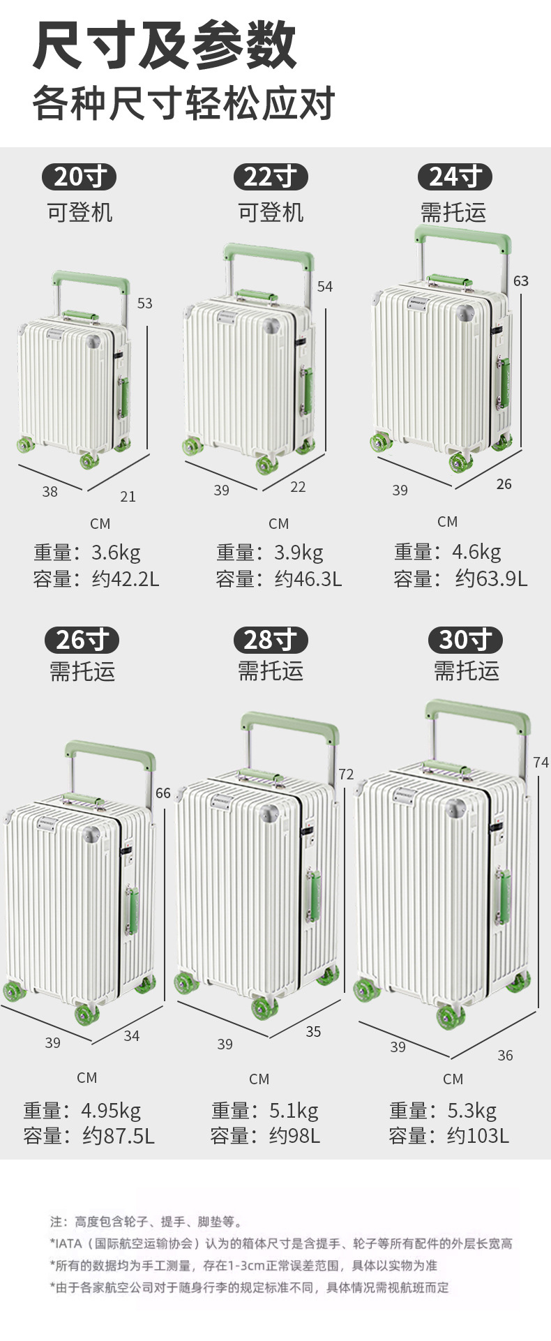 넓은 풀로드 수하물 케이스 대용량 28 인치 가방 20 인치 지퍼 수하물 케이스 사일런트 유니버설 휠스토어 가기
