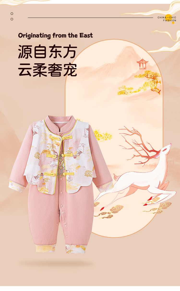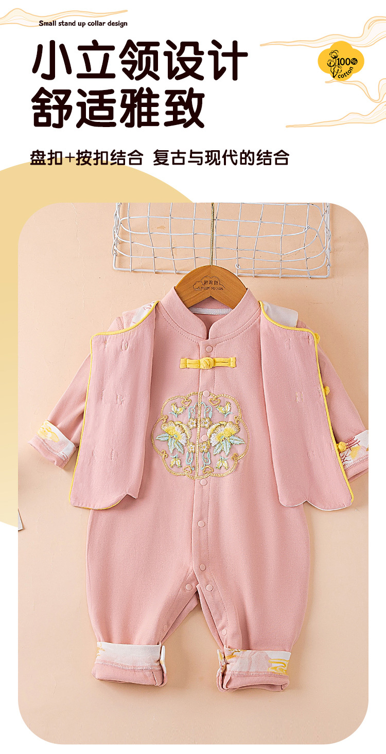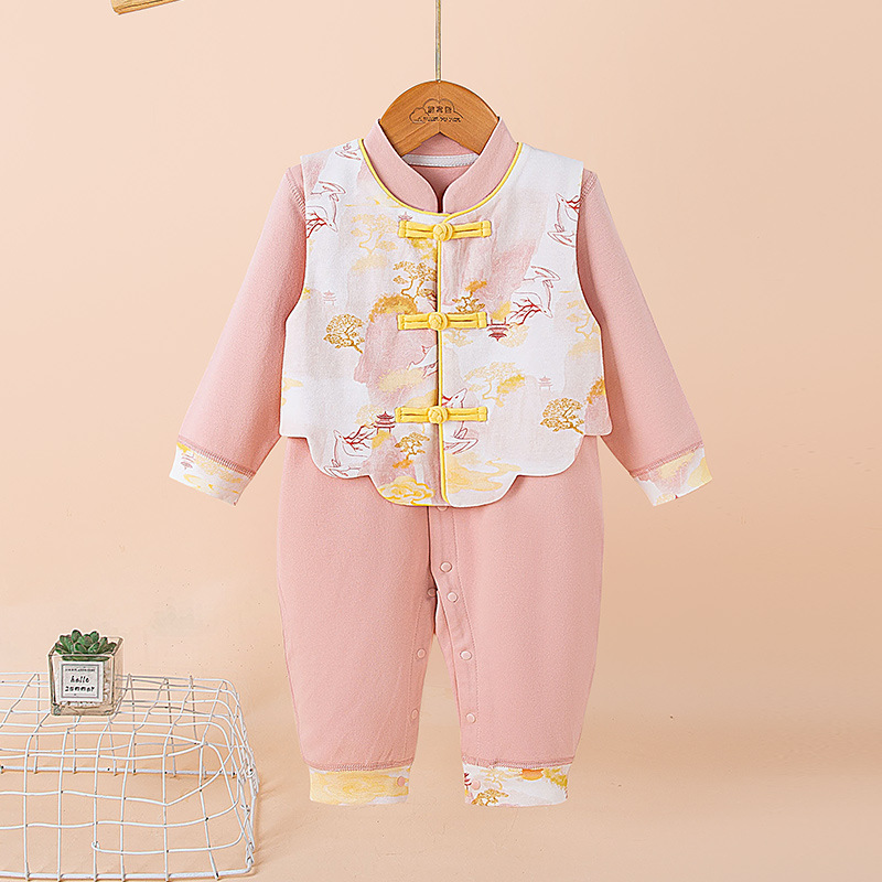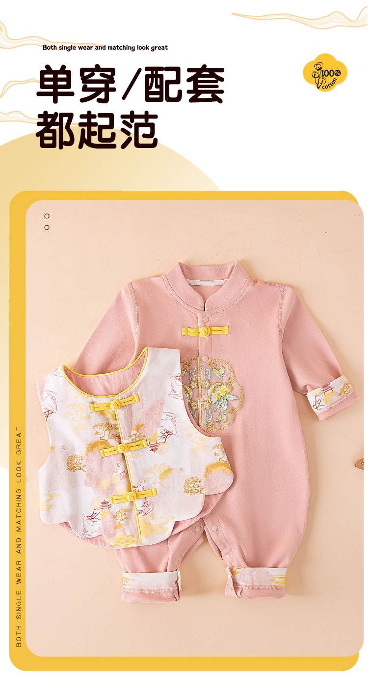 아기 조끼 봄과 가을 신생아 중국 스타일 창고 코튼 아기의 몸 옷 중국 스타일 소녀 조끼 세트