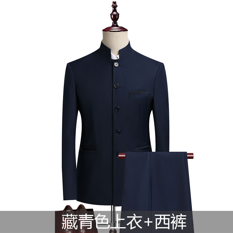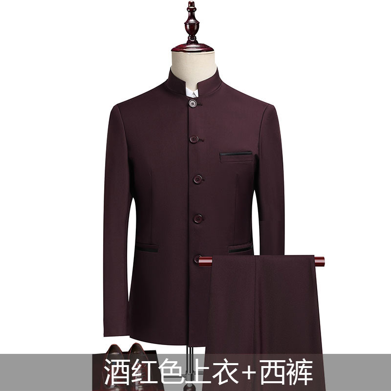 남성 정장 스타일의 슬림핏 중산복 무대 공연 의상, 남성 청년 의상 투피스 무대 공연복