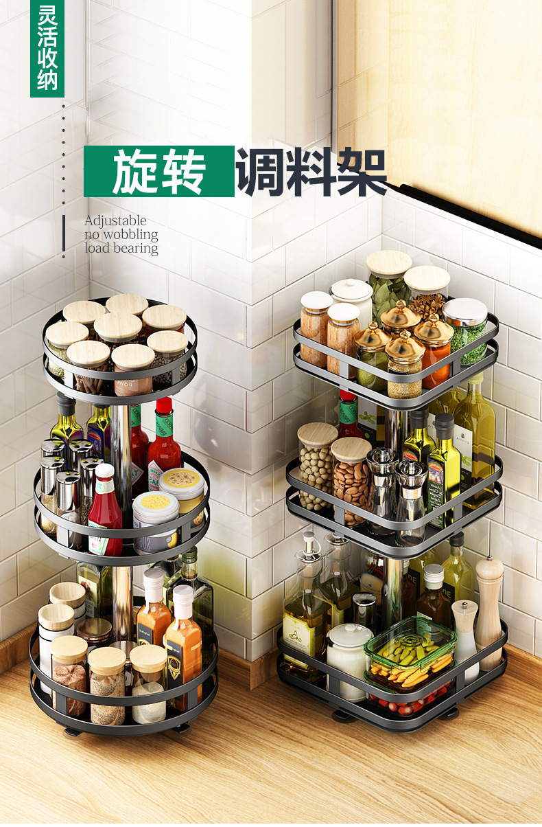 주방 360 회전 라운드 조미료 오일 소금 소스 식초 저장 랙 다기능 가정용 이동식 보관 선반스토어 가기