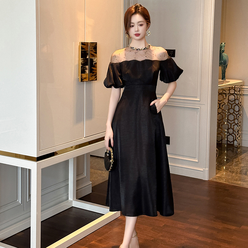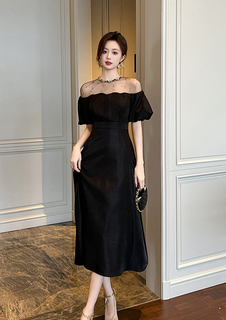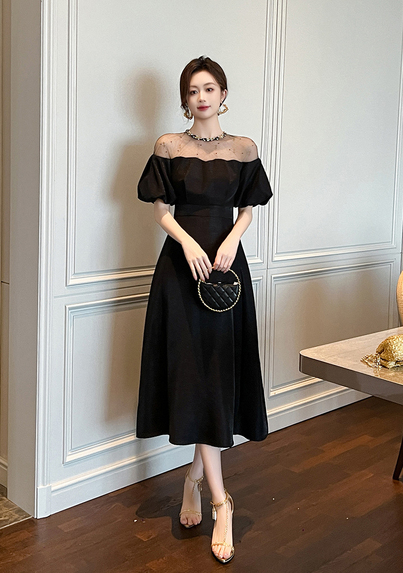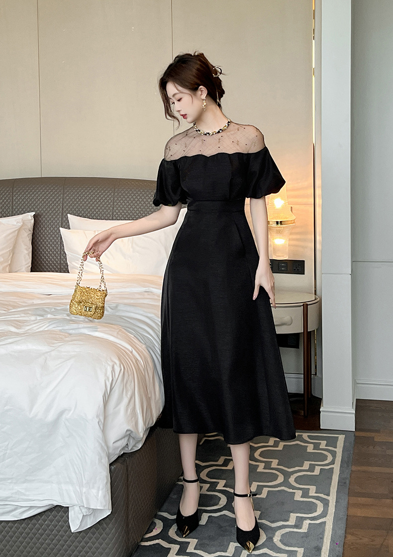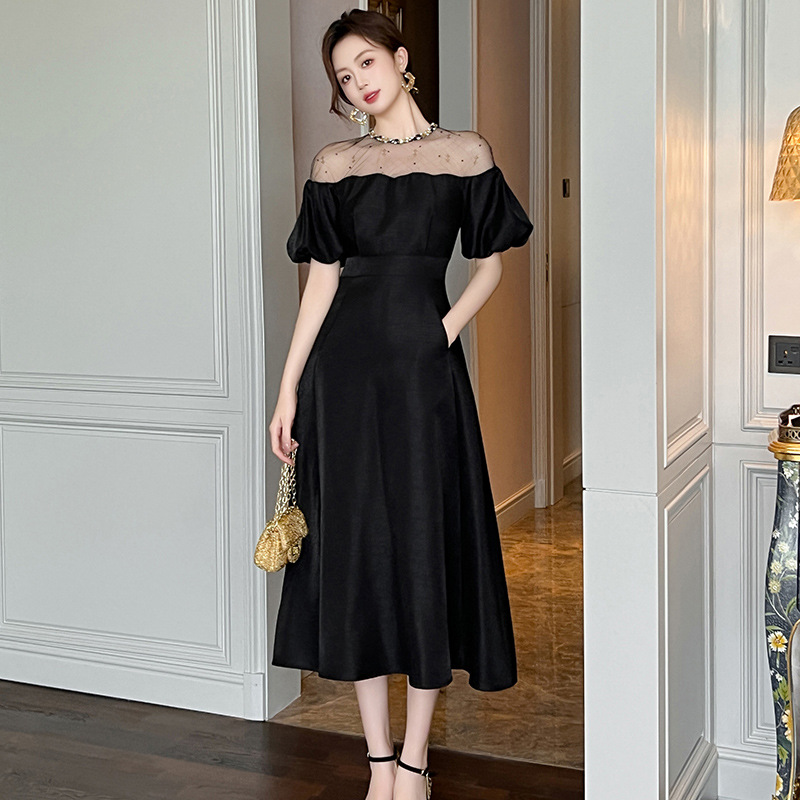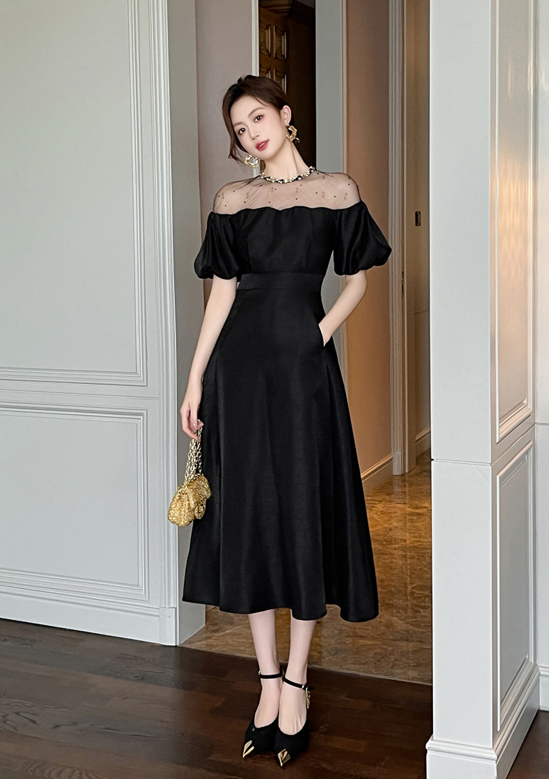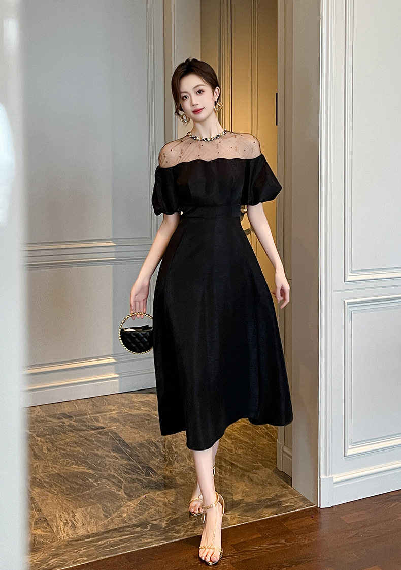 햅번 스타일 롱 드레스 2026 여름 신상 여성복 사교계 여성 허리라인 강조 블랙 드레스 21348