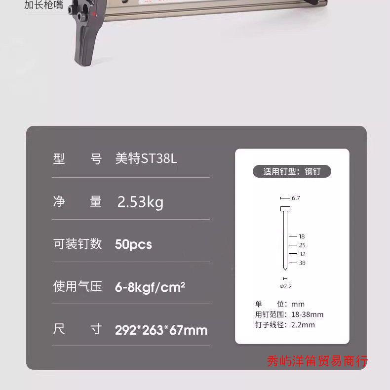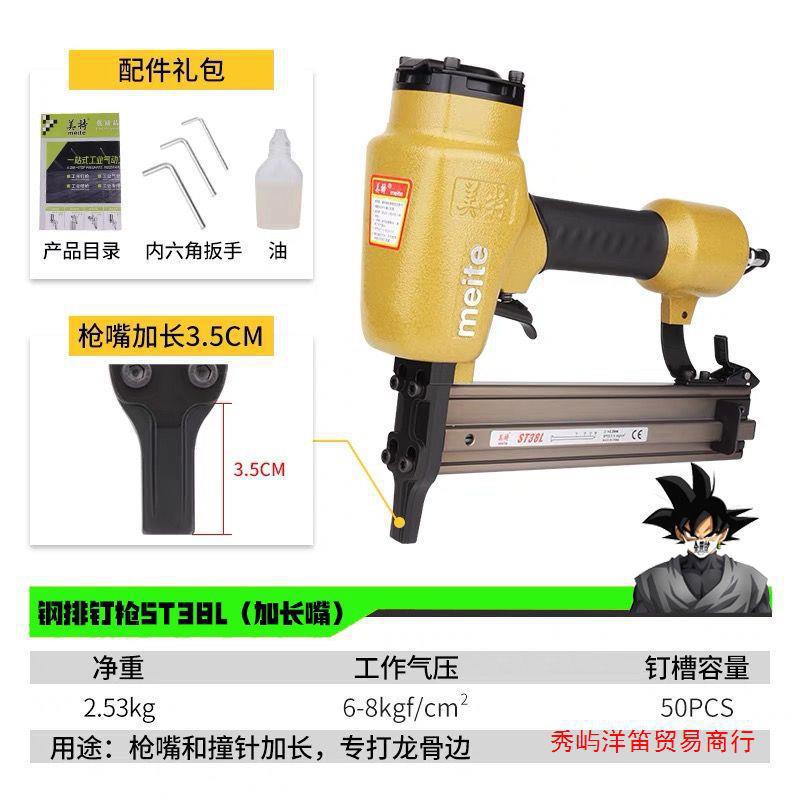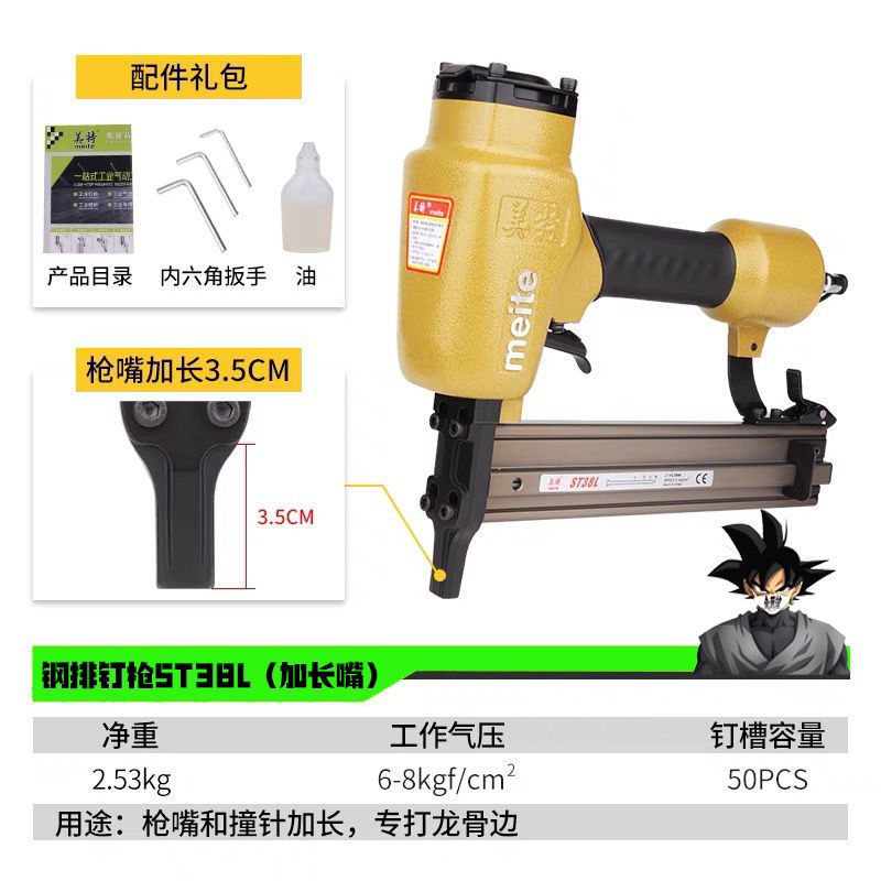 Meite ST38L 긴 입 강철 못 총 목공 장식 줄 네일 건 물 전기 기술자가 가장자리 용골 고정 공기 못 총스토어 가기