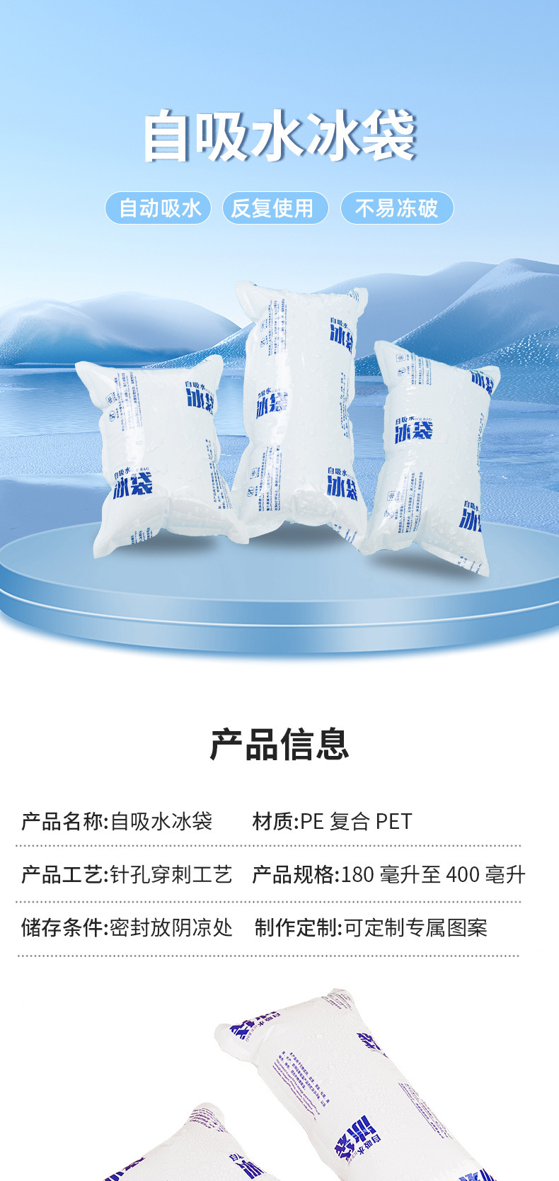 자가흡수형 아이스팩 신선도 유지 무급수 아이스팩 익스프레스 신선식품 냉장 콜드체인 운송 항공 도매 자가흡수형 얼음