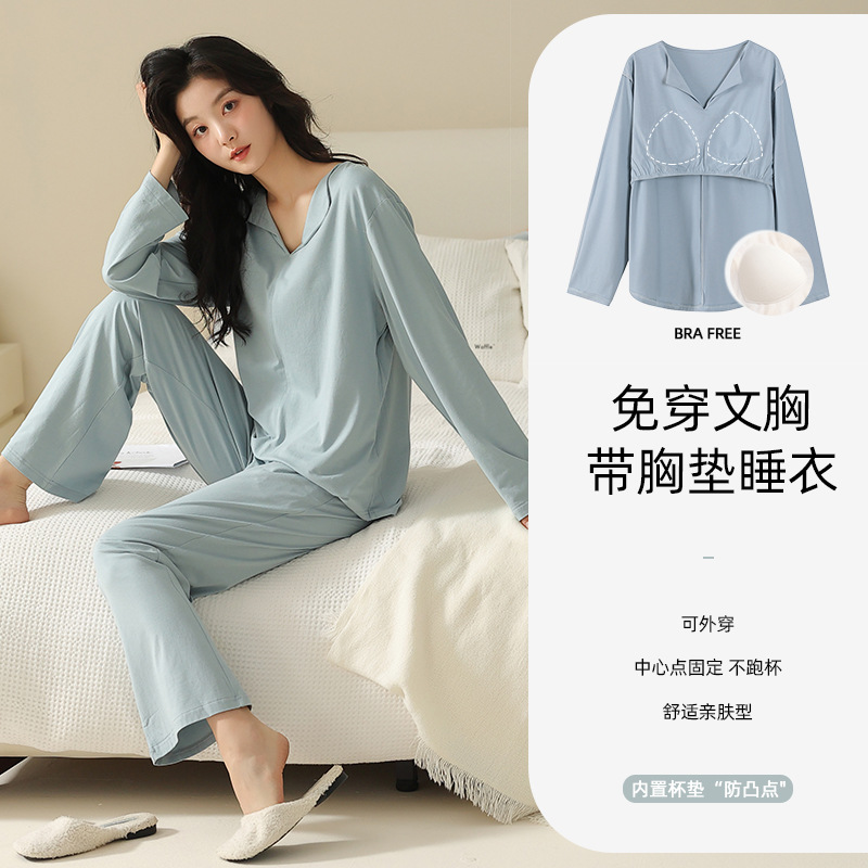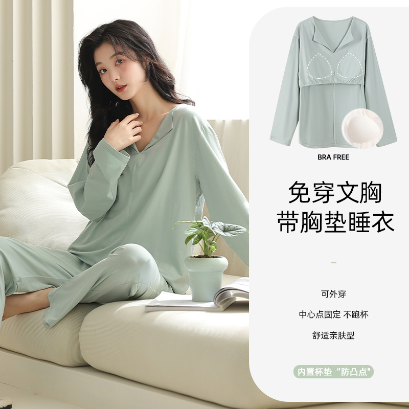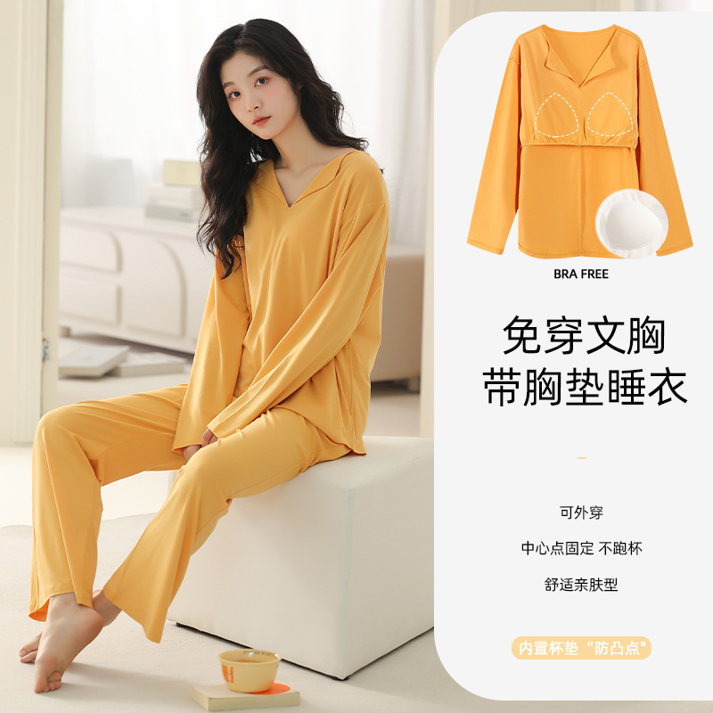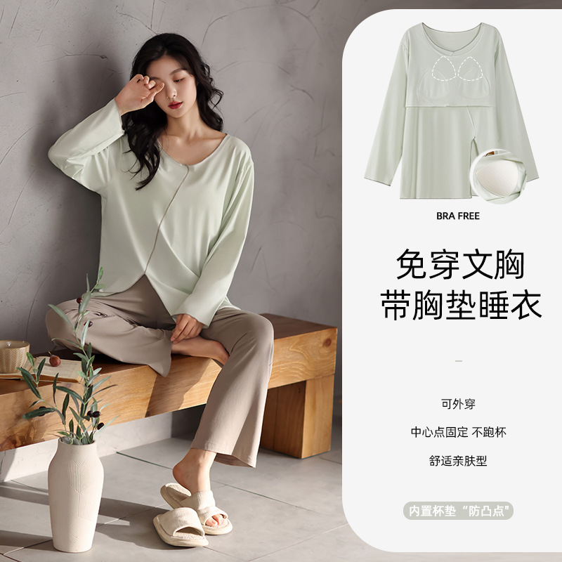 모달 잠옷 여성의 봄 긴 소매 2024 새로운 봄과 가을 여성의 홈 착용 얇은 쿨 벨트 가슴 패드스토어 가기