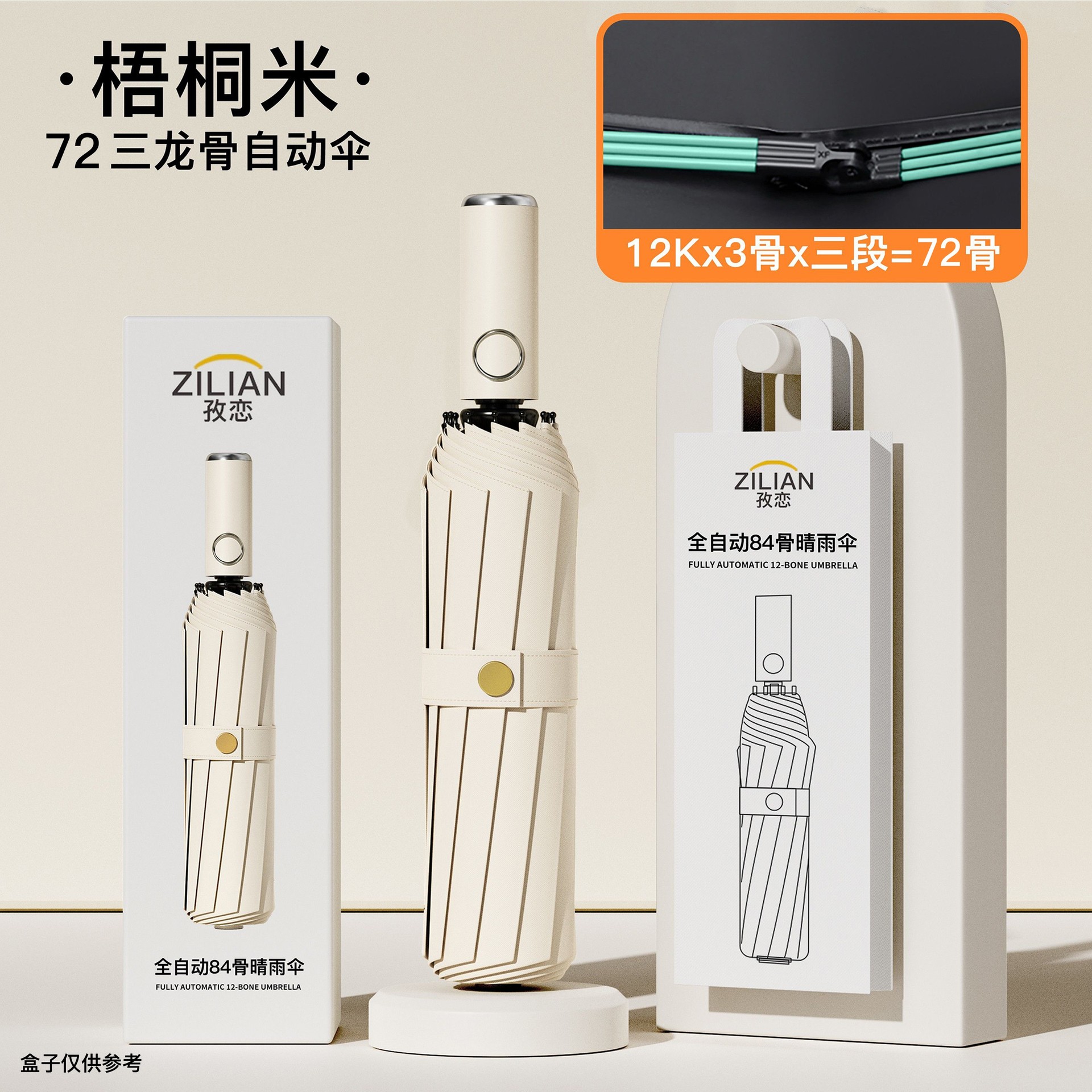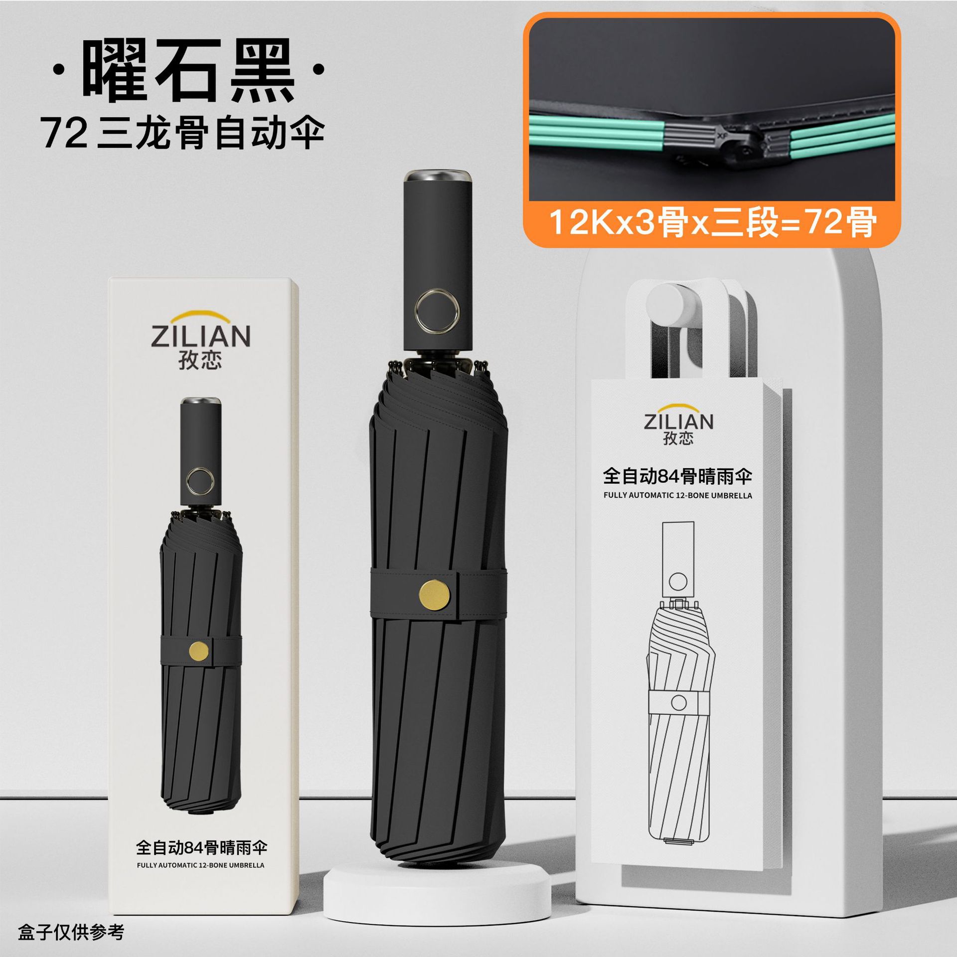 • [더블 뼈 자동] 16 뼈 블랙 접착제 우산 피아노 블랙