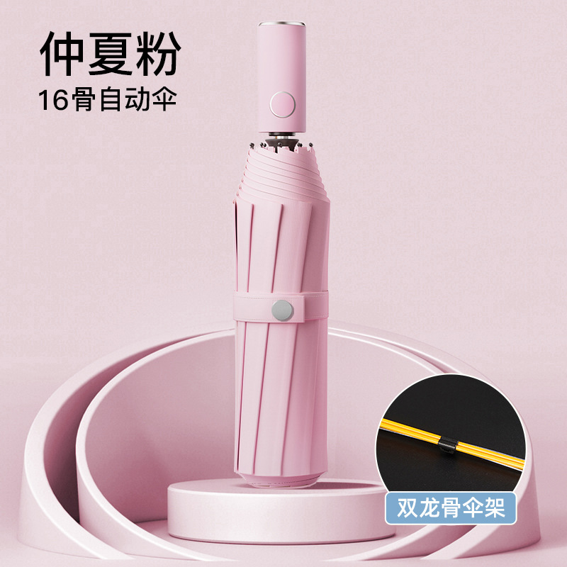 • [더블 뼈 자동] 16 뼈 검은 고무 써니 우산 한여름 분말