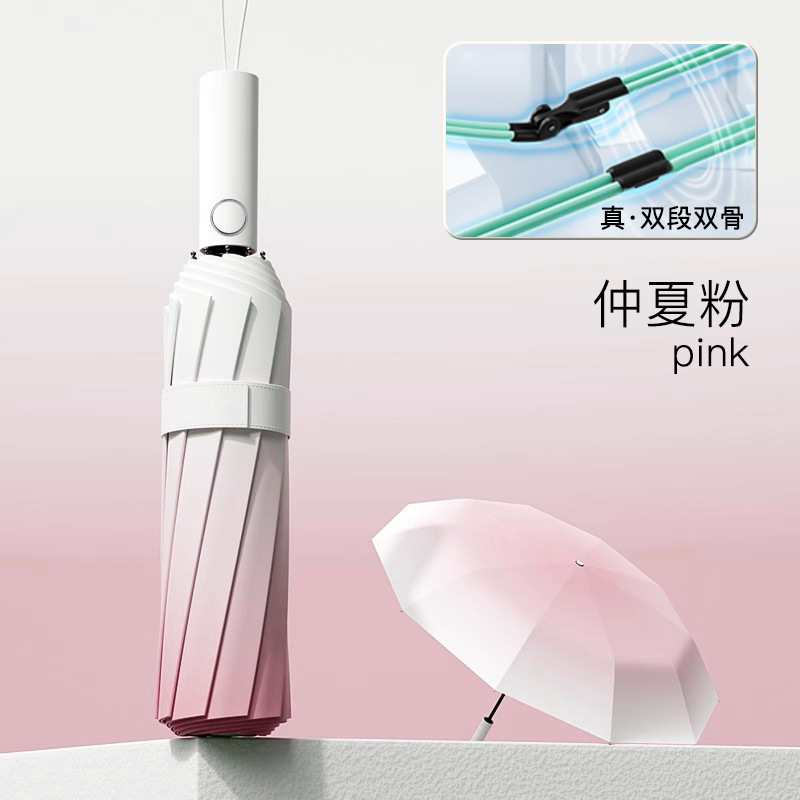높은 가치의 그라디언트 여성 태양 우산 태양 보호 UV 보호 자동 써니 우산 맞춤형 이중 목적 블랙 고무 햇빛스토어 가기