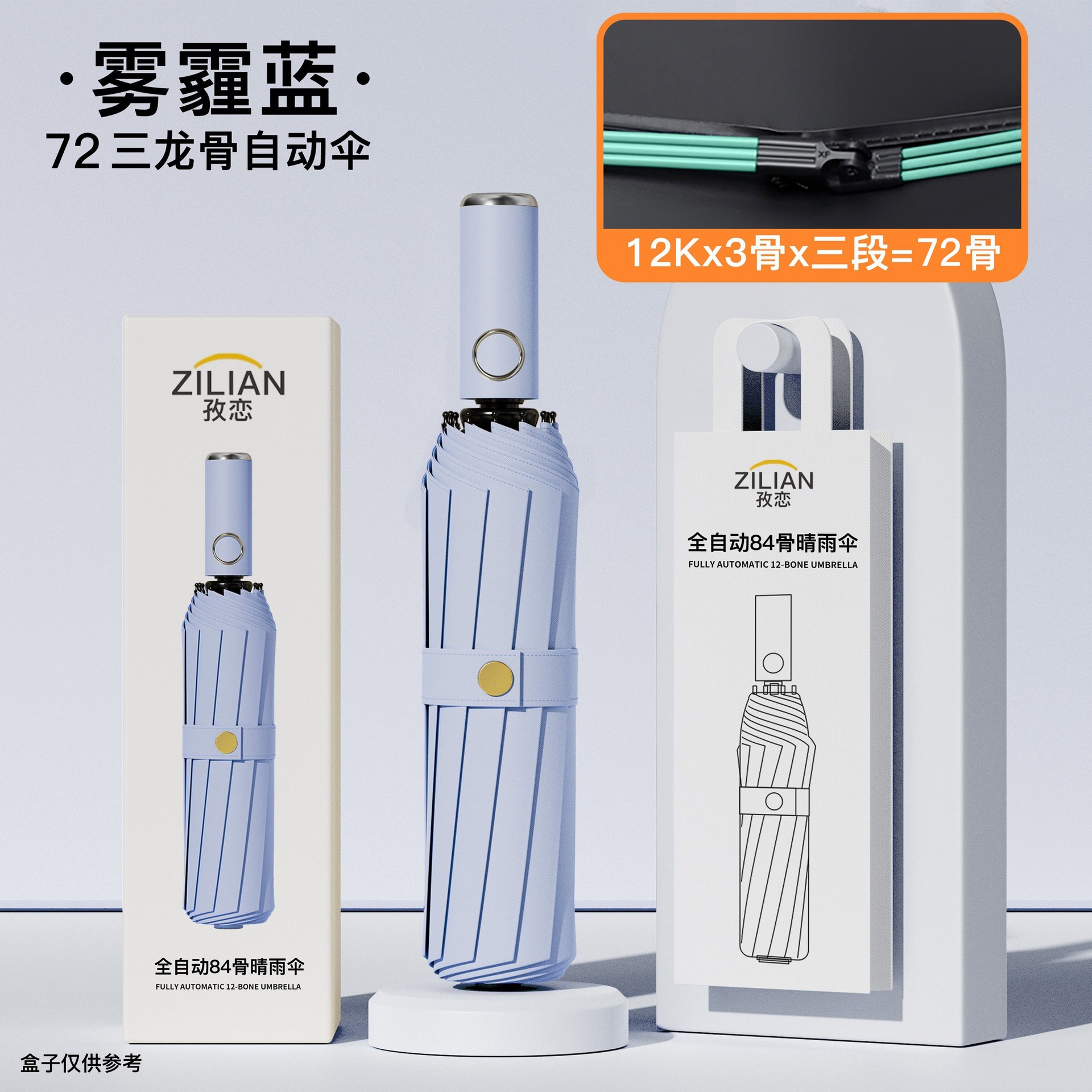 • [더블 뼈 자동] 16 뼈 검은 접착제 우산 헤이즈 블루